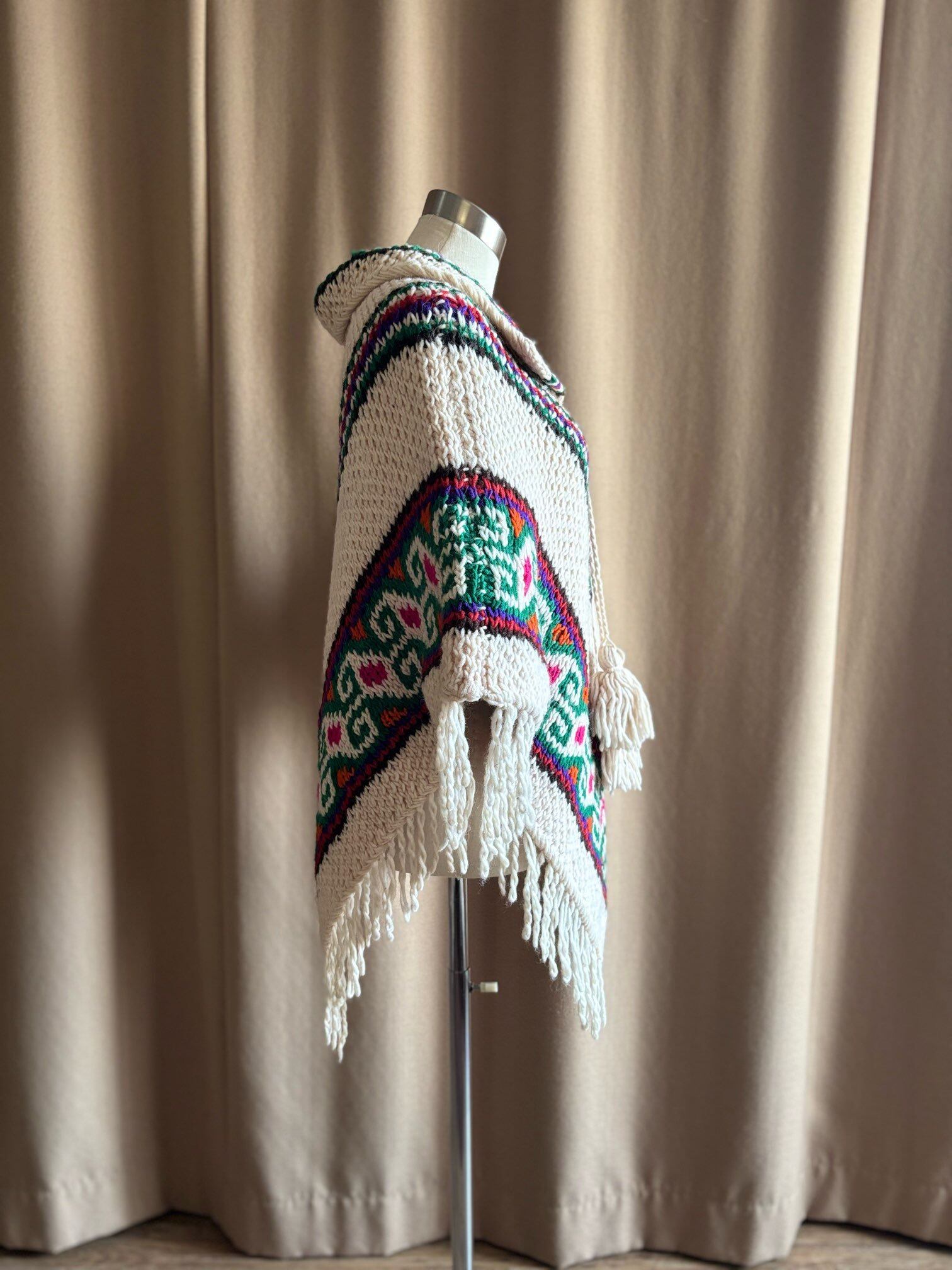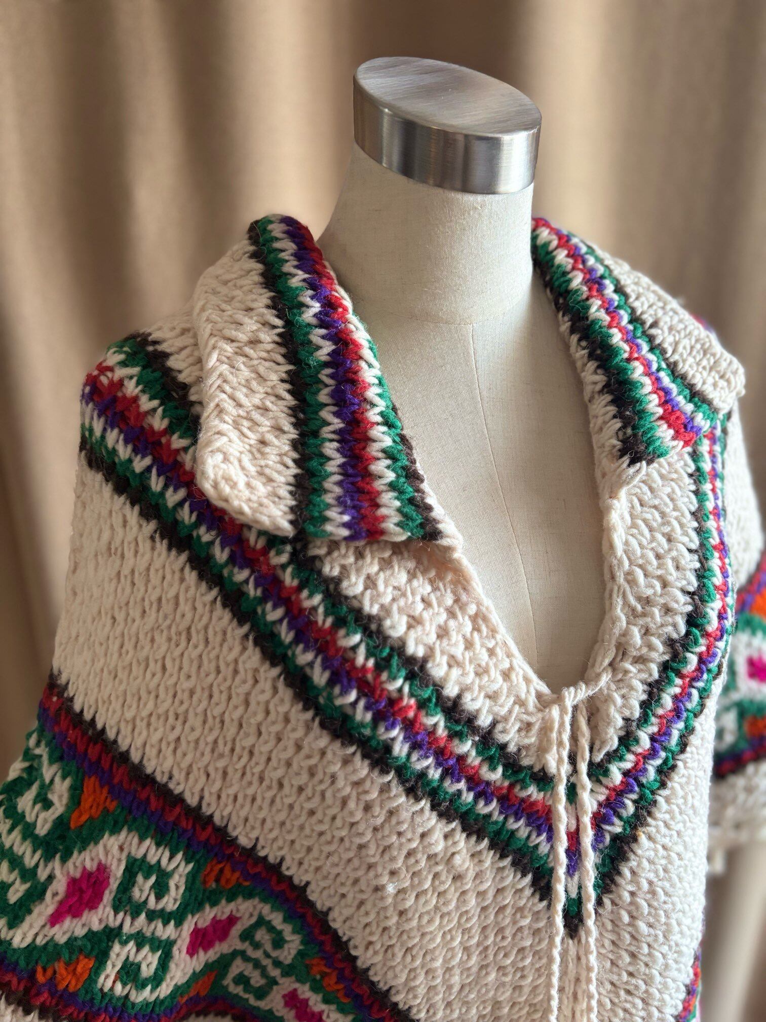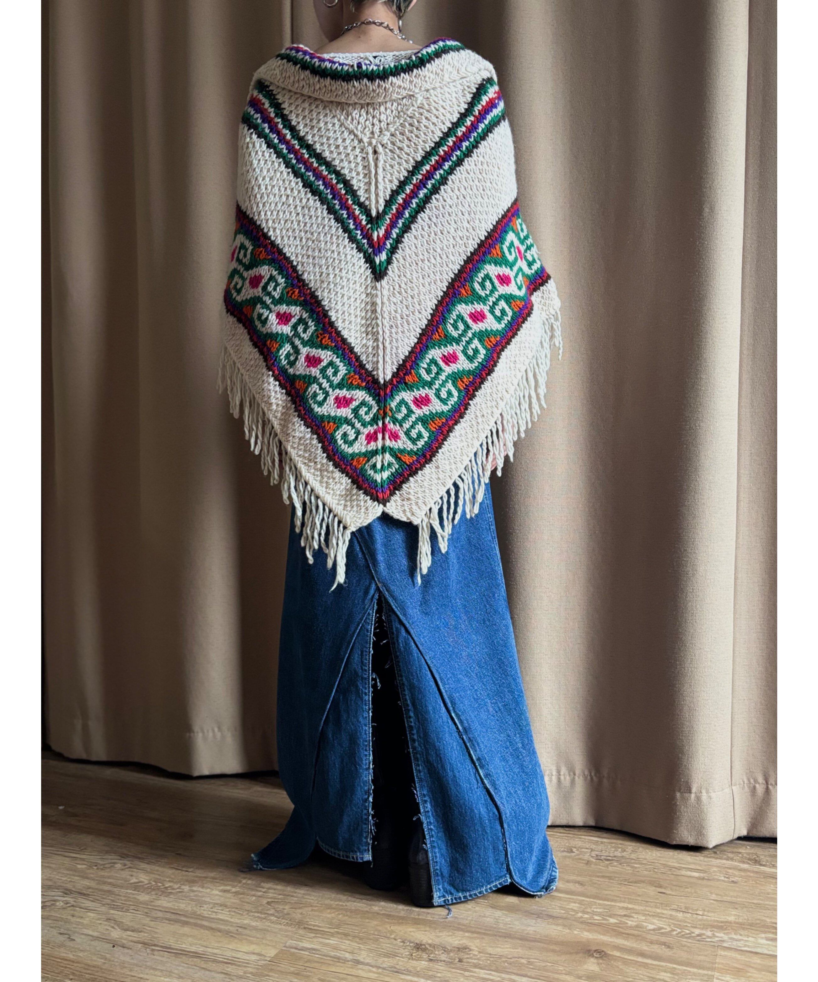 ethnic pattern vintage knit poncho-5061-11