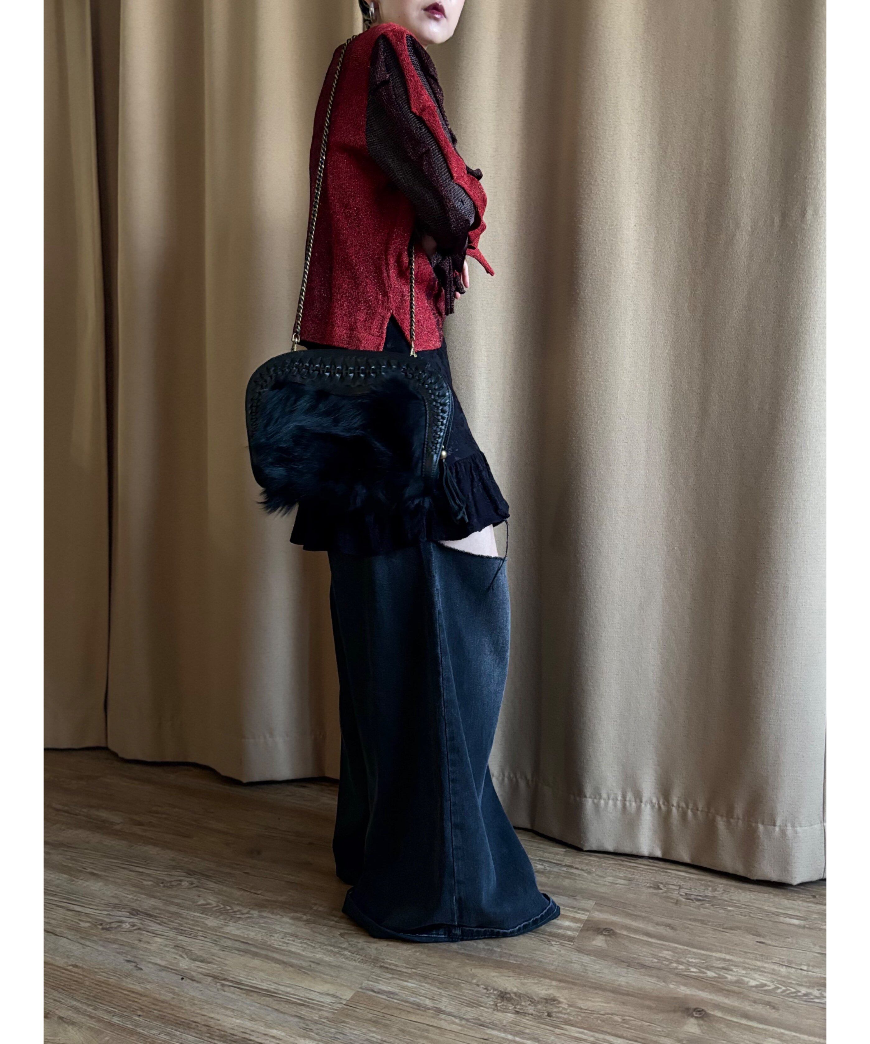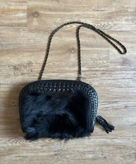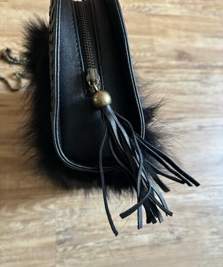 柔らかな毛並みが手元を華やかに演出し、長めのチェーンショルダーが上品なエッジを添えてくれます。