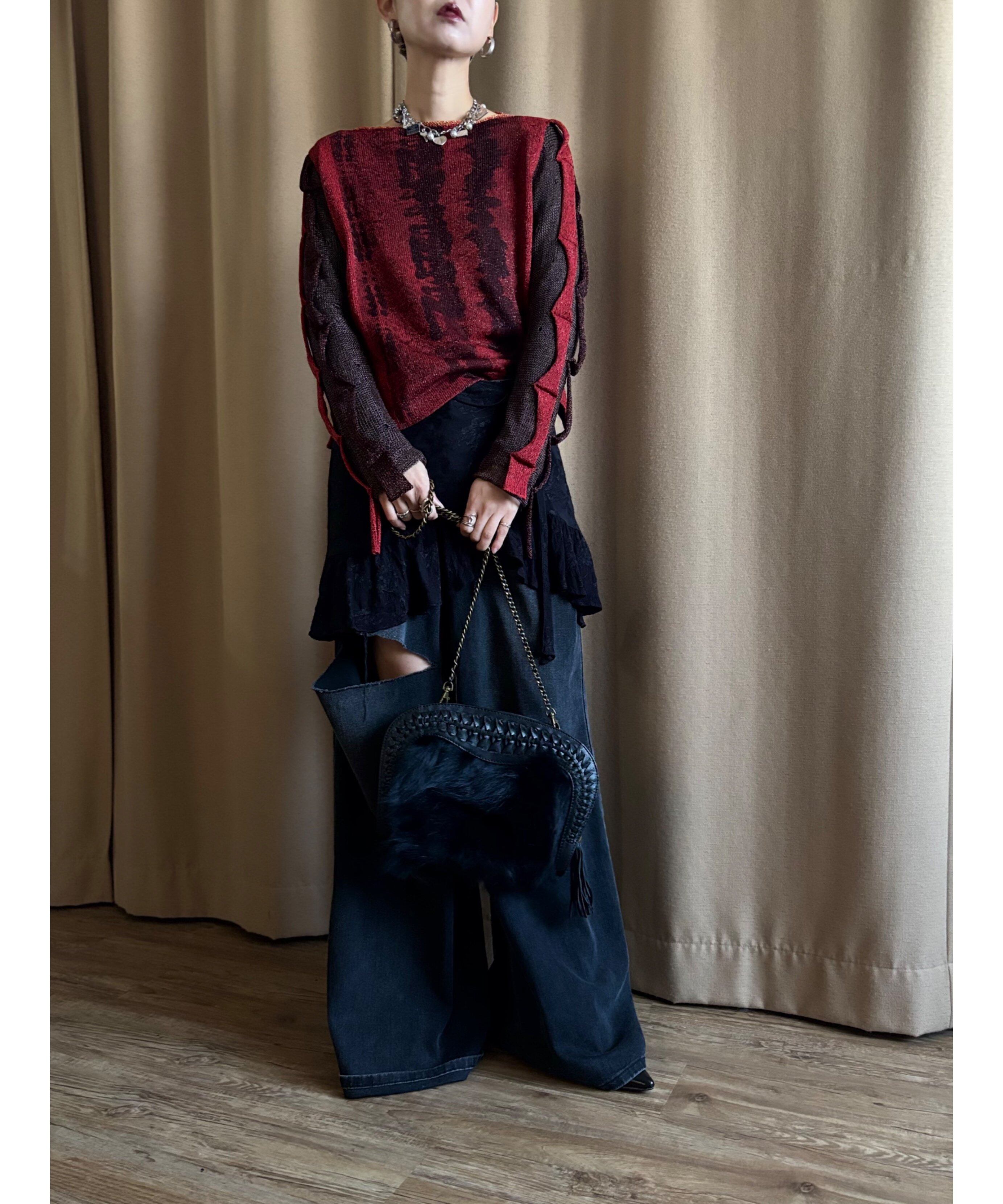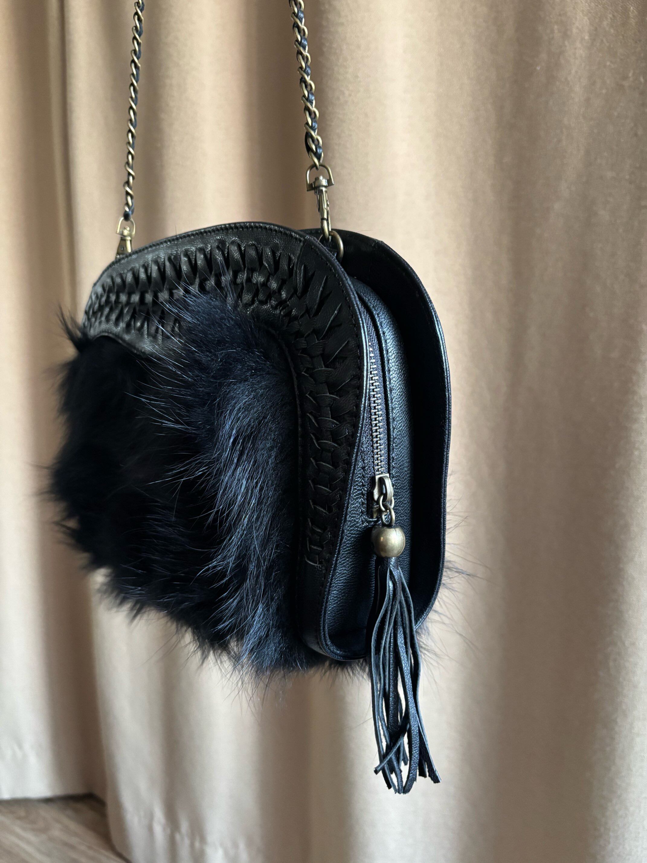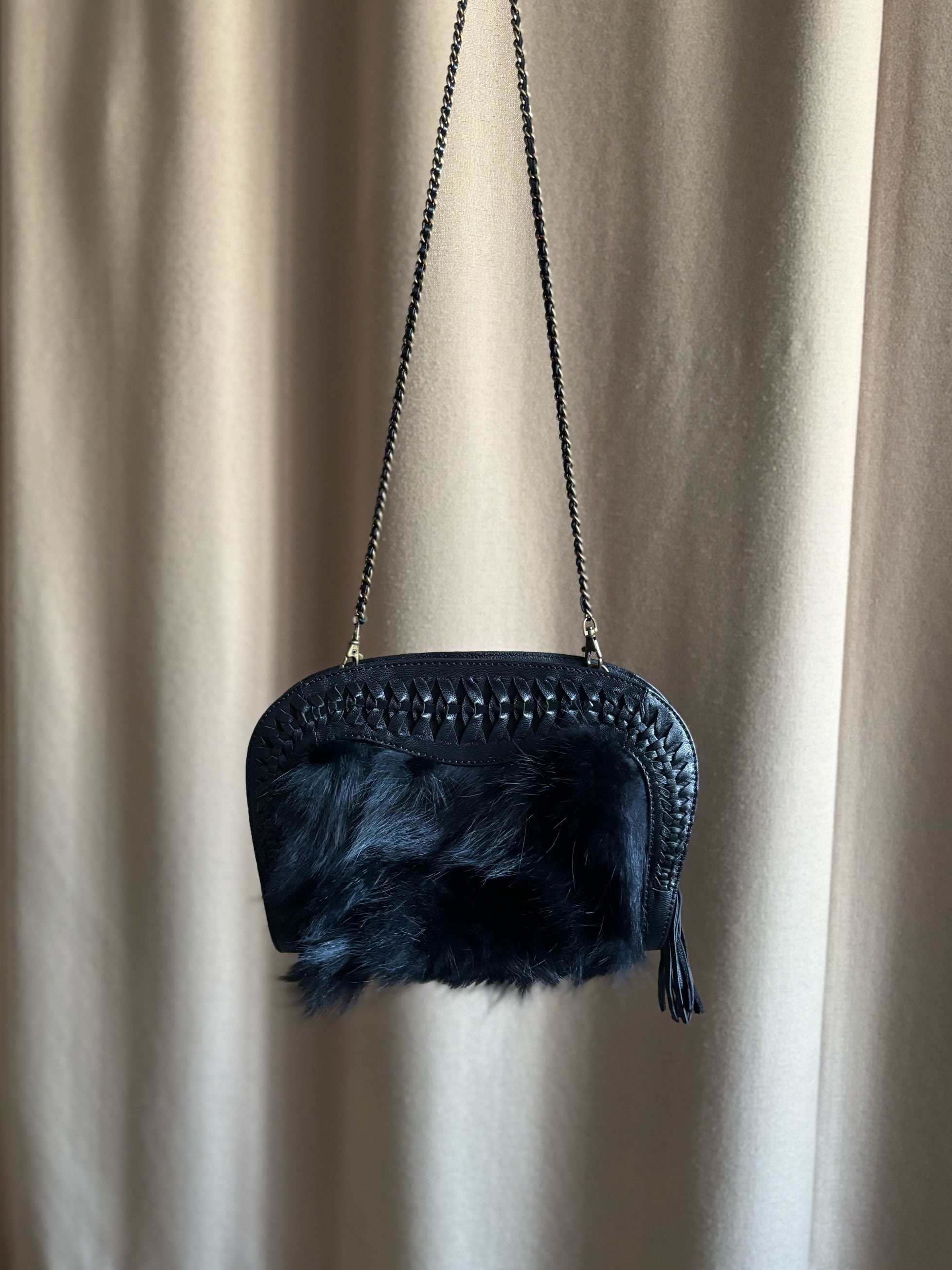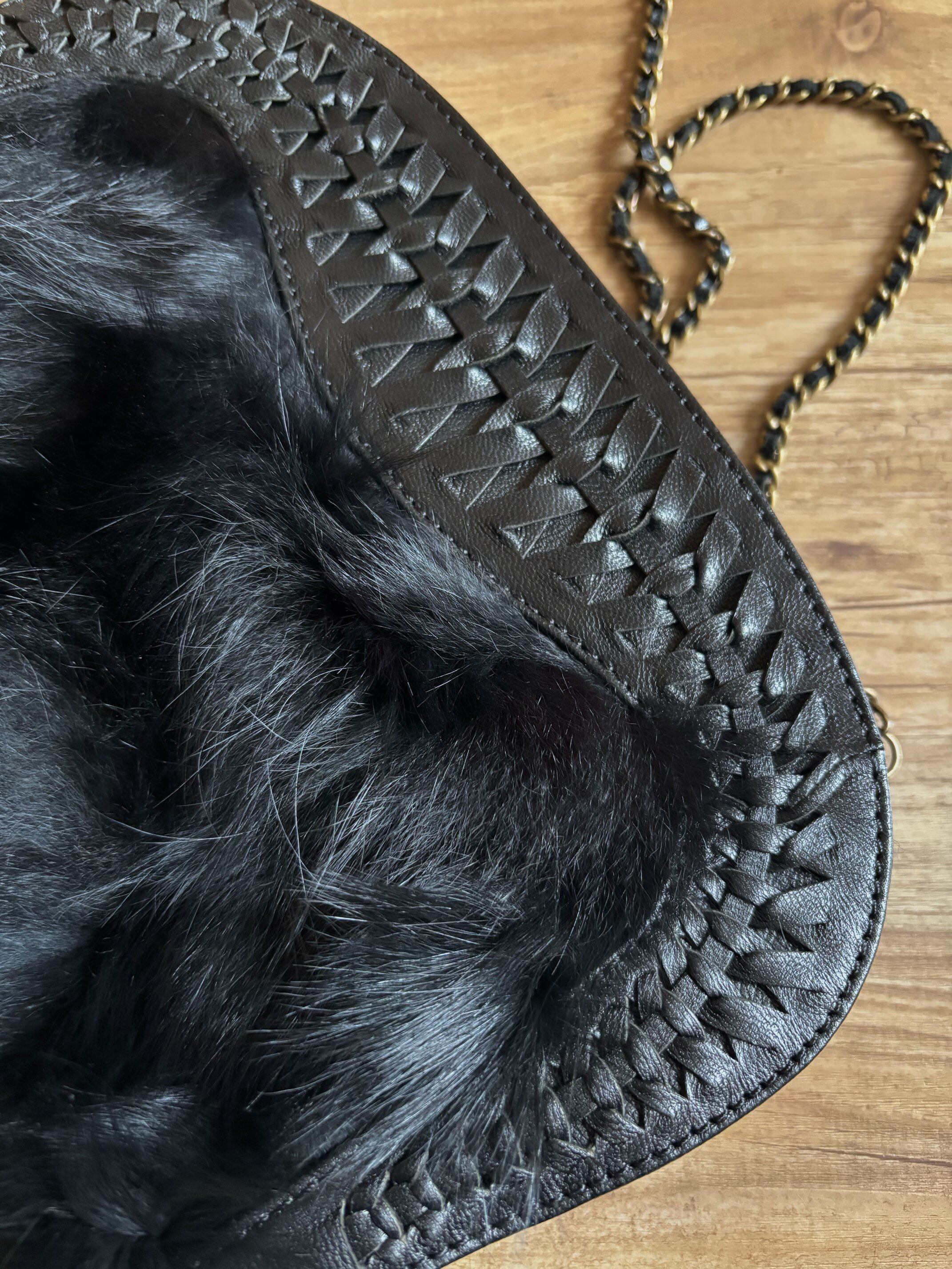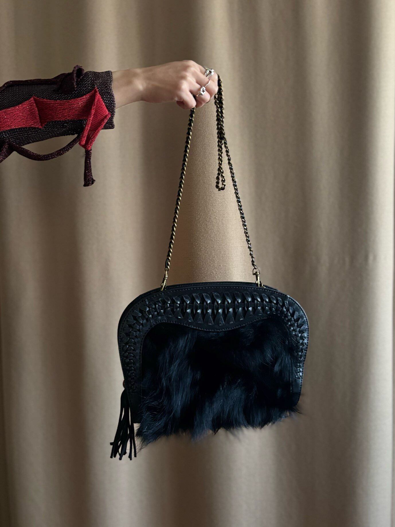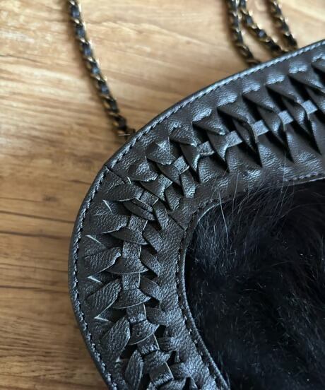 艶やかなラクーンファーと編み込みレザーが織りなす、ラグジュアリーなコントラスト。