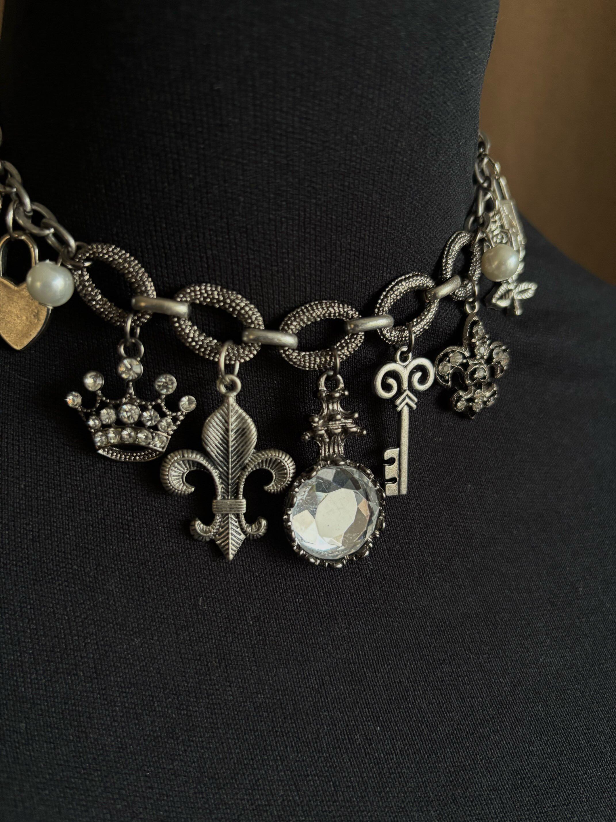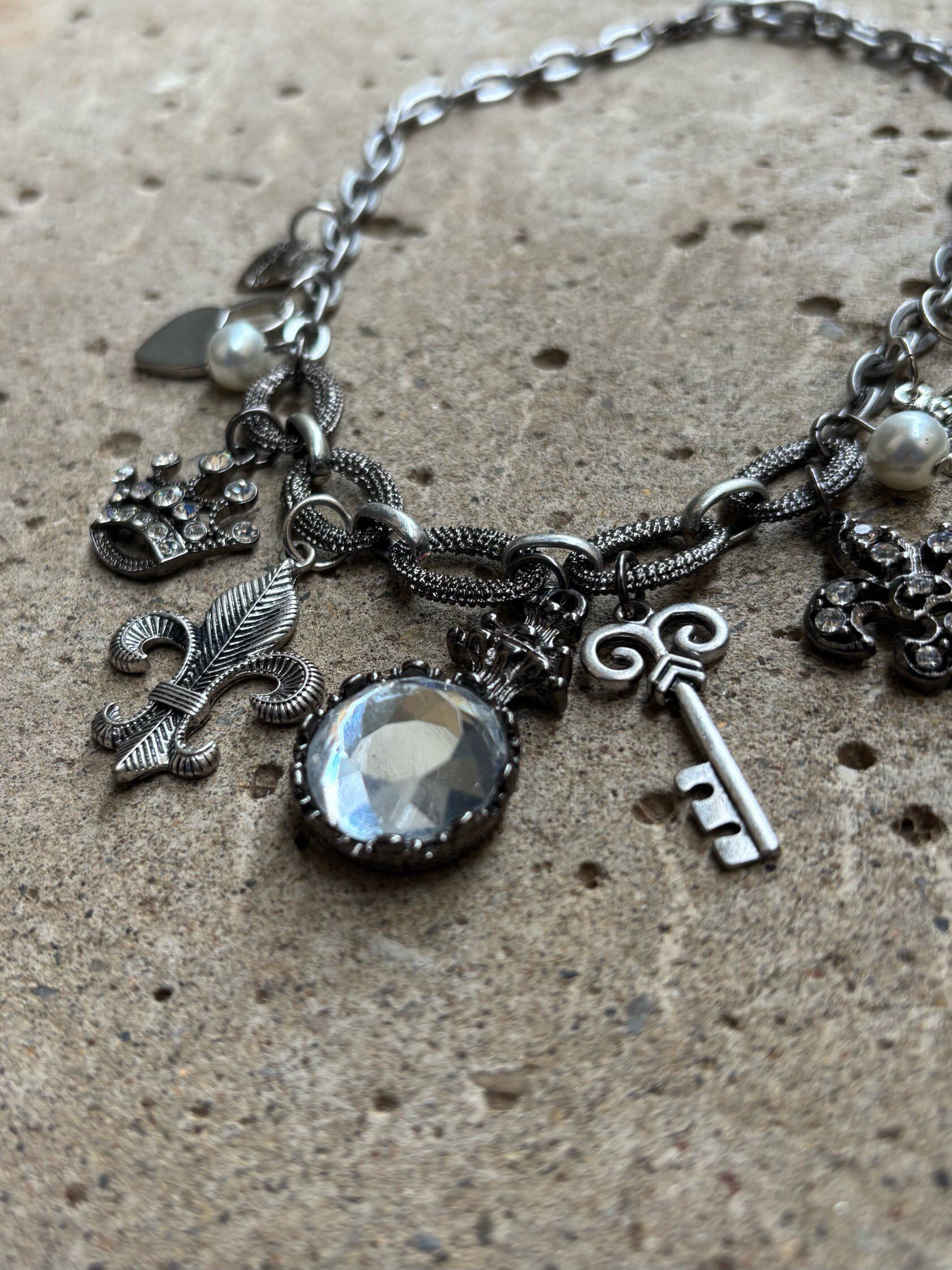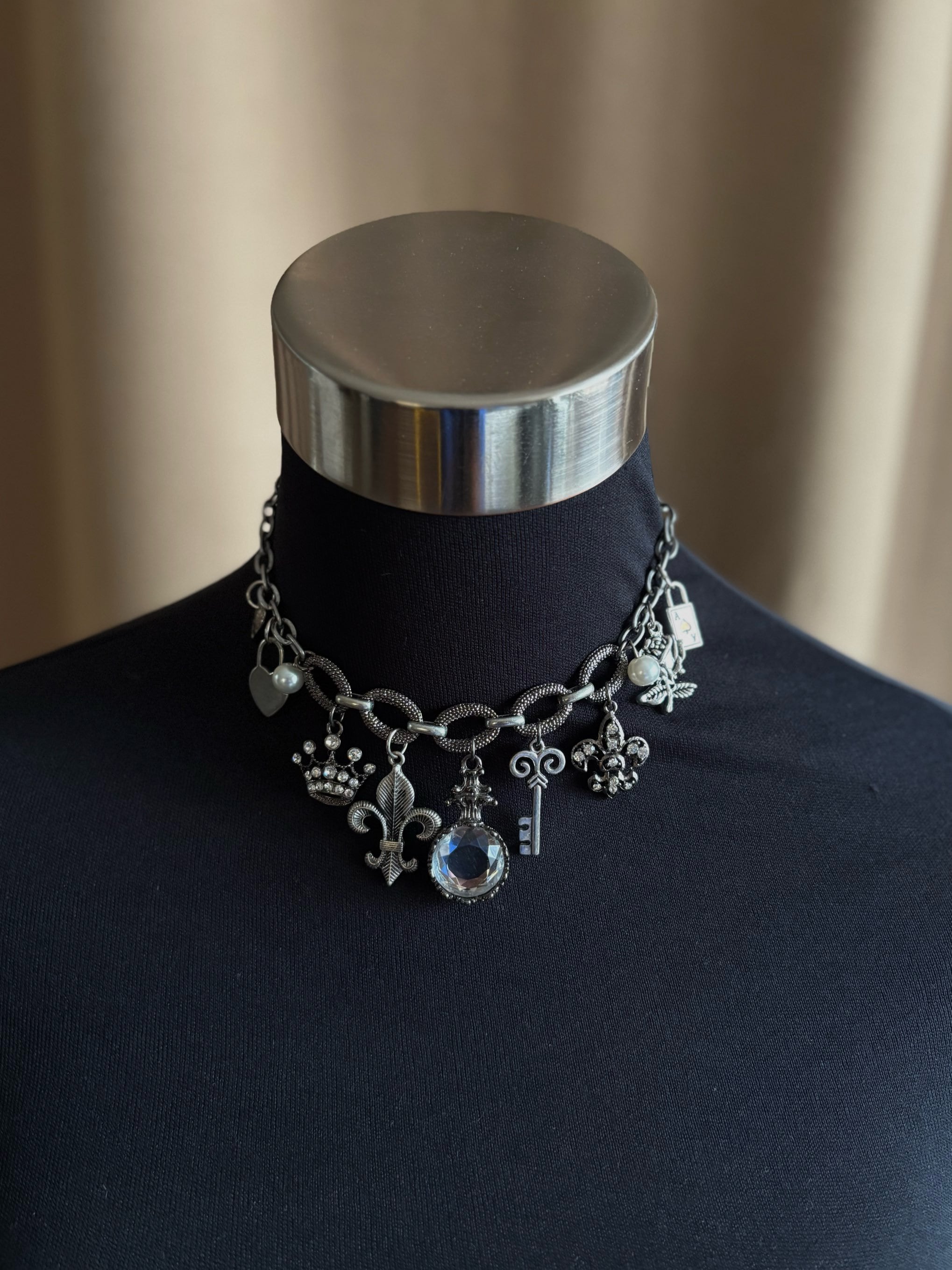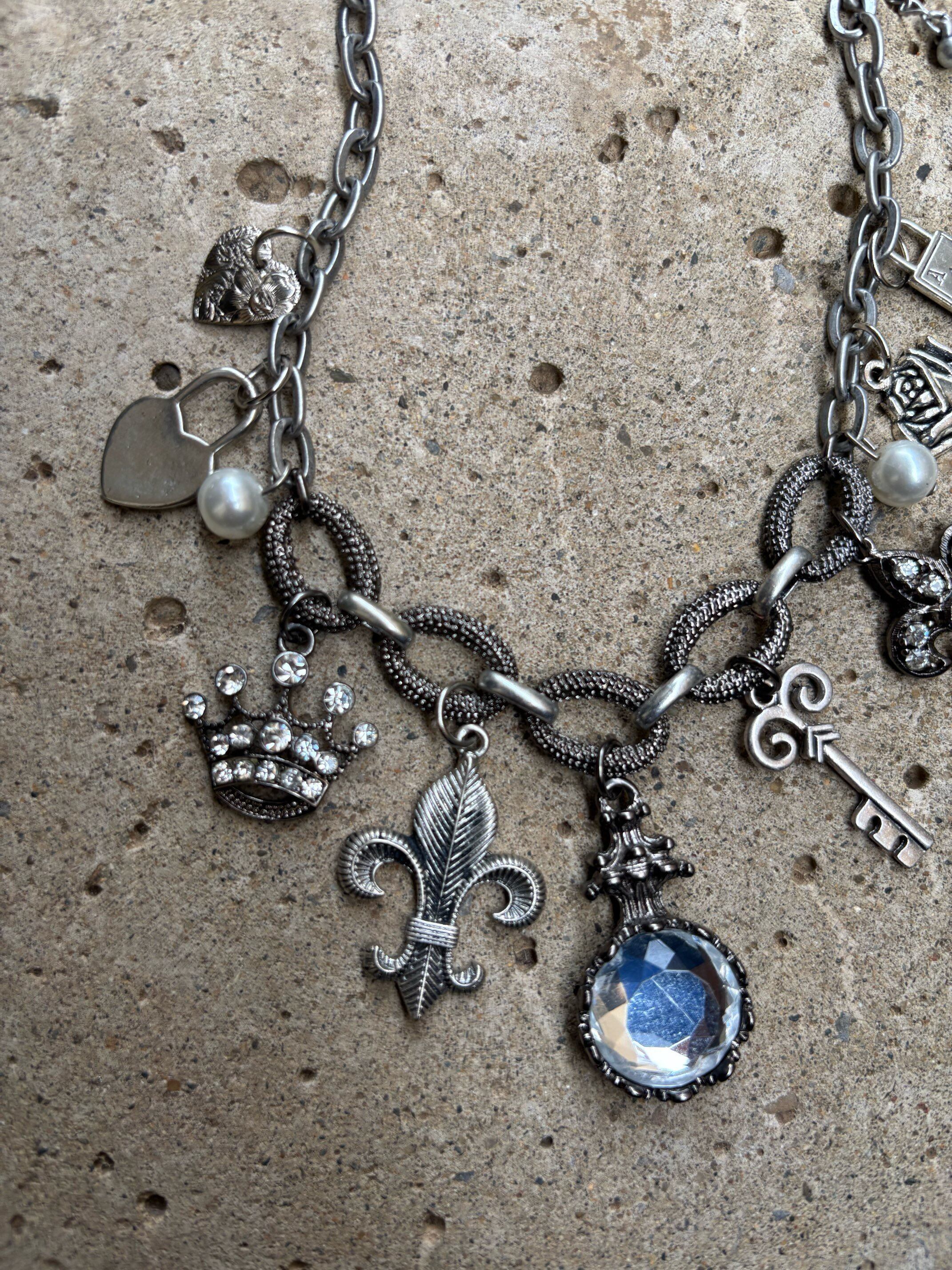 様々なモチーフのヴィンテージチャームと、パールやストーンの輝きでラグジュアリーさをプラスした繊細なデザイン。