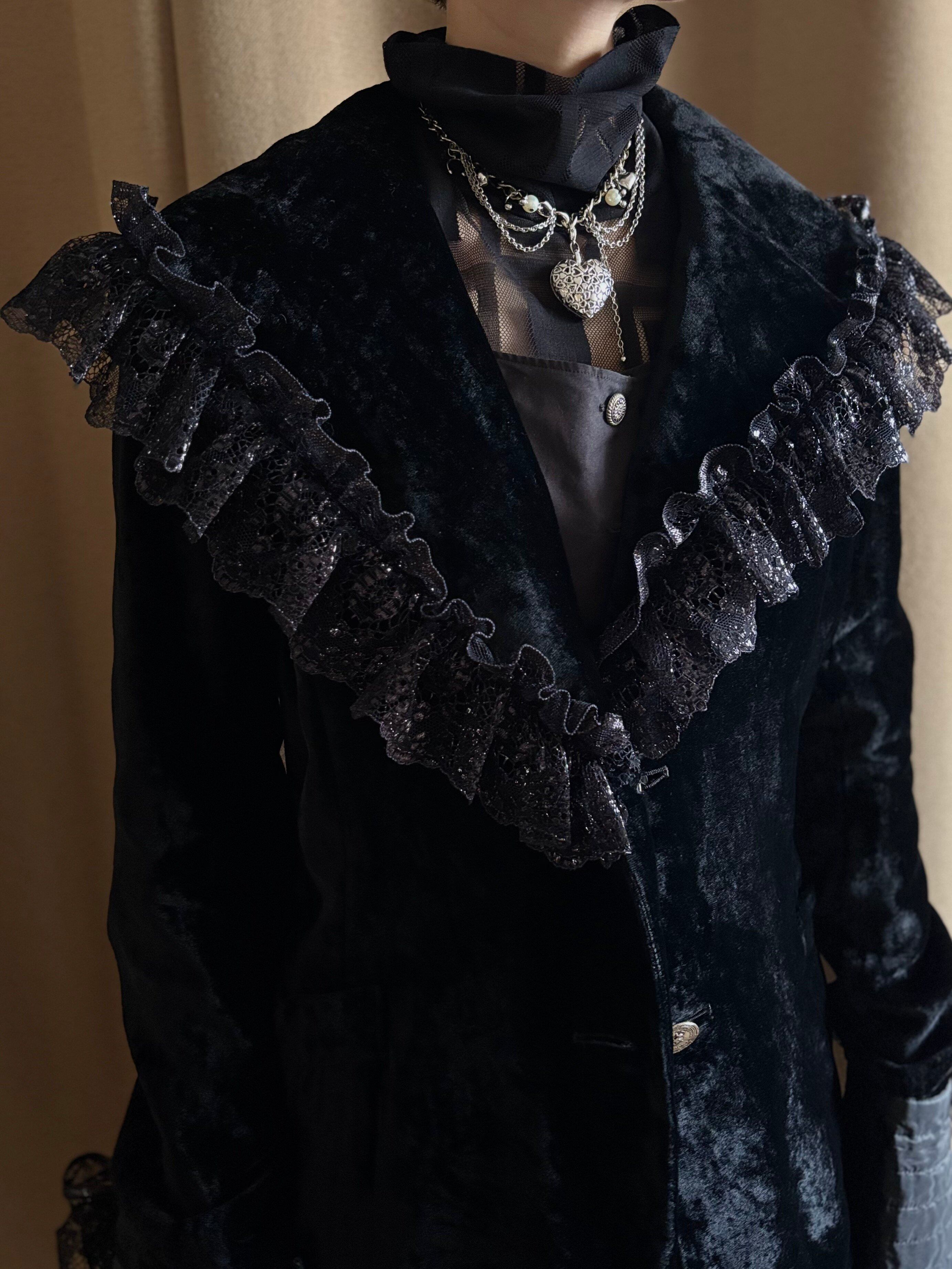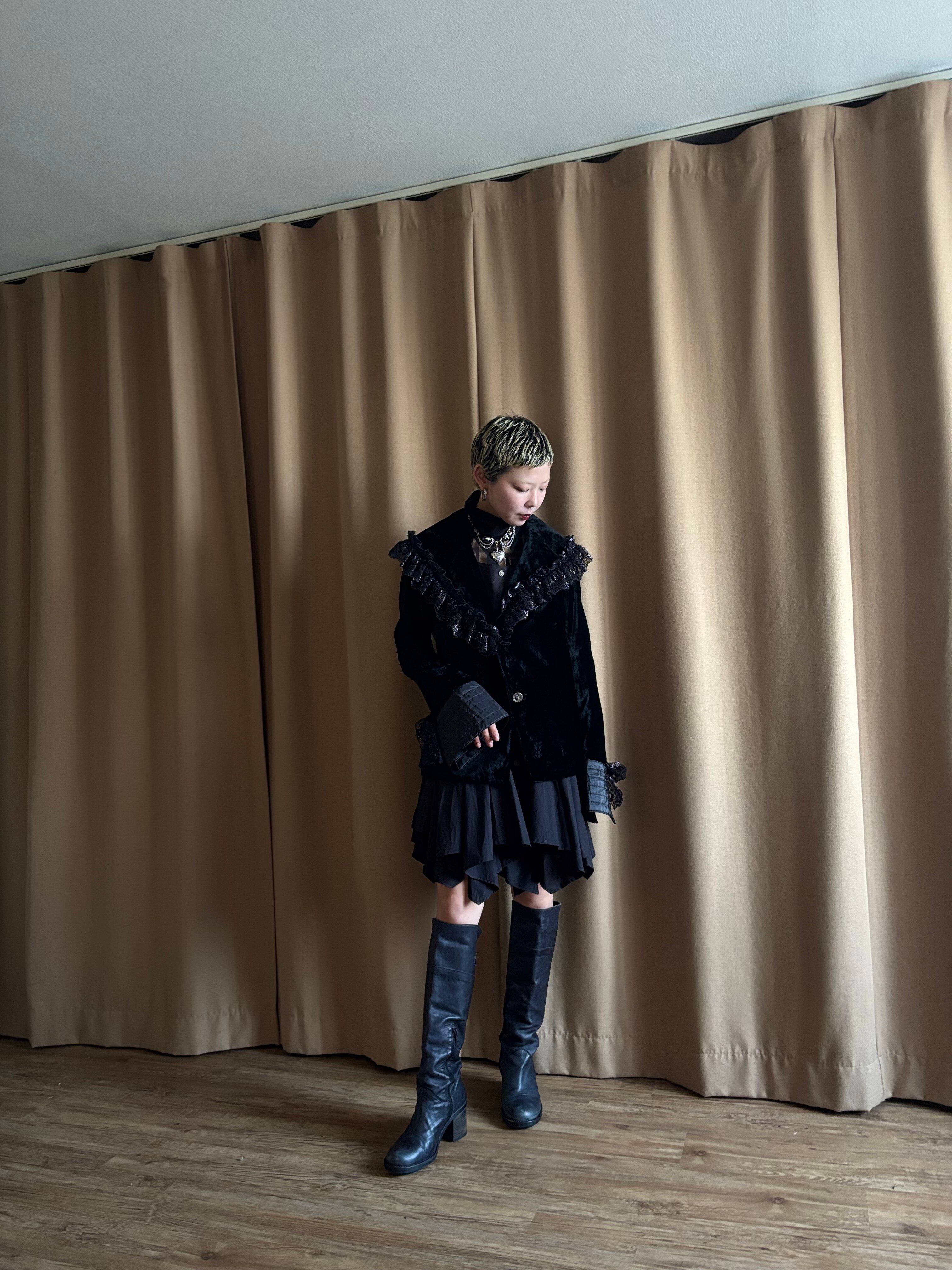 日本のファッションブランド、Yukiko Hanaiのフリルベロアジャケット。