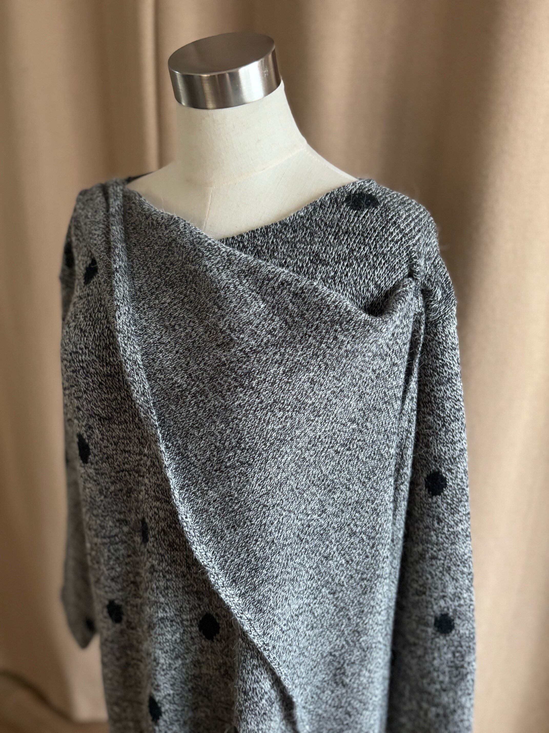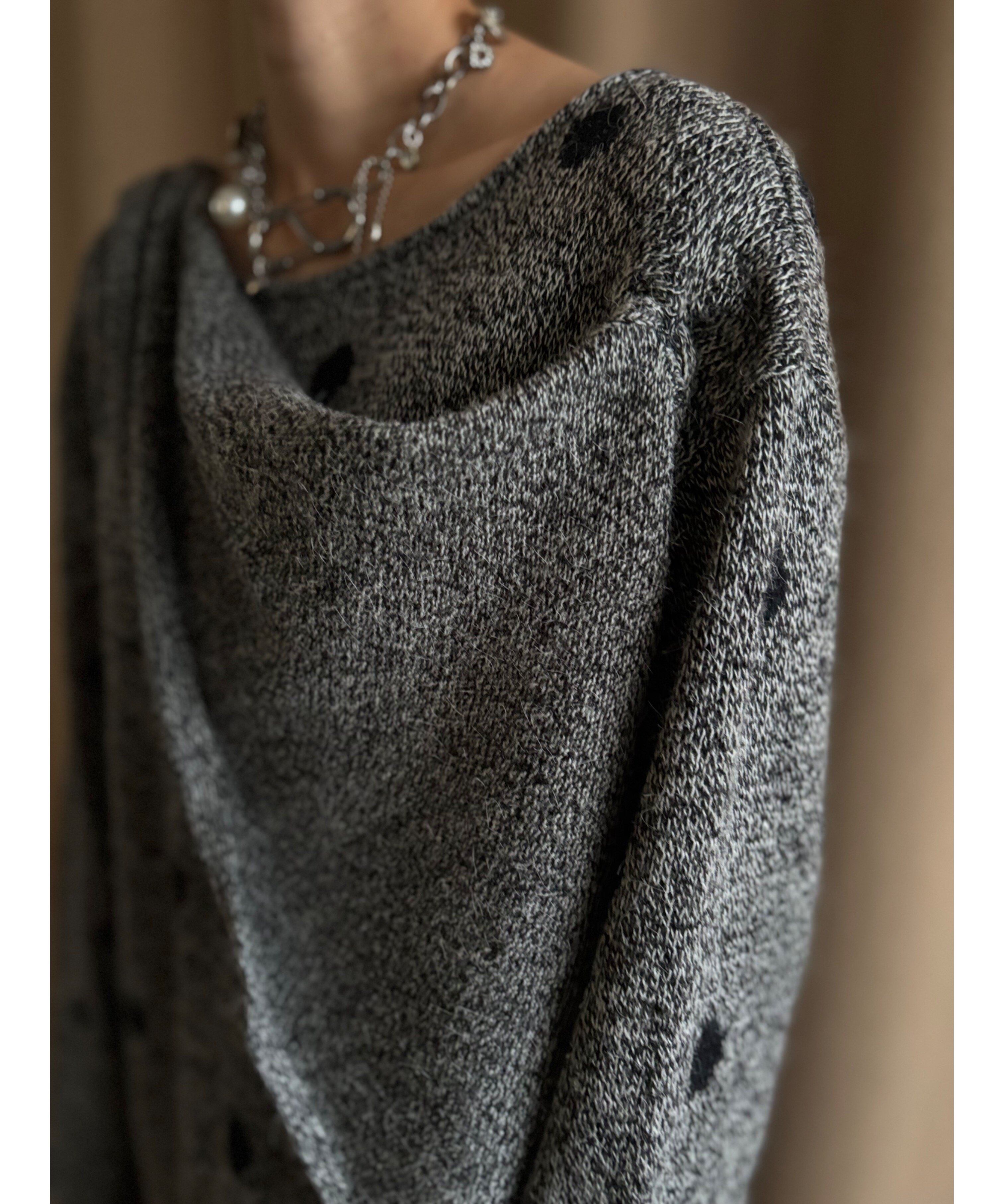 ランダムに配されたドット柄がモノトーンの中に繊細なリズムを添える逸品。