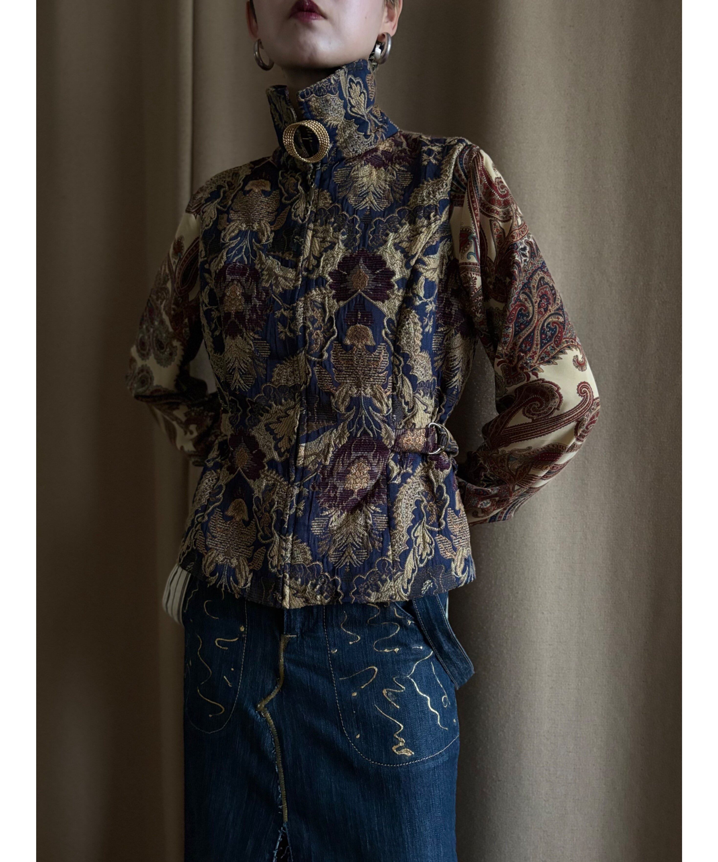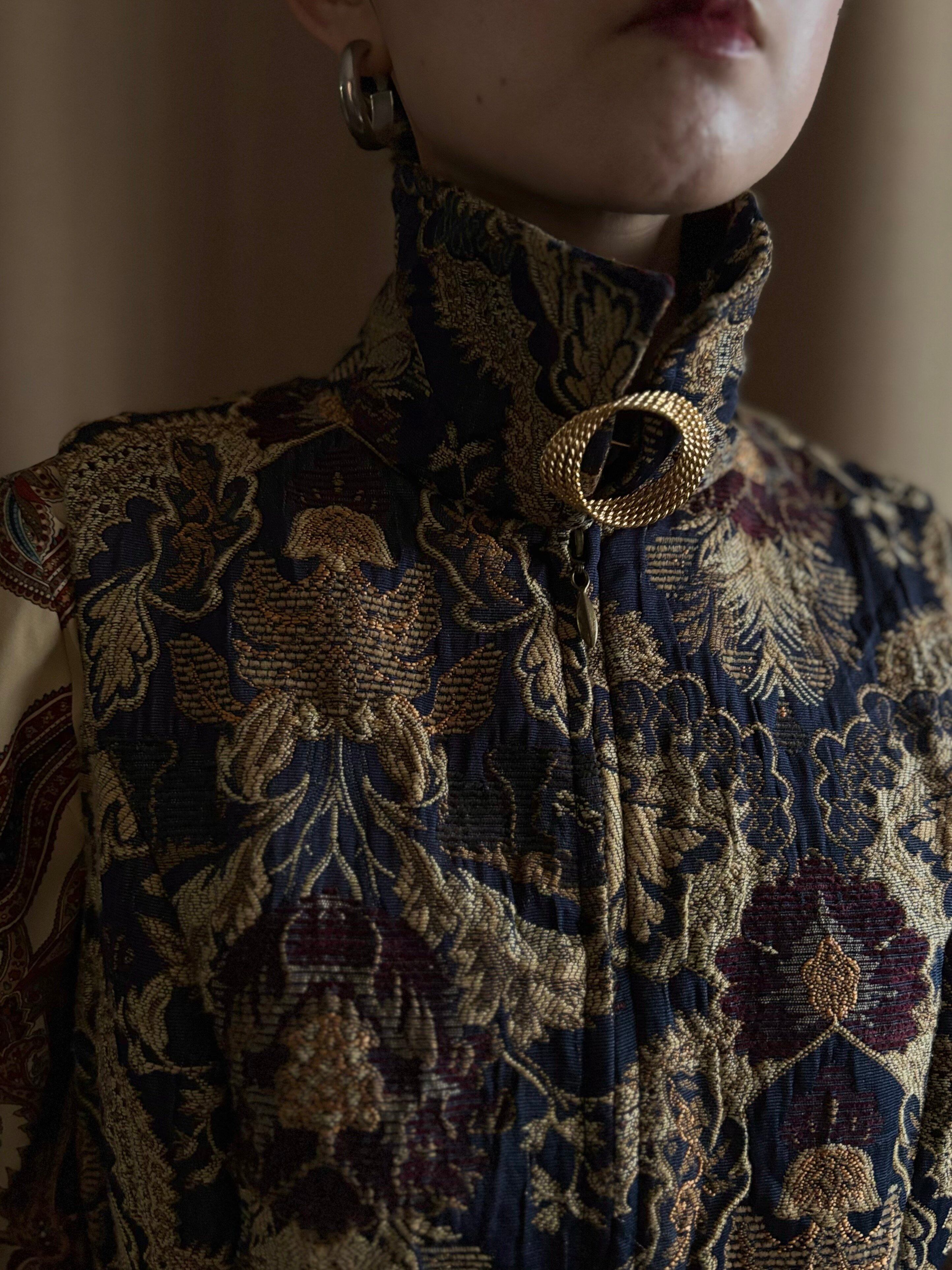 ヴィンテージブローチがセットになったインポートゴブランベスト。