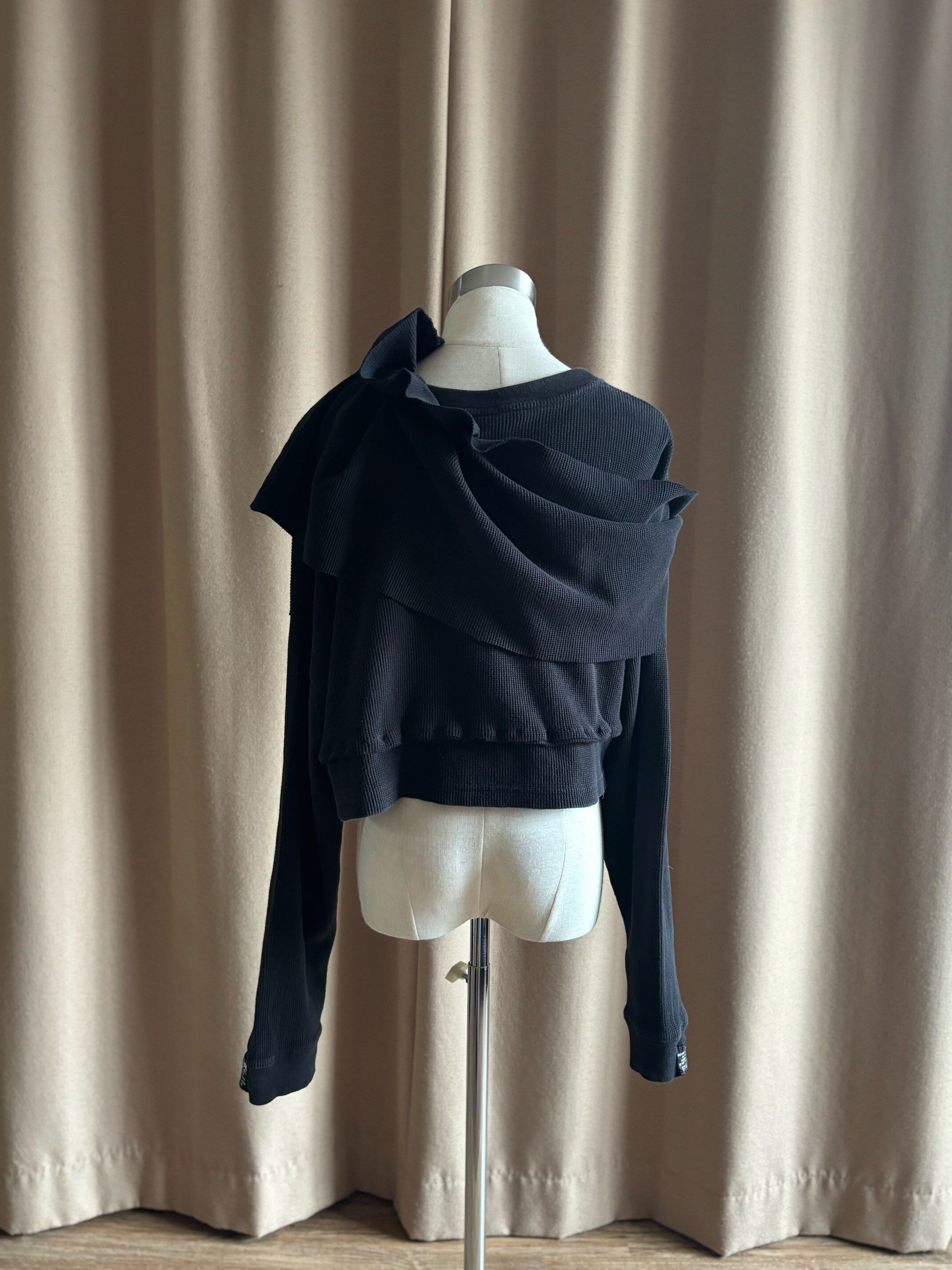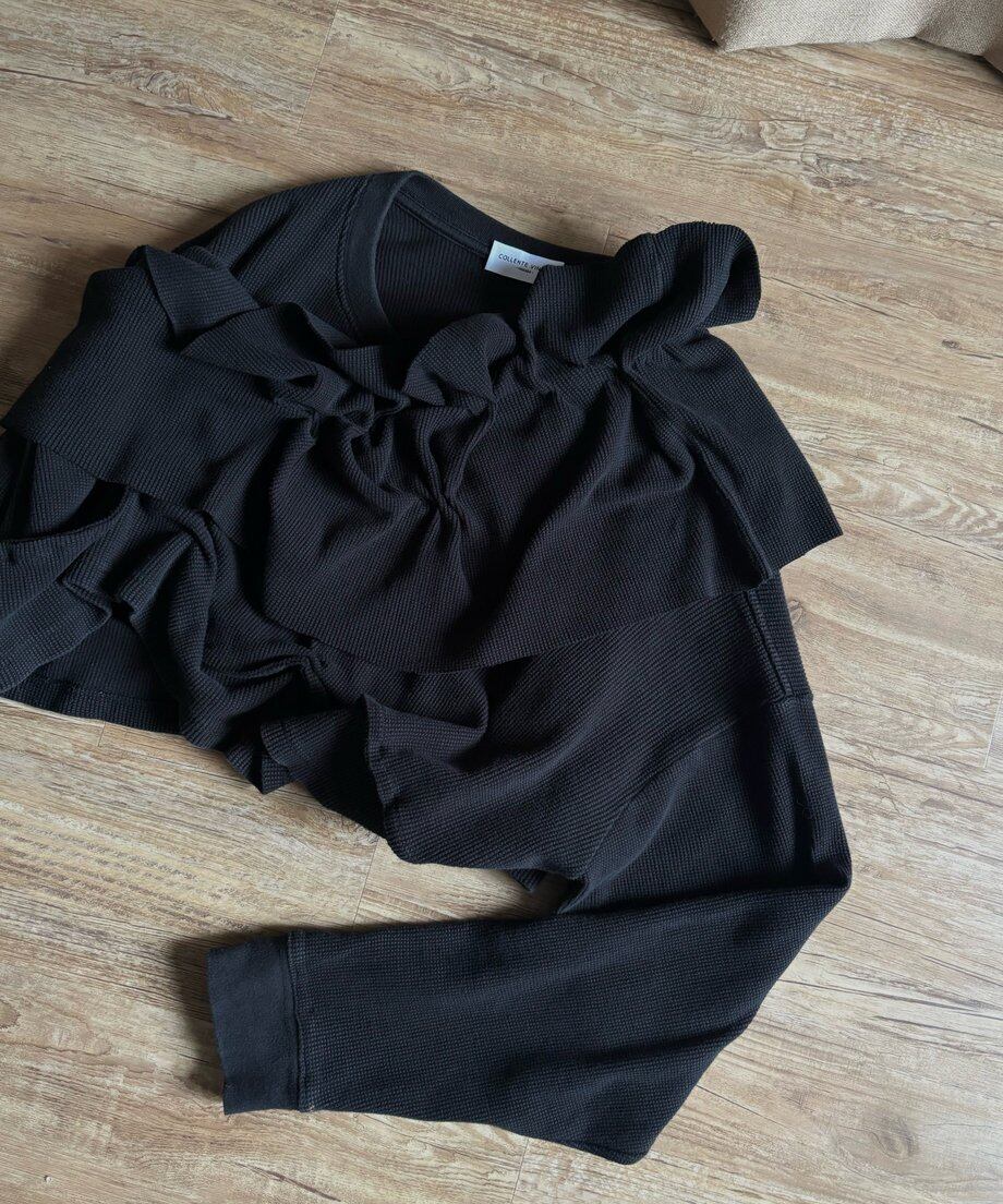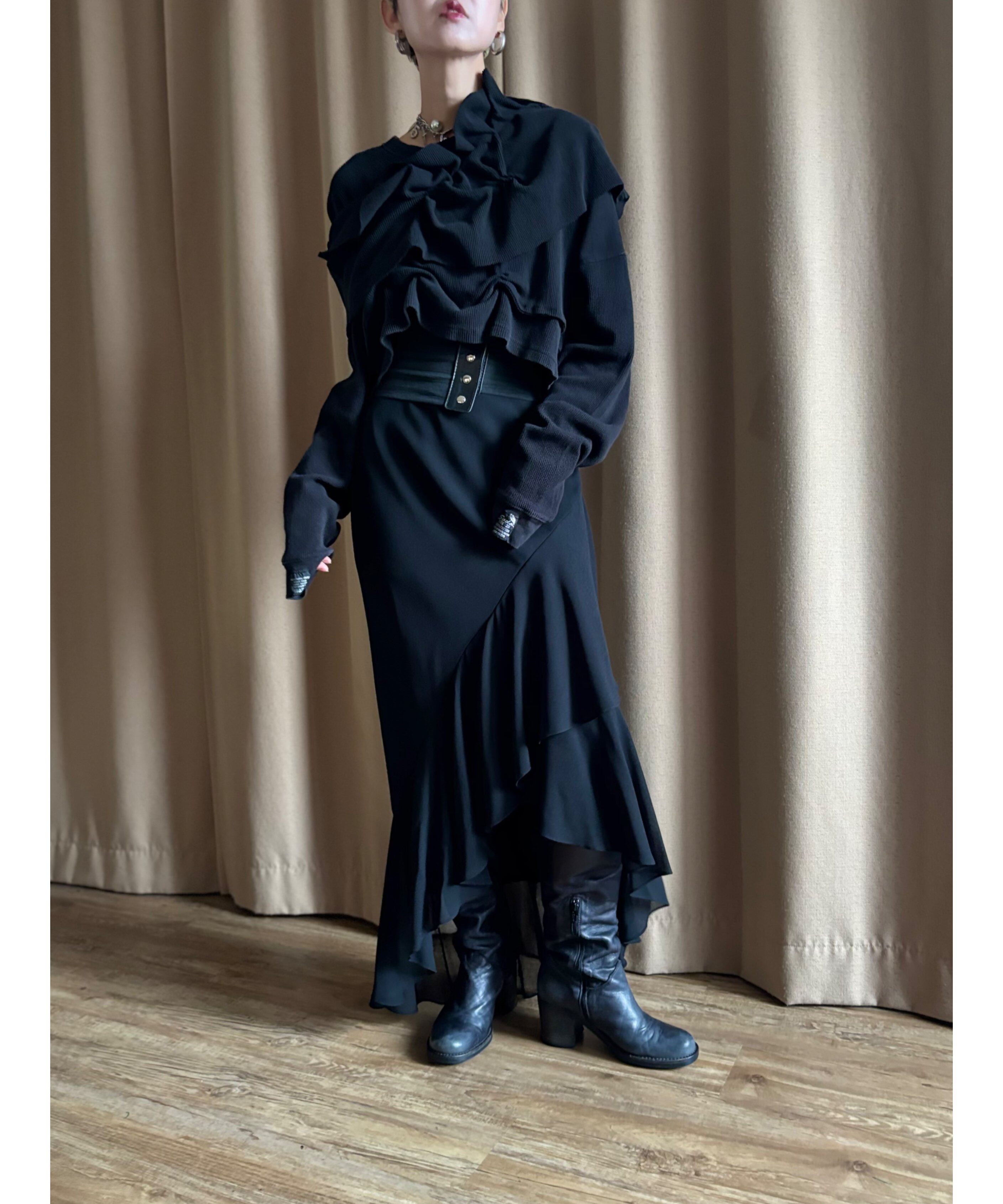 サーマルならではのテクスチャーと、構築的なフリルギャザーが織りなすコンテンポラリーな造形美。