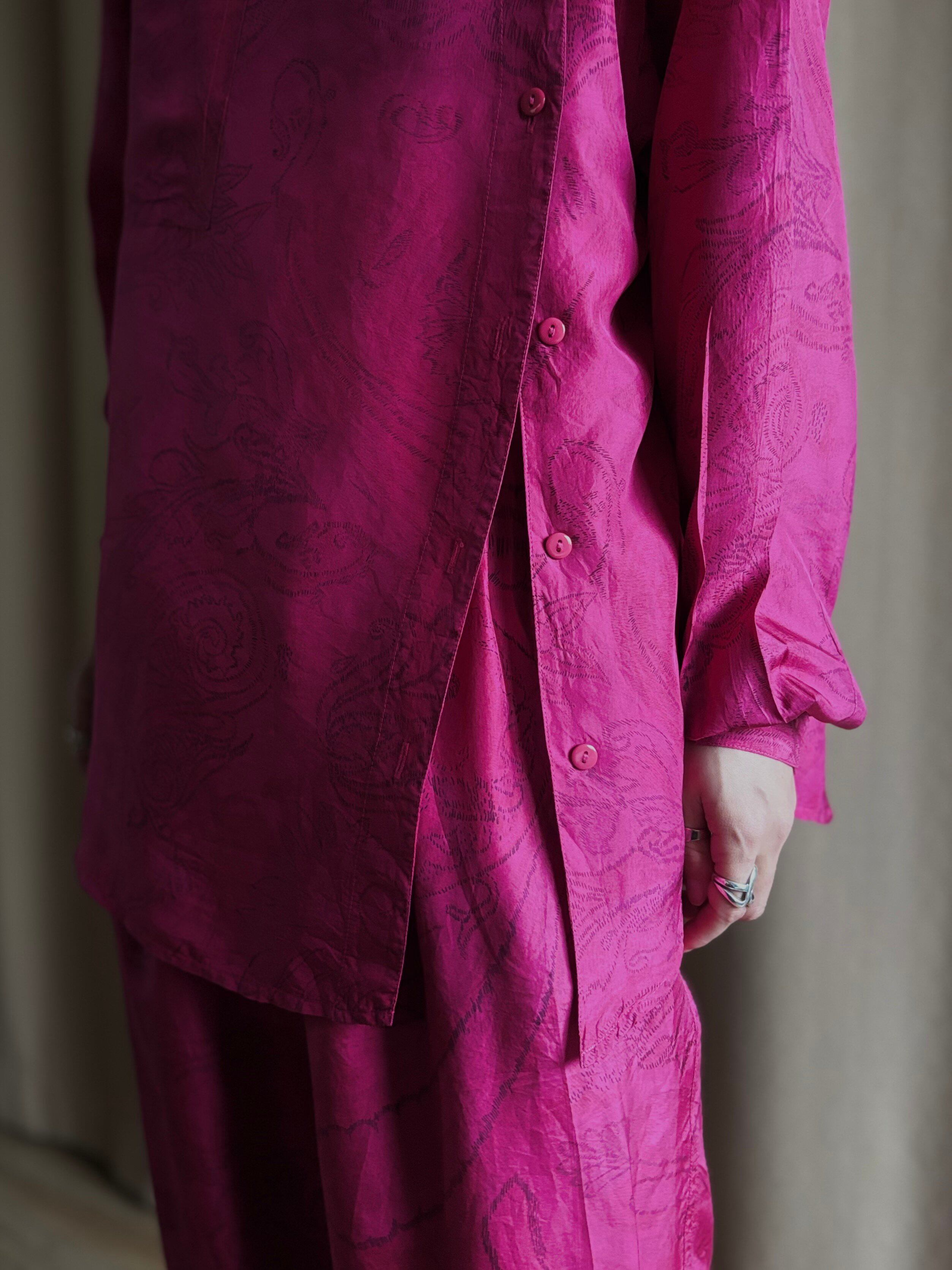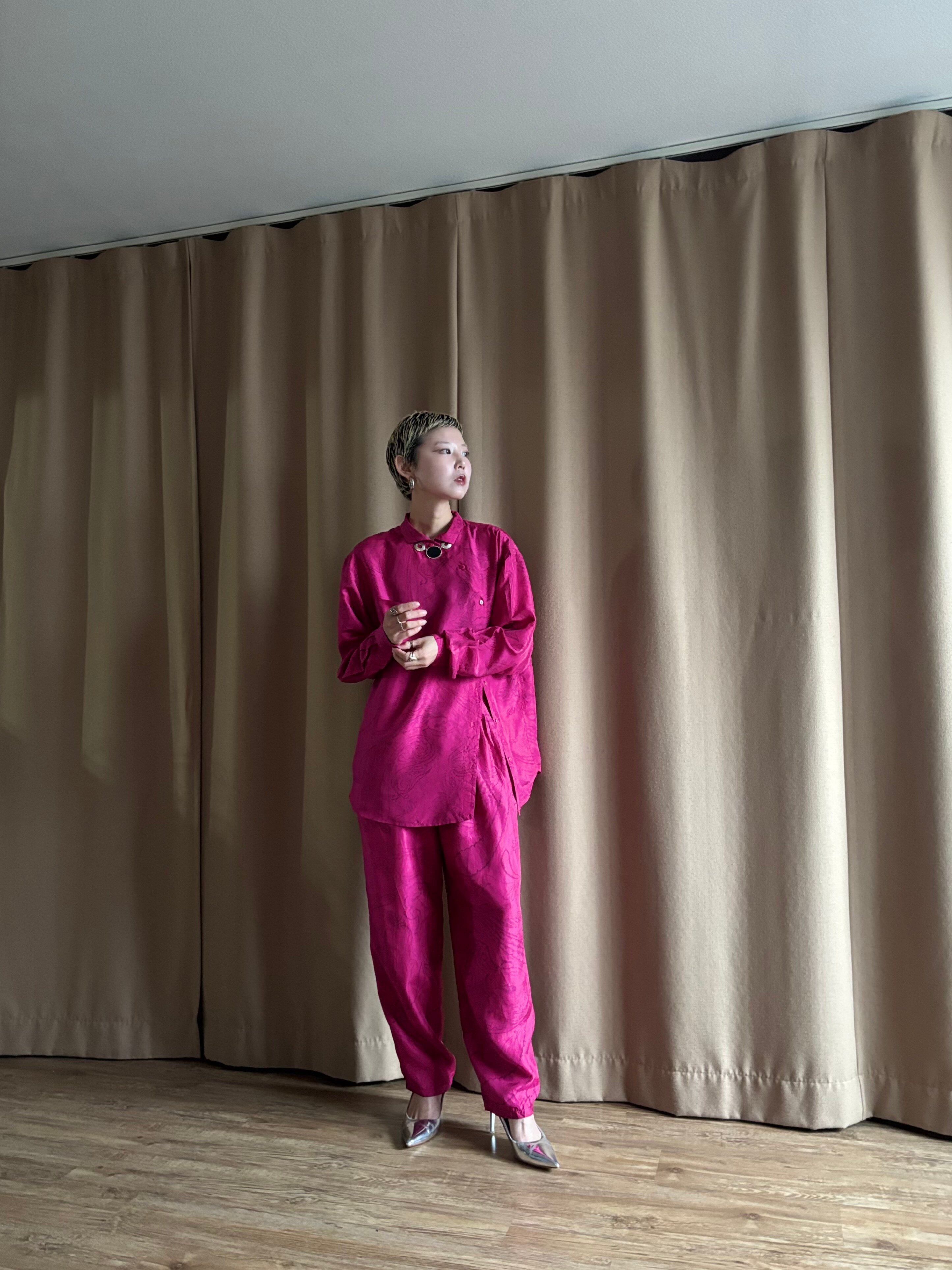 個性を引き立たせるマゼンタカラーの色彩に、艶やかなシルクが放つ上品な光沢。