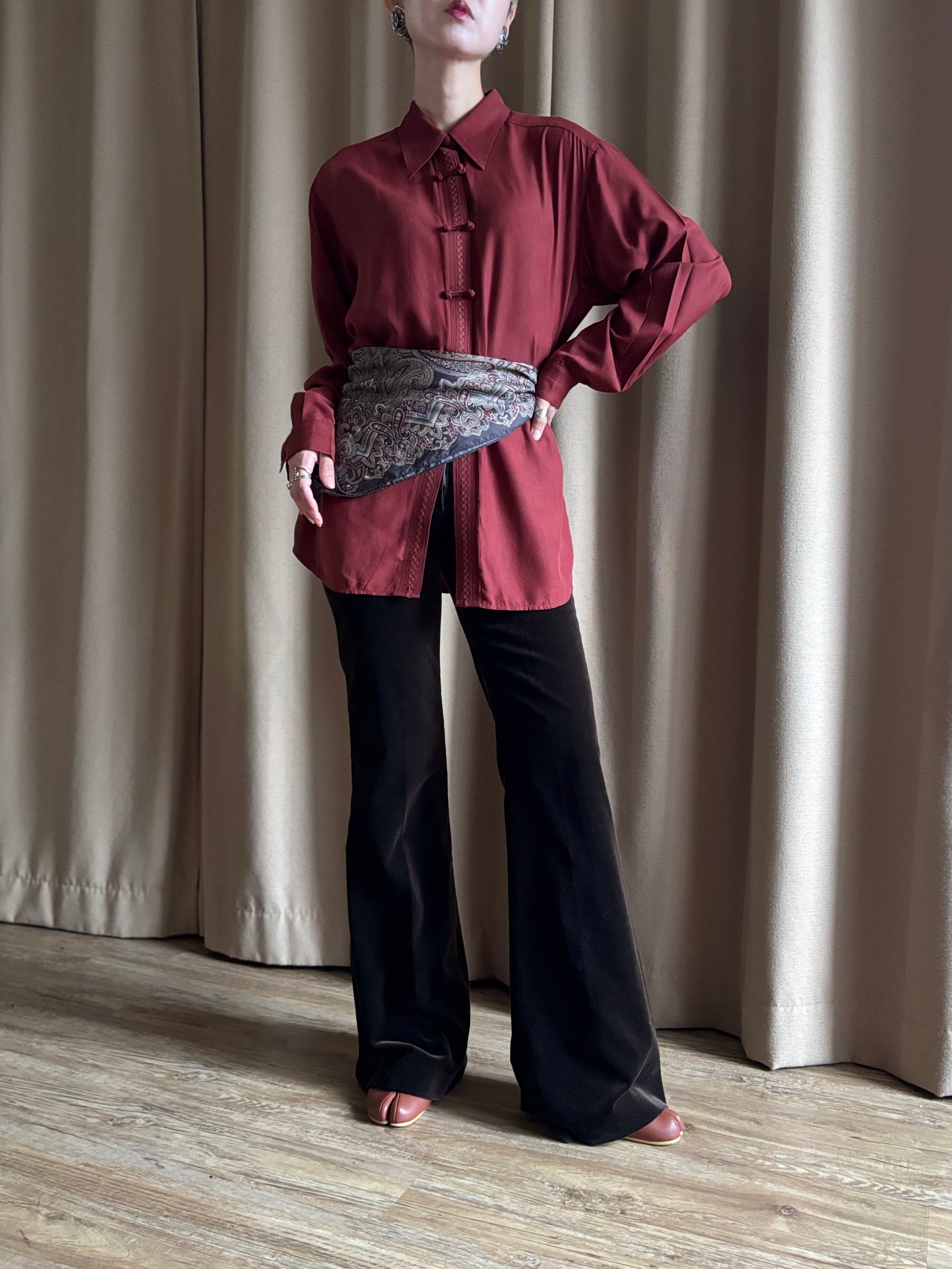 フロントに施されたチャイナボタンと繊細なコード装飾が、クラシカルな中にモードなエッセンスを添える一枚。