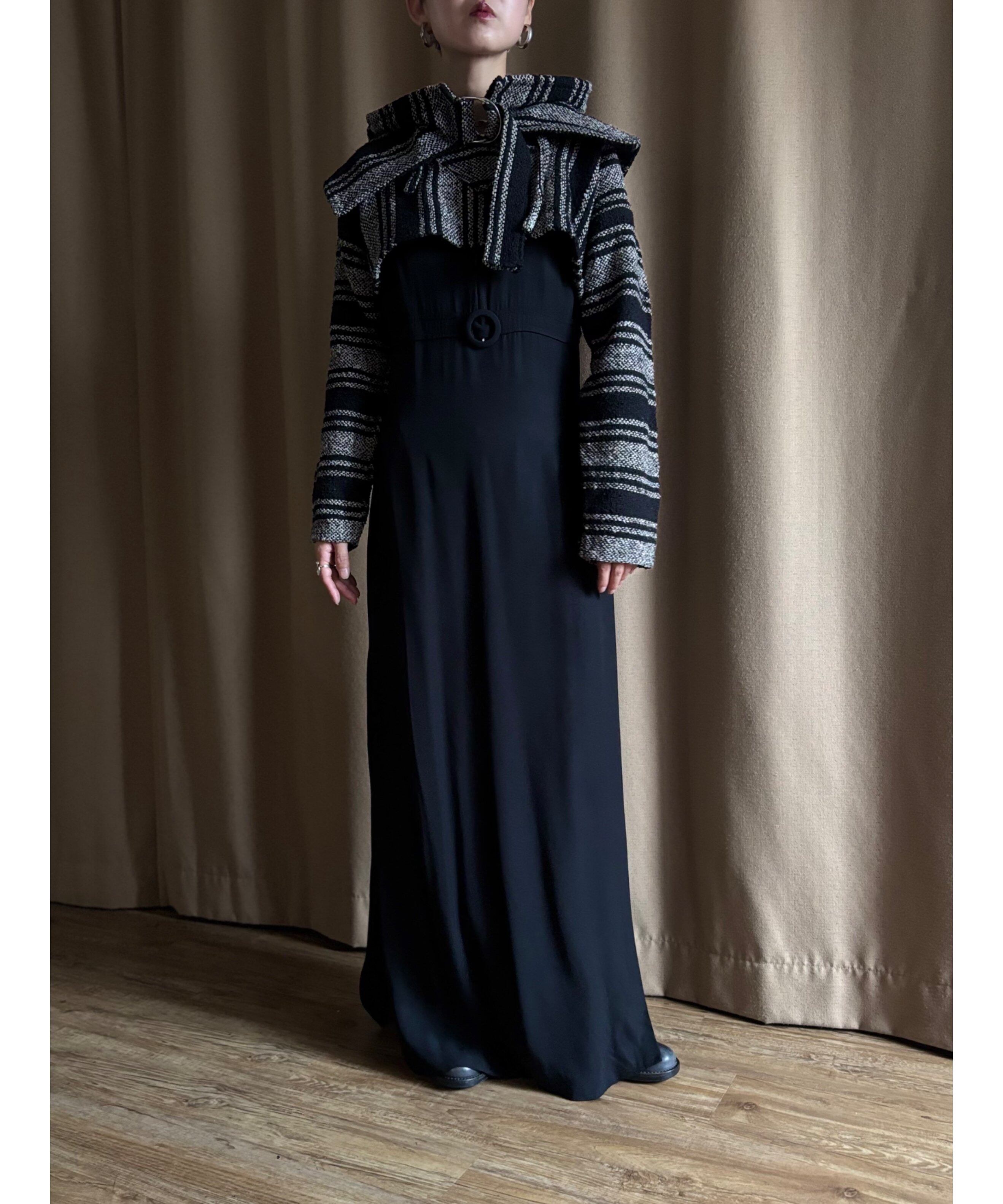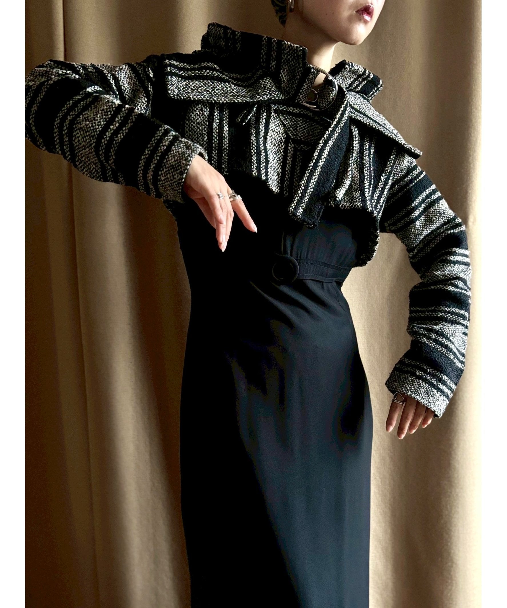 シンプルなブラックワンピースに合わせるだけでスタイリングを一気に格上げ。