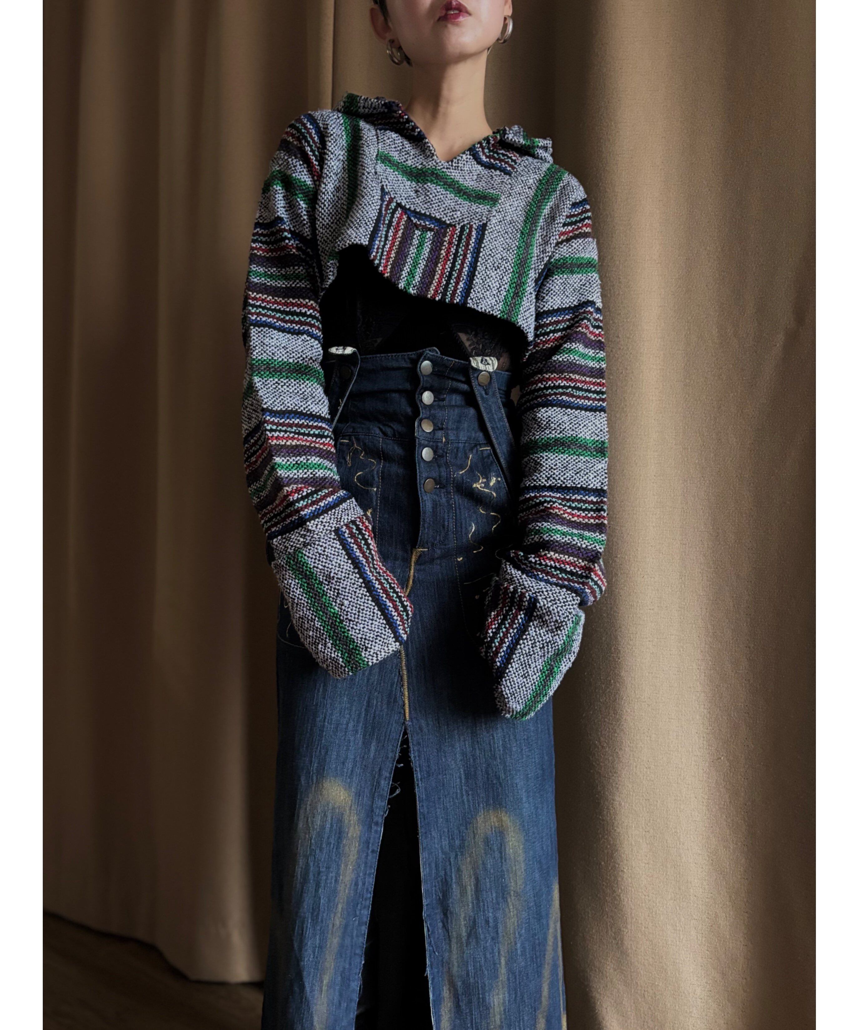 クロップド丈フーディーとスヌードのリメイクセットアイテム。