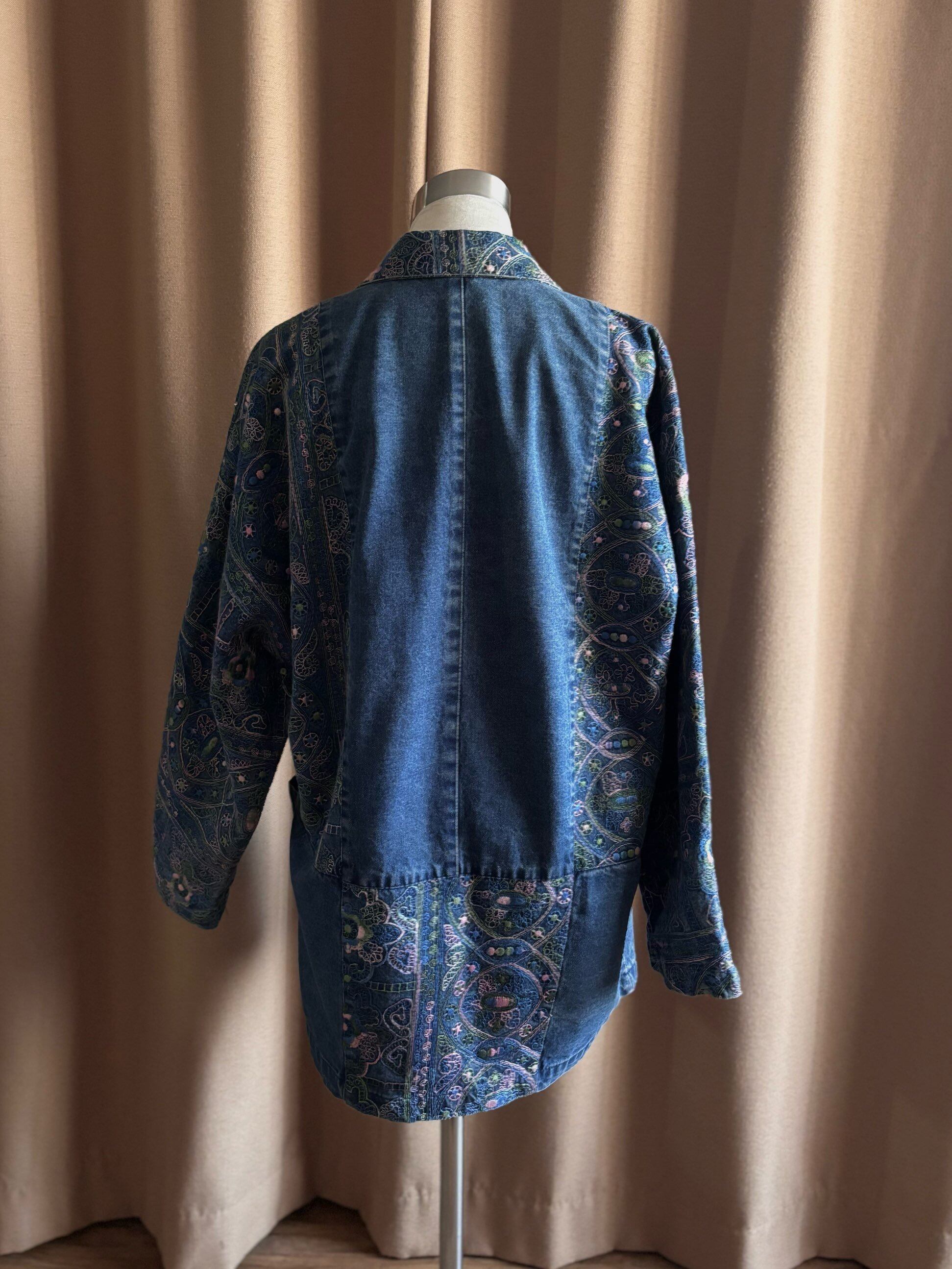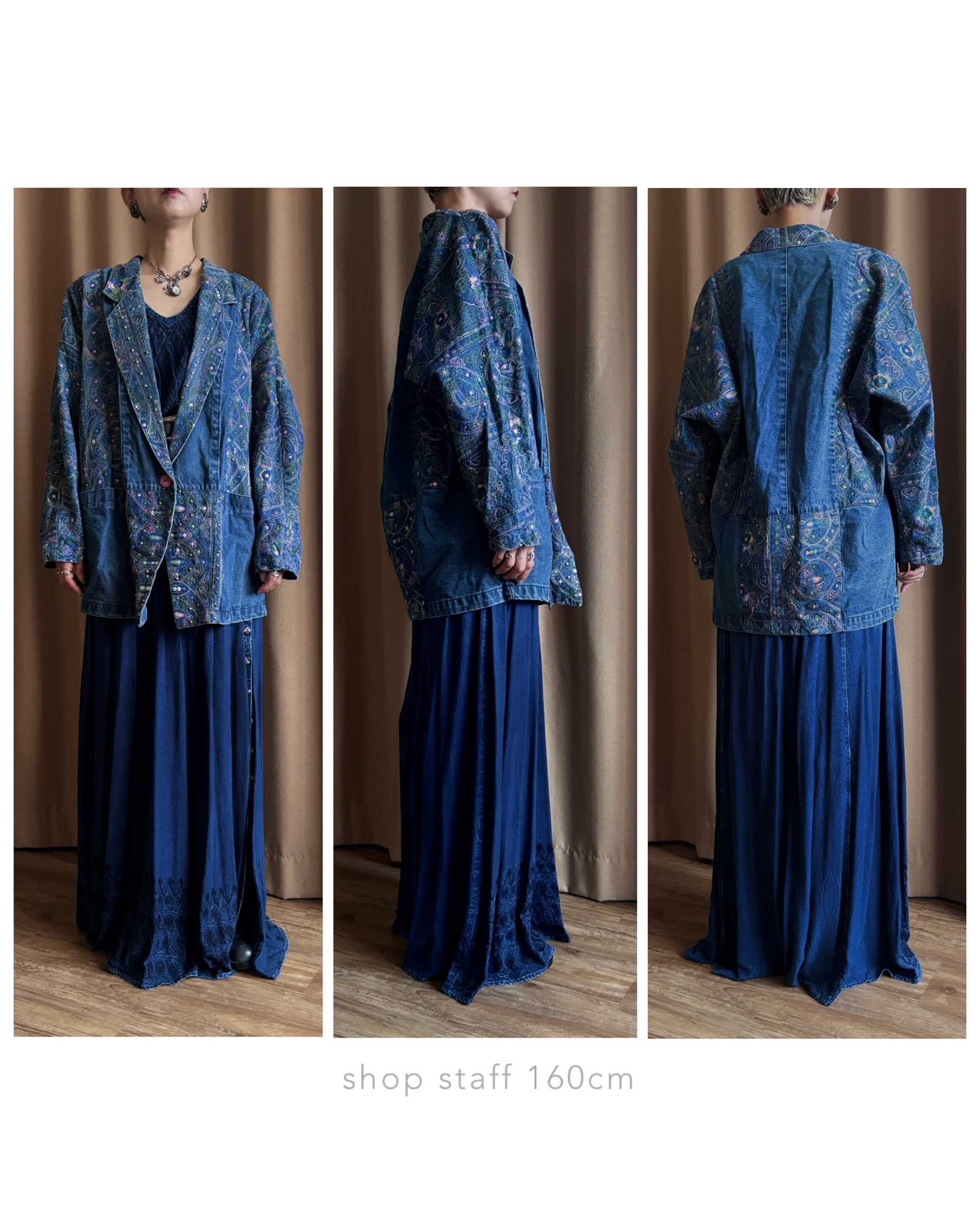 手間と拘りを感じる繊細な刺繍柄が華やぎ溢れるデニムジャケット。