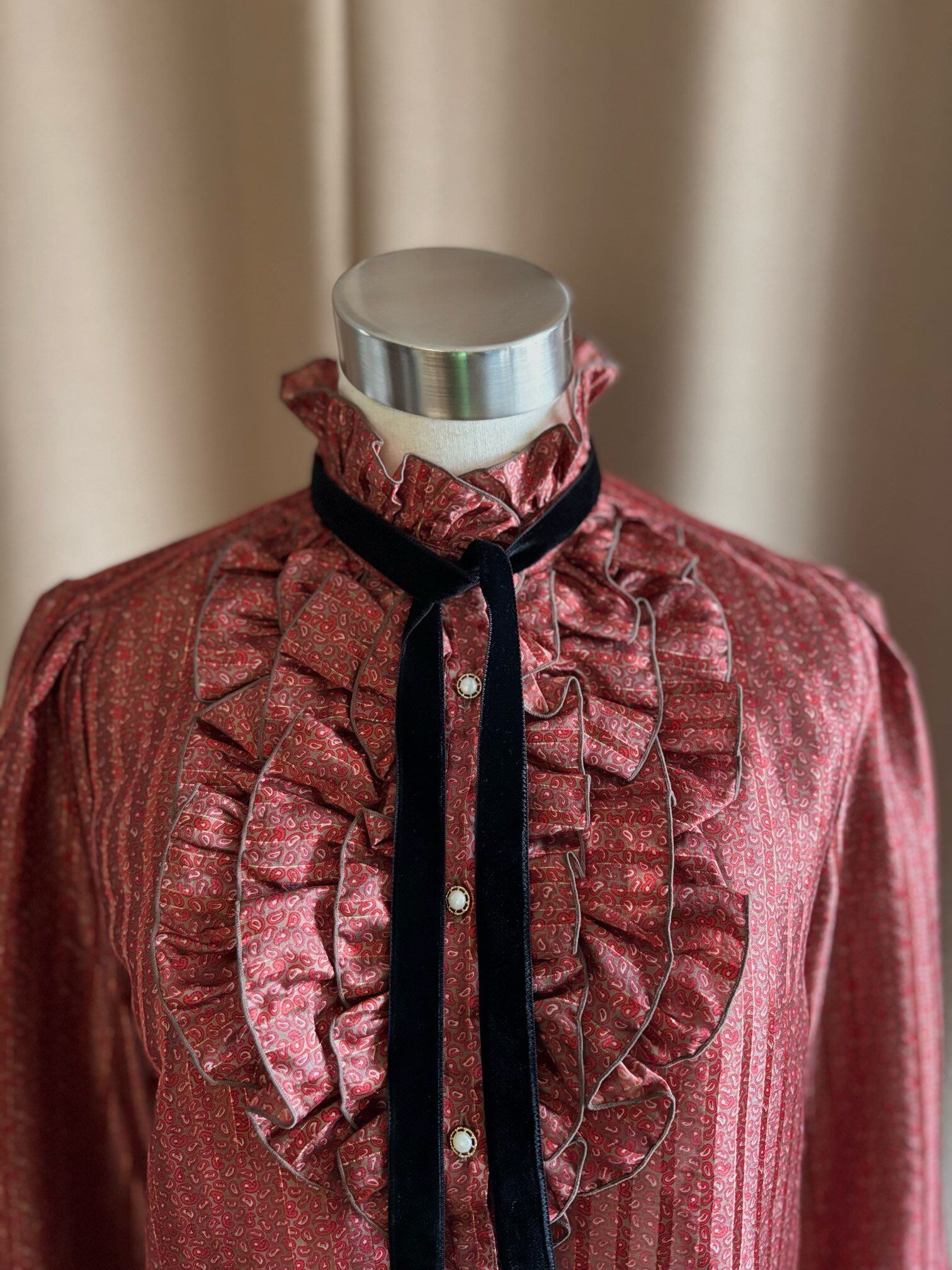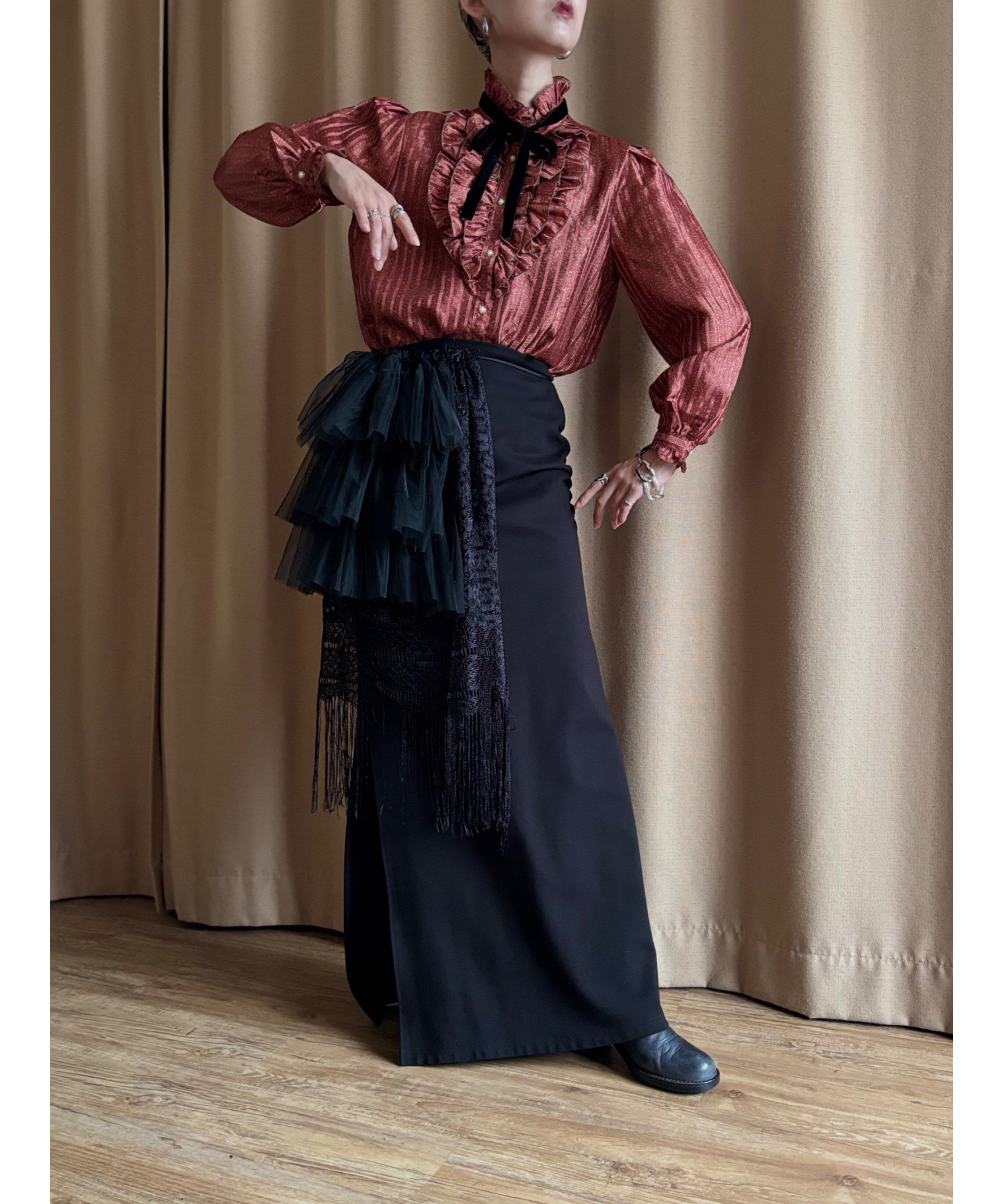 贅沢にあしらわれたフロントフリルは立体的な陰影を生み、クラシカルなシルエットを演出。
