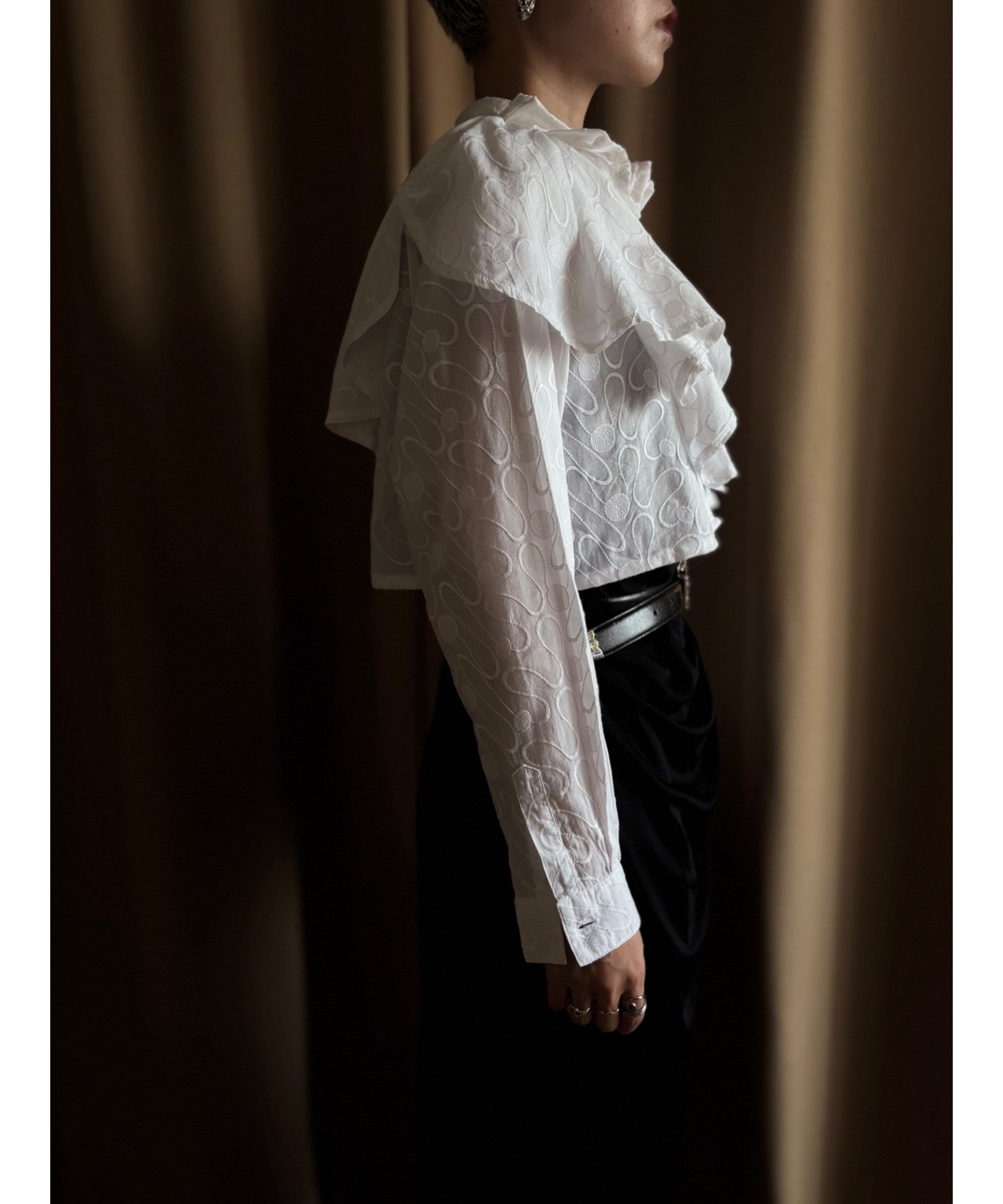 jacquard pattern frill remake shirt-4887-9