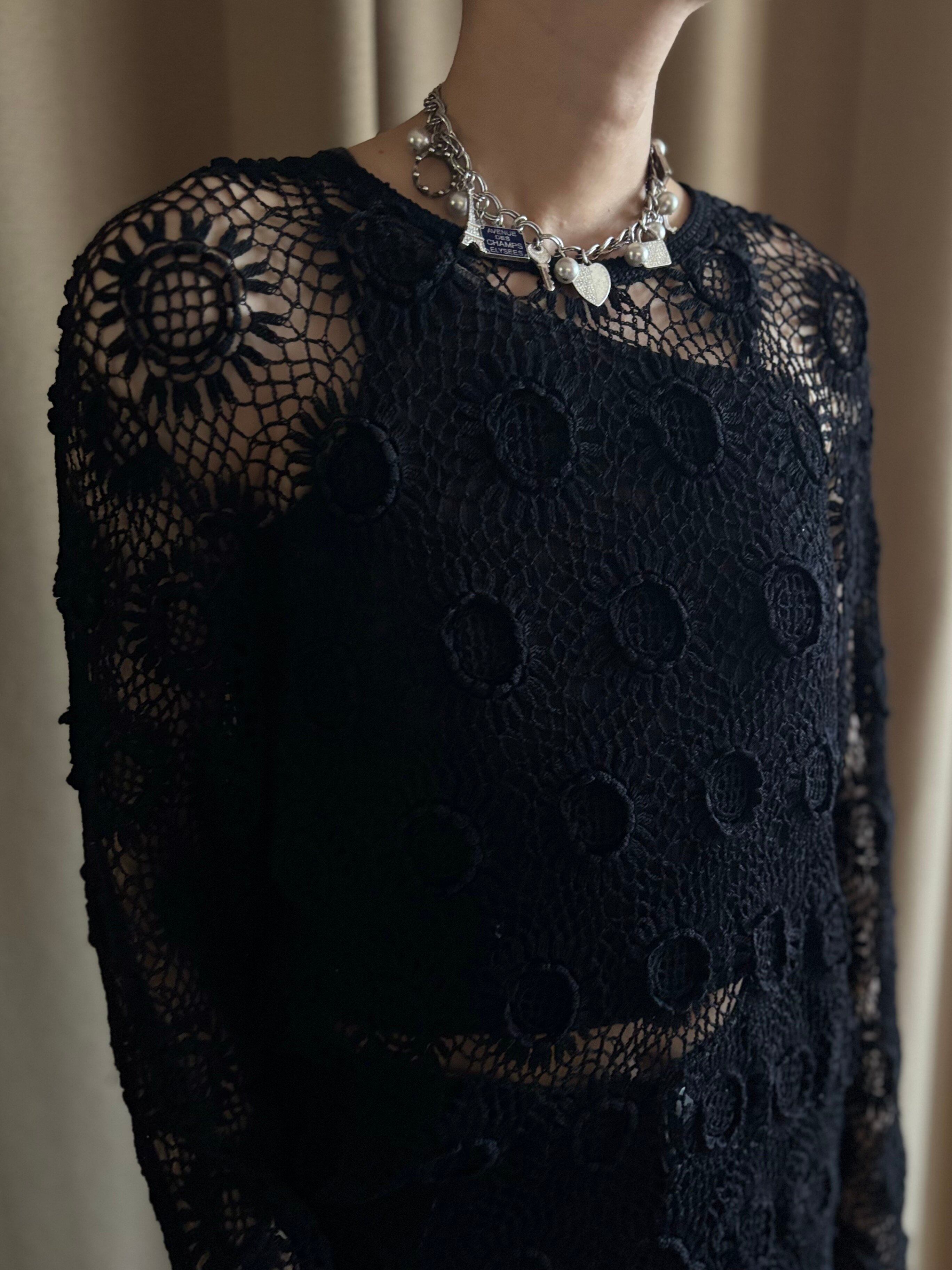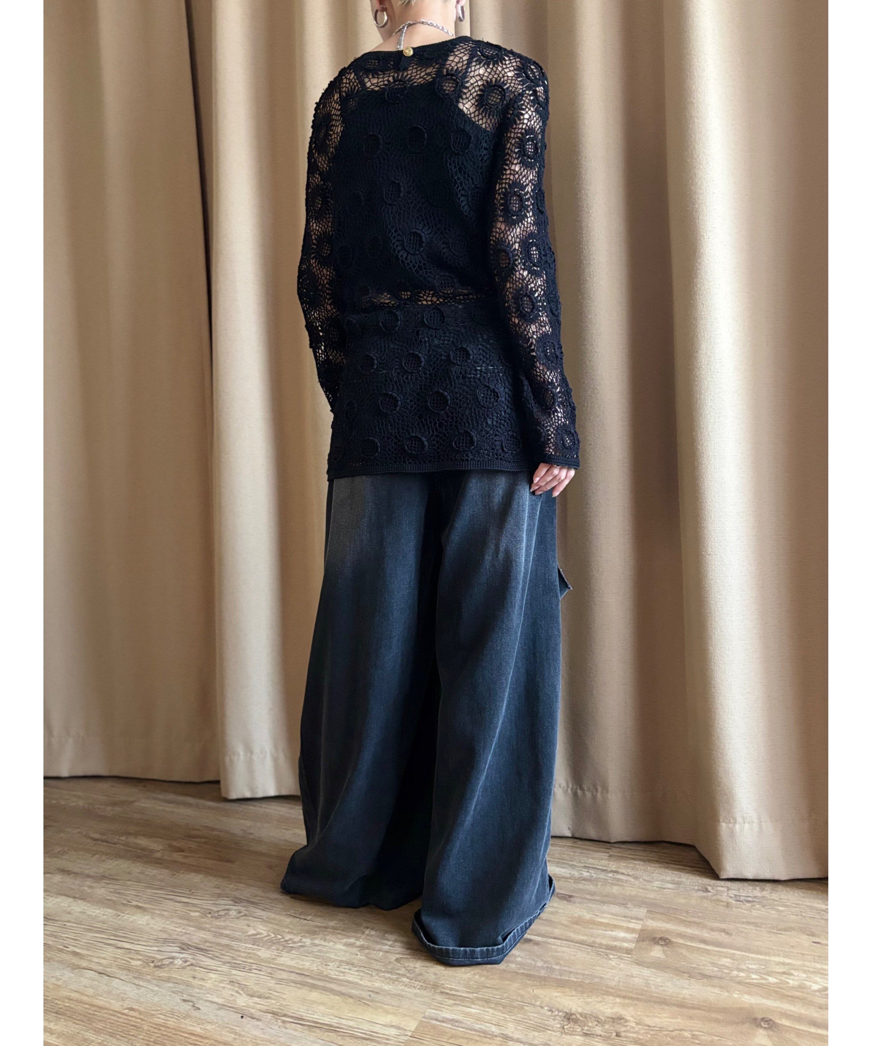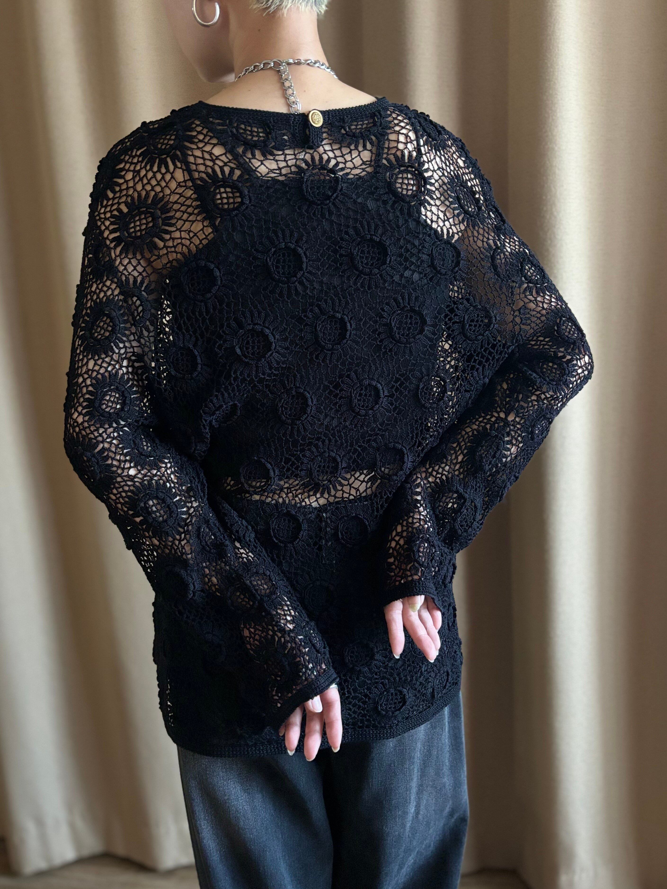 立体的なフラワー柄がヴィンテージムード引き立つクロシェトップス。