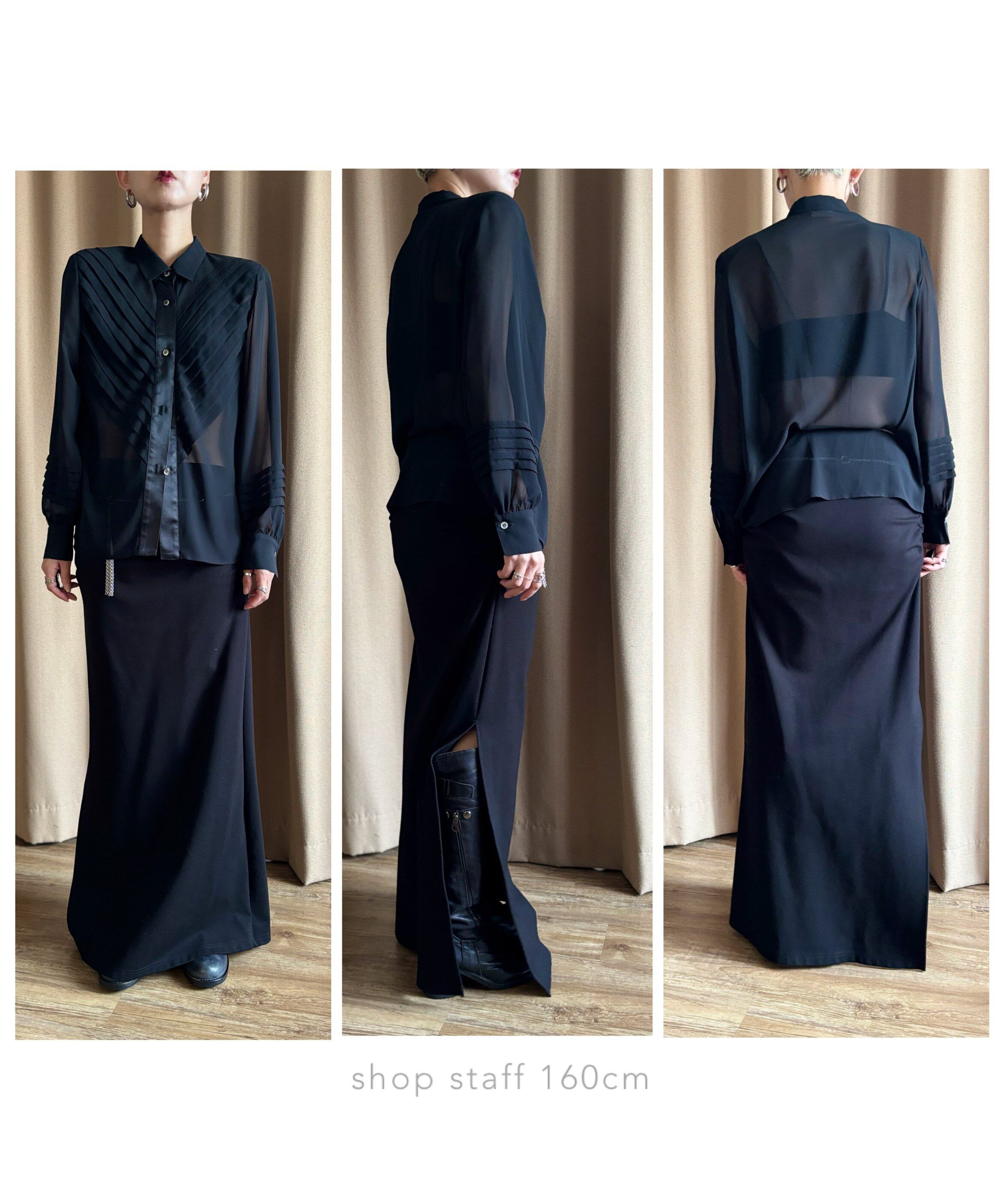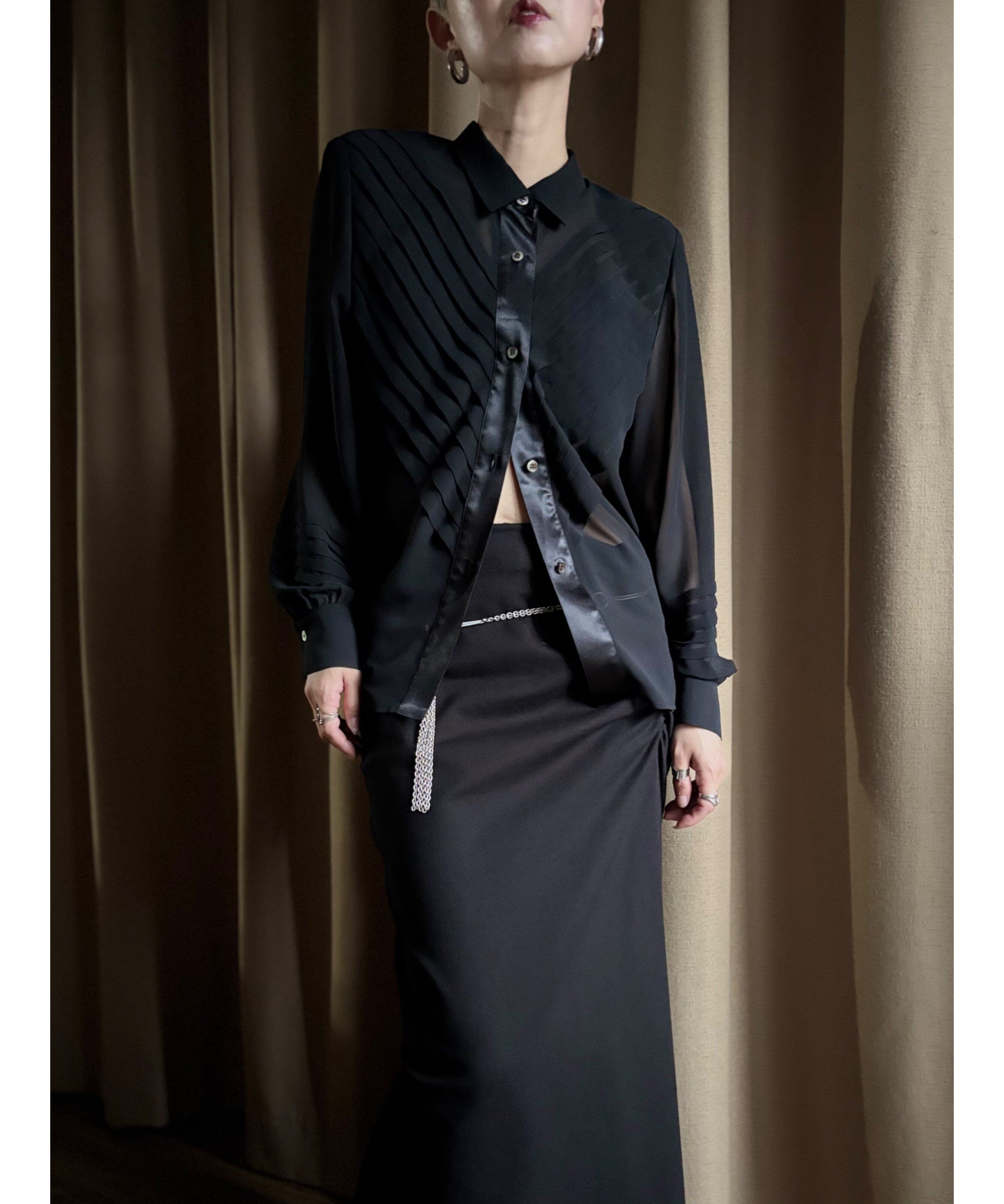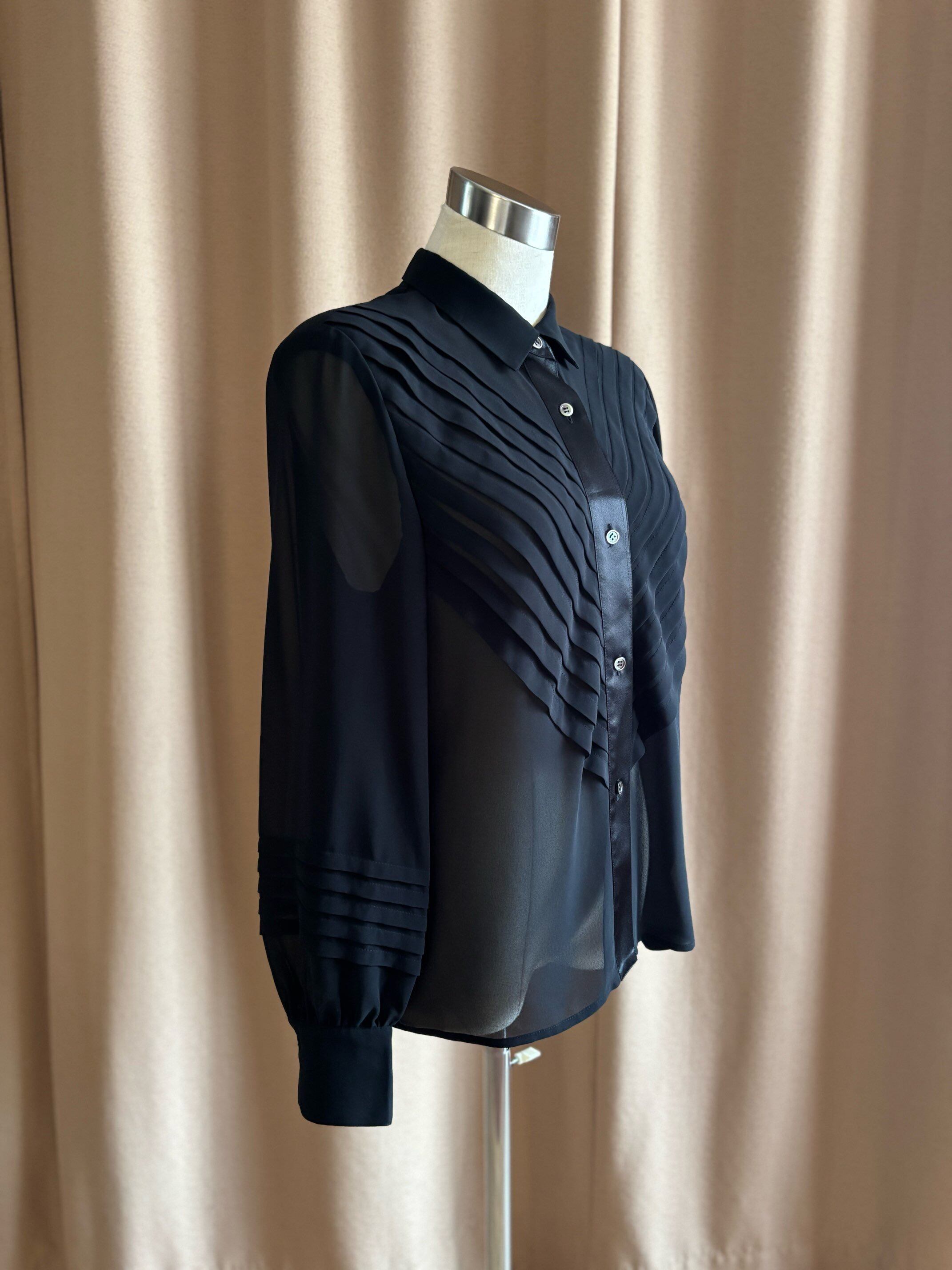 tuck pleats design black sheer shirt-4883-9