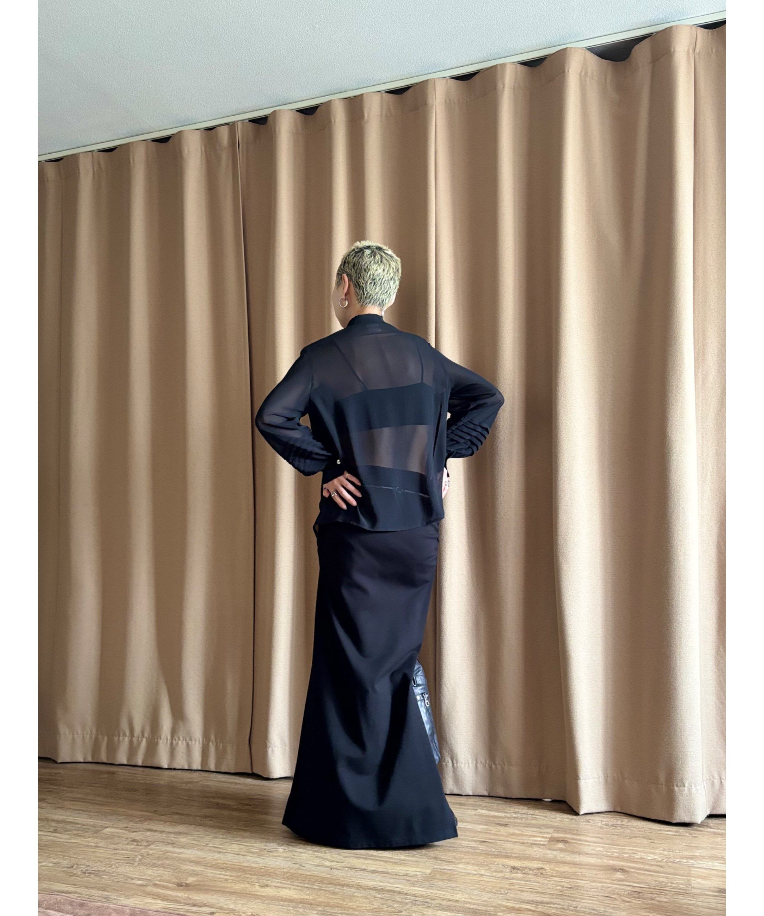 軽やかさと奥行きを纏うブラックシアーシャツ。