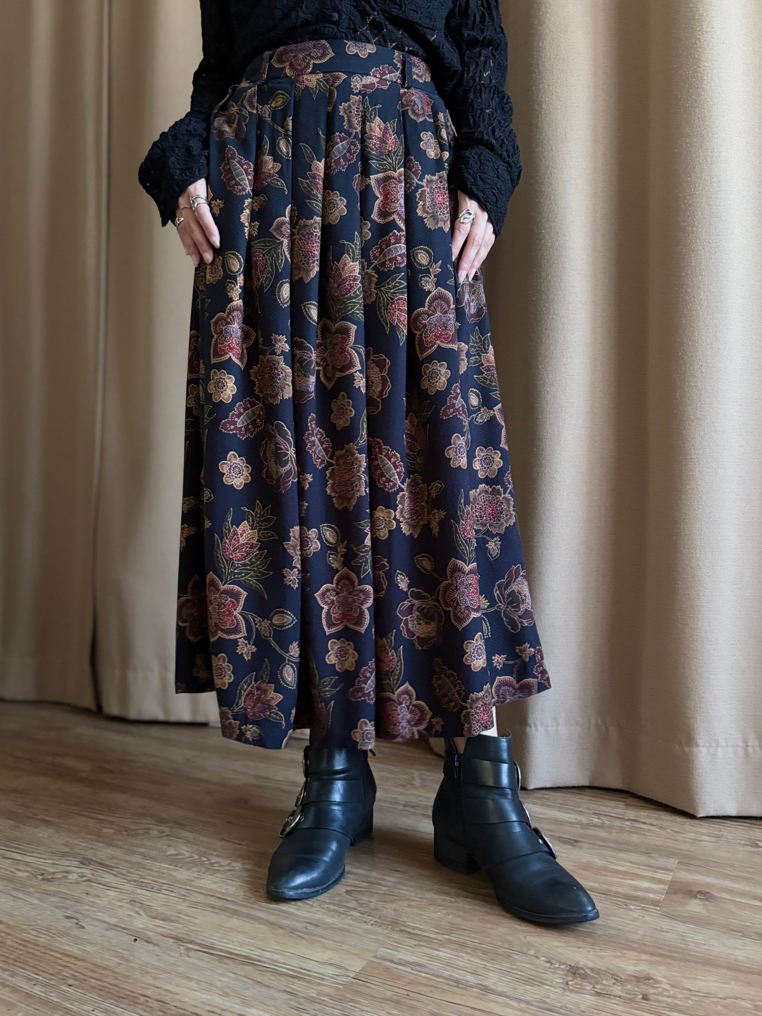 レトロモダンな総柄が目を惹くスカートはスリランカ製。