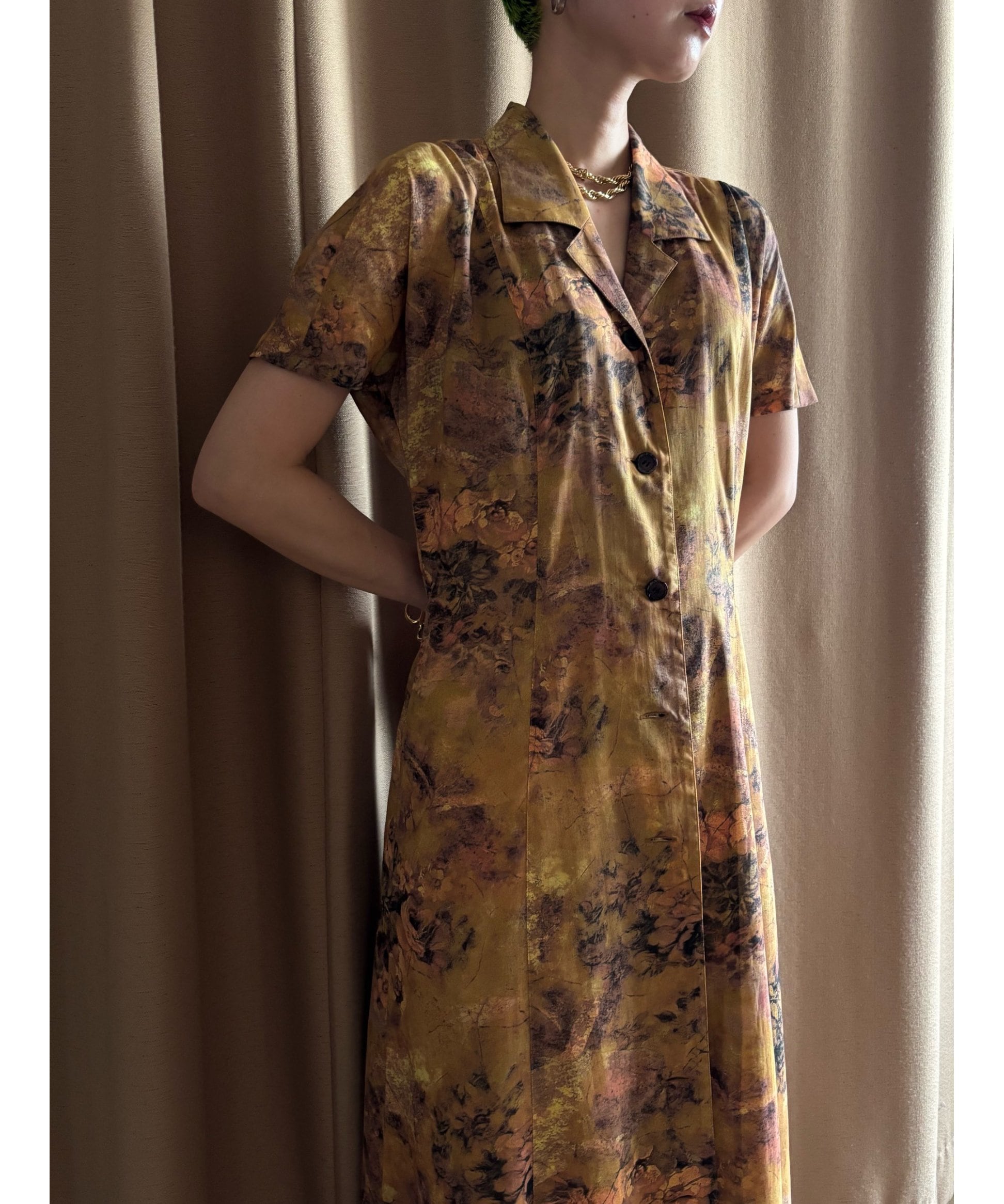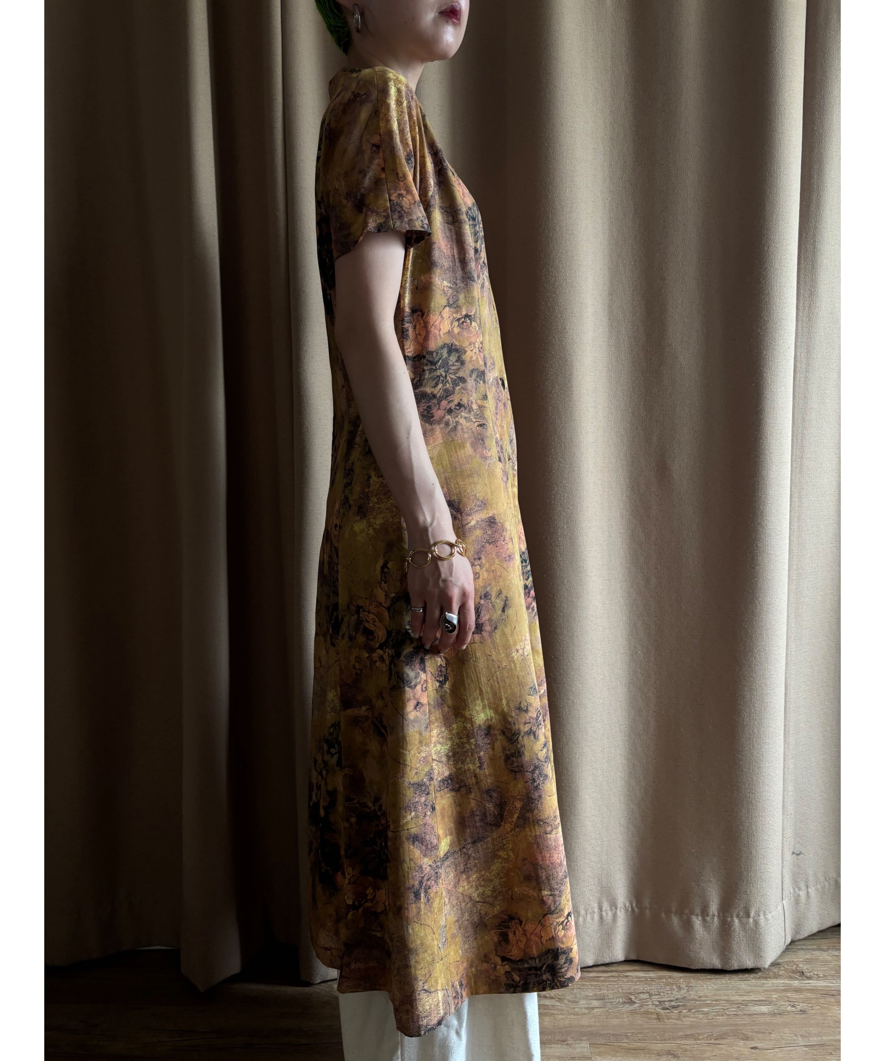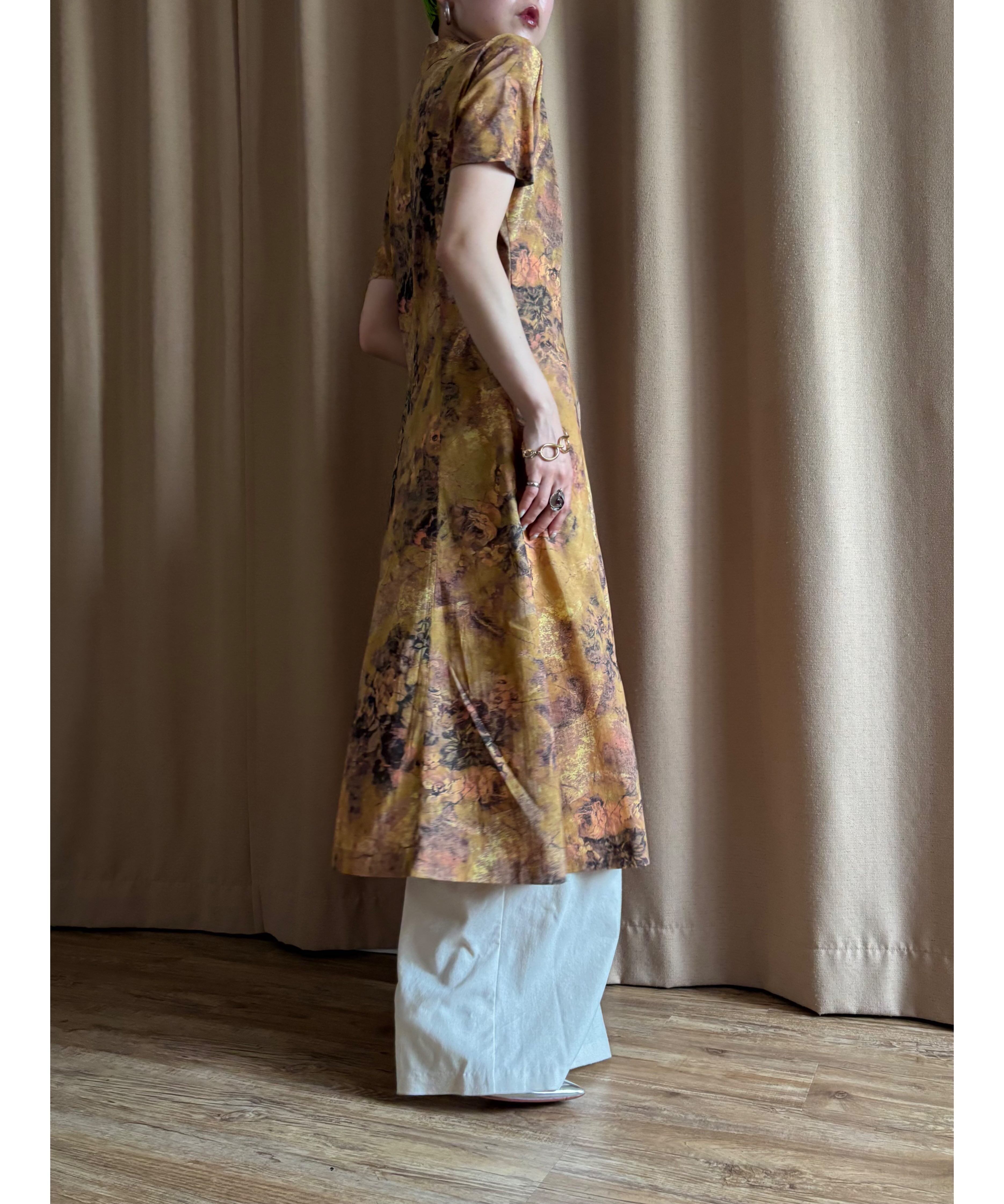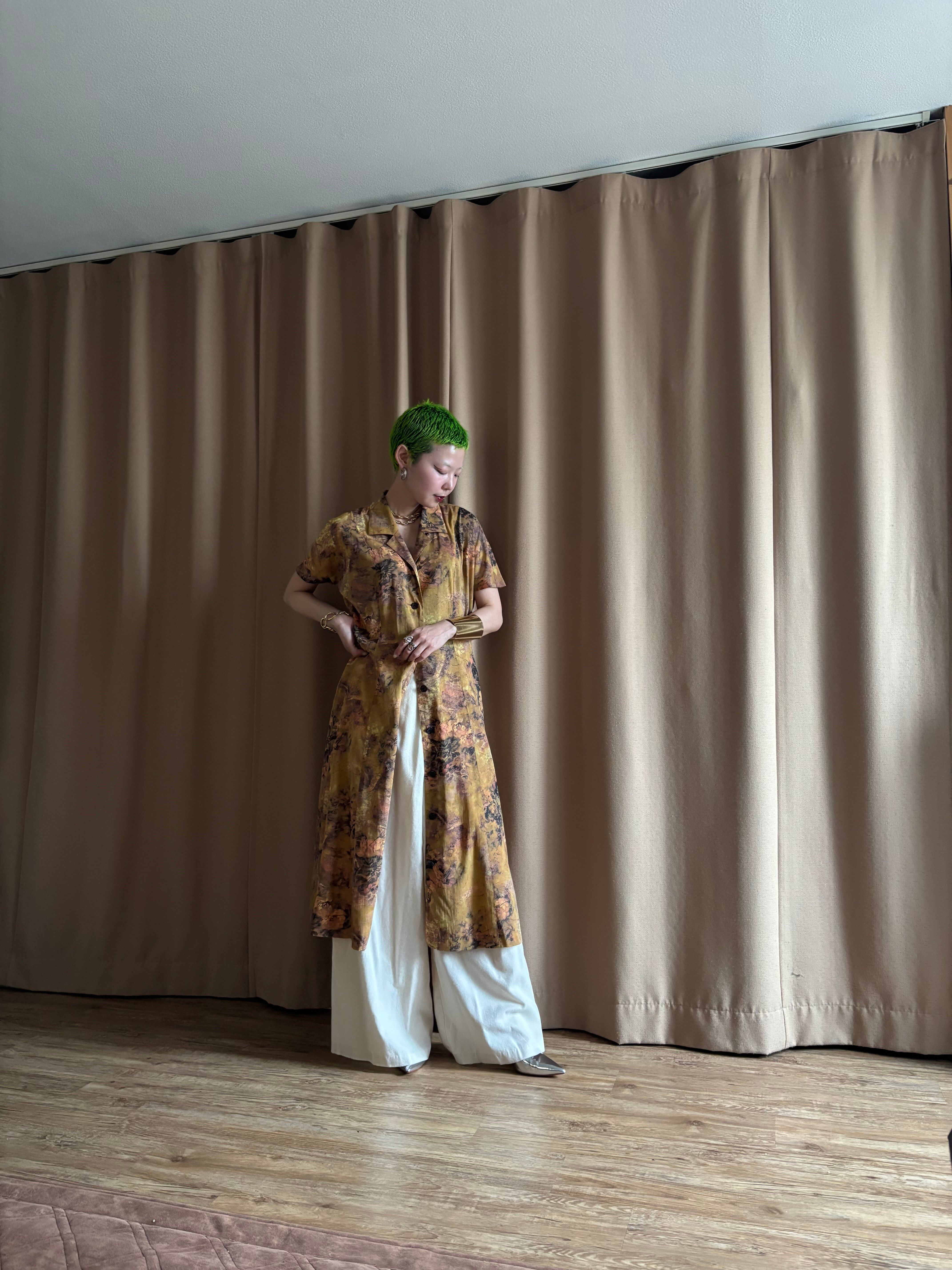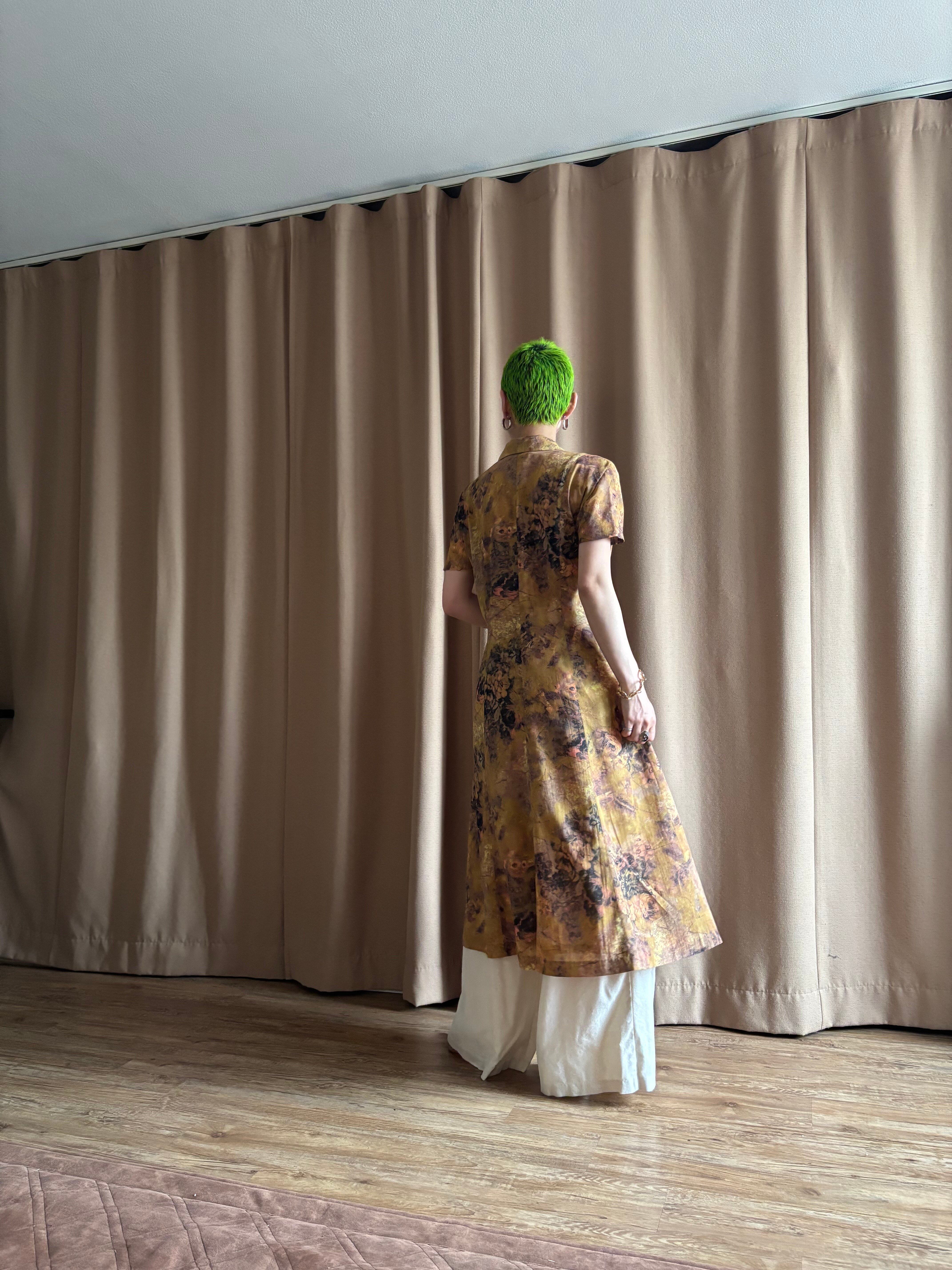 テーラードカラー×フレンチスリーブのレトロなパターンでありながらも、アートな感性に落とし込んだ一枚で主役級の存在感を放つ逸品。