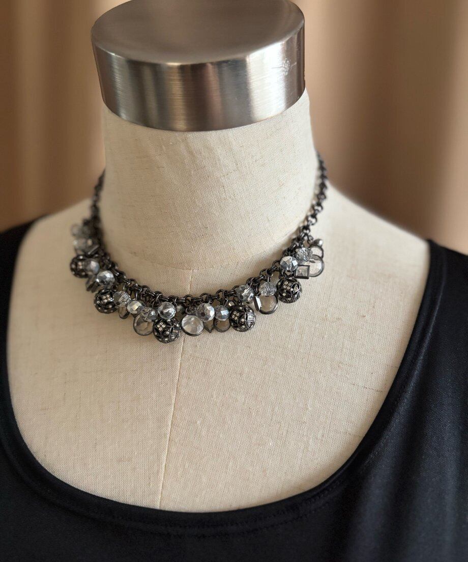 ラグジュアリーな輝きにブラックチェーンを使用することでモードさ薫る逸品に。