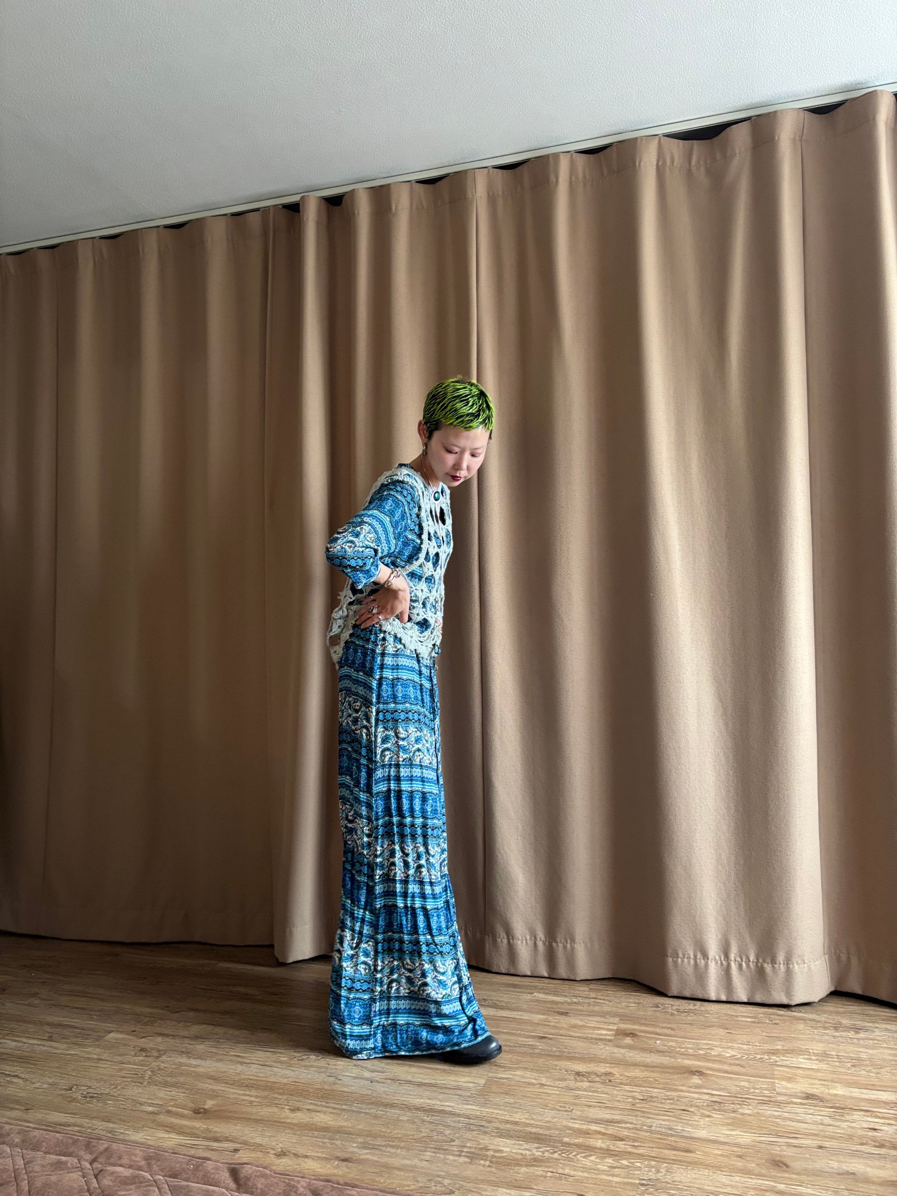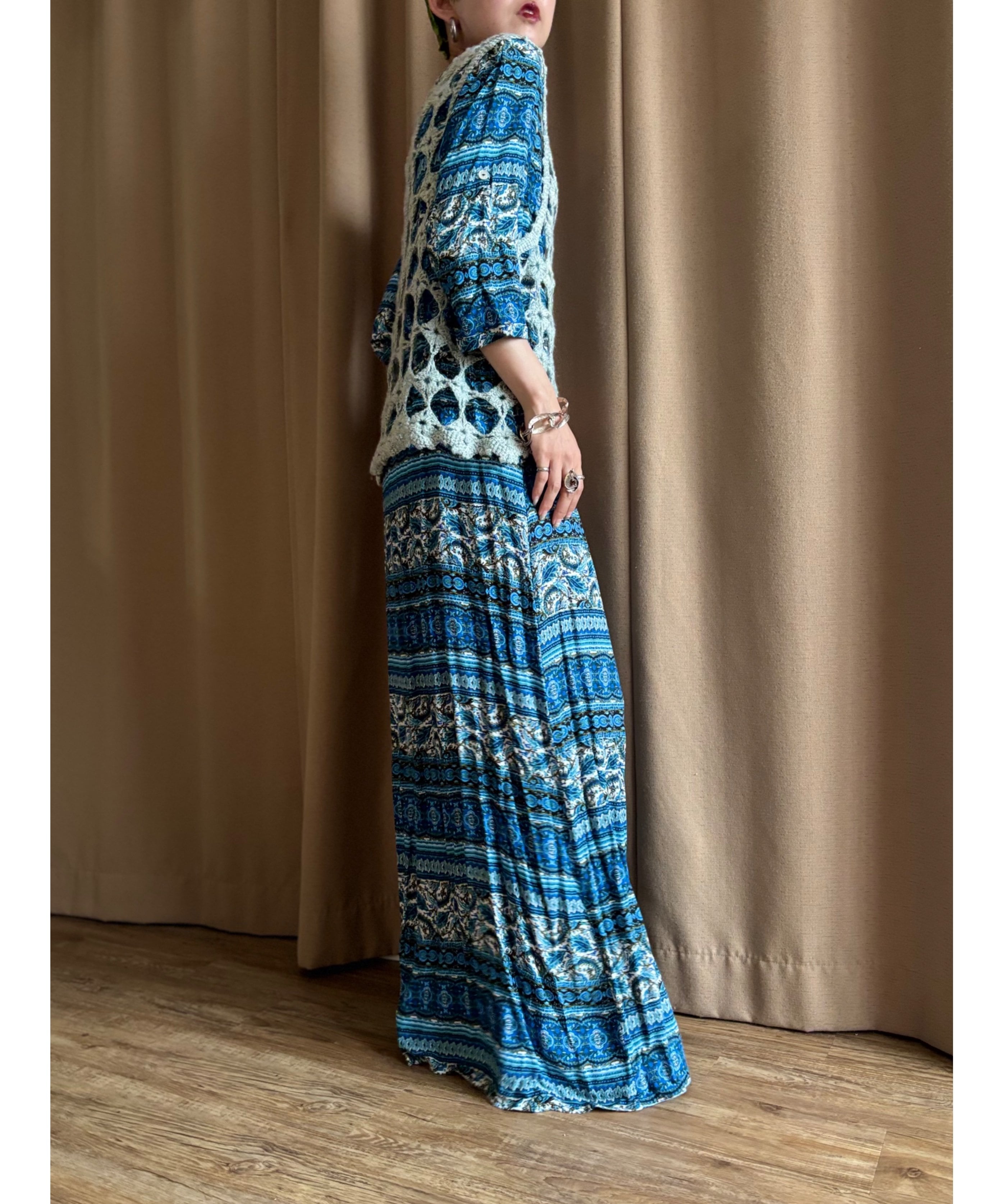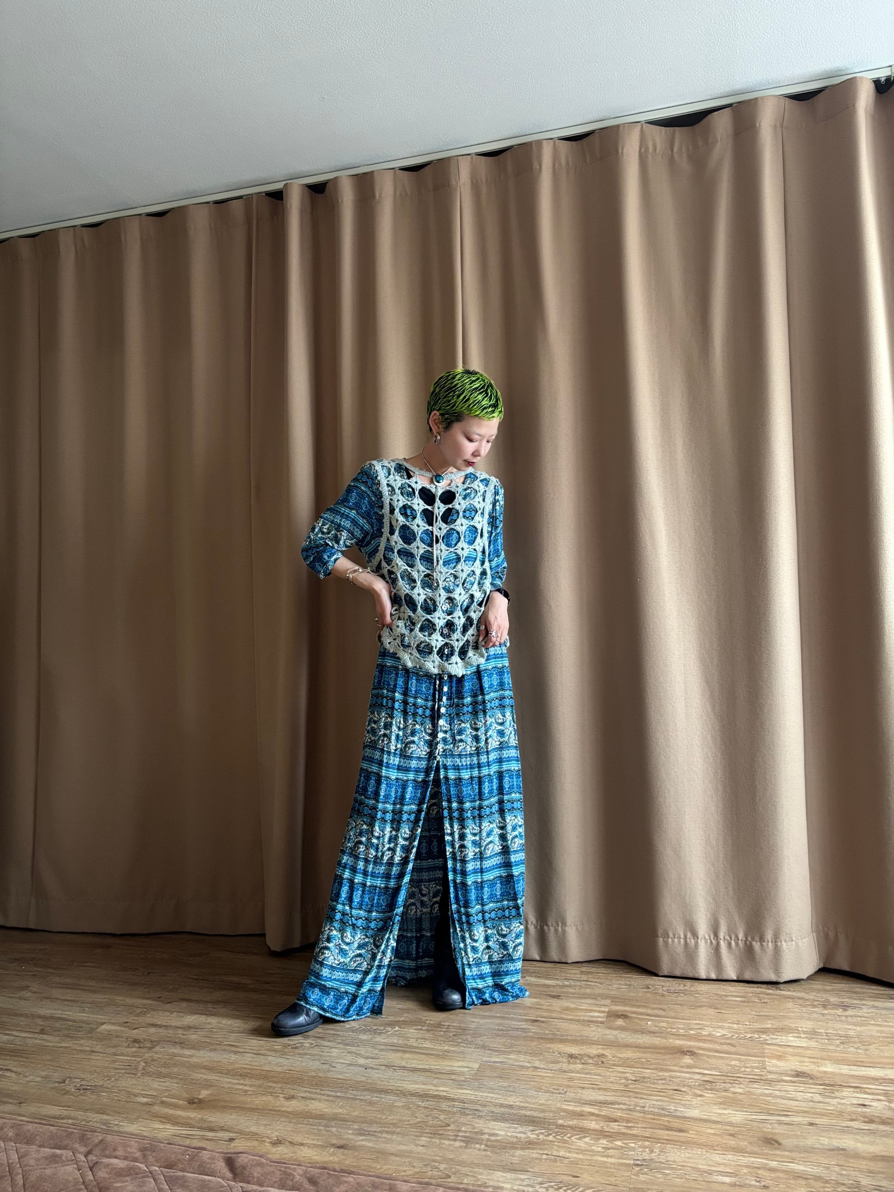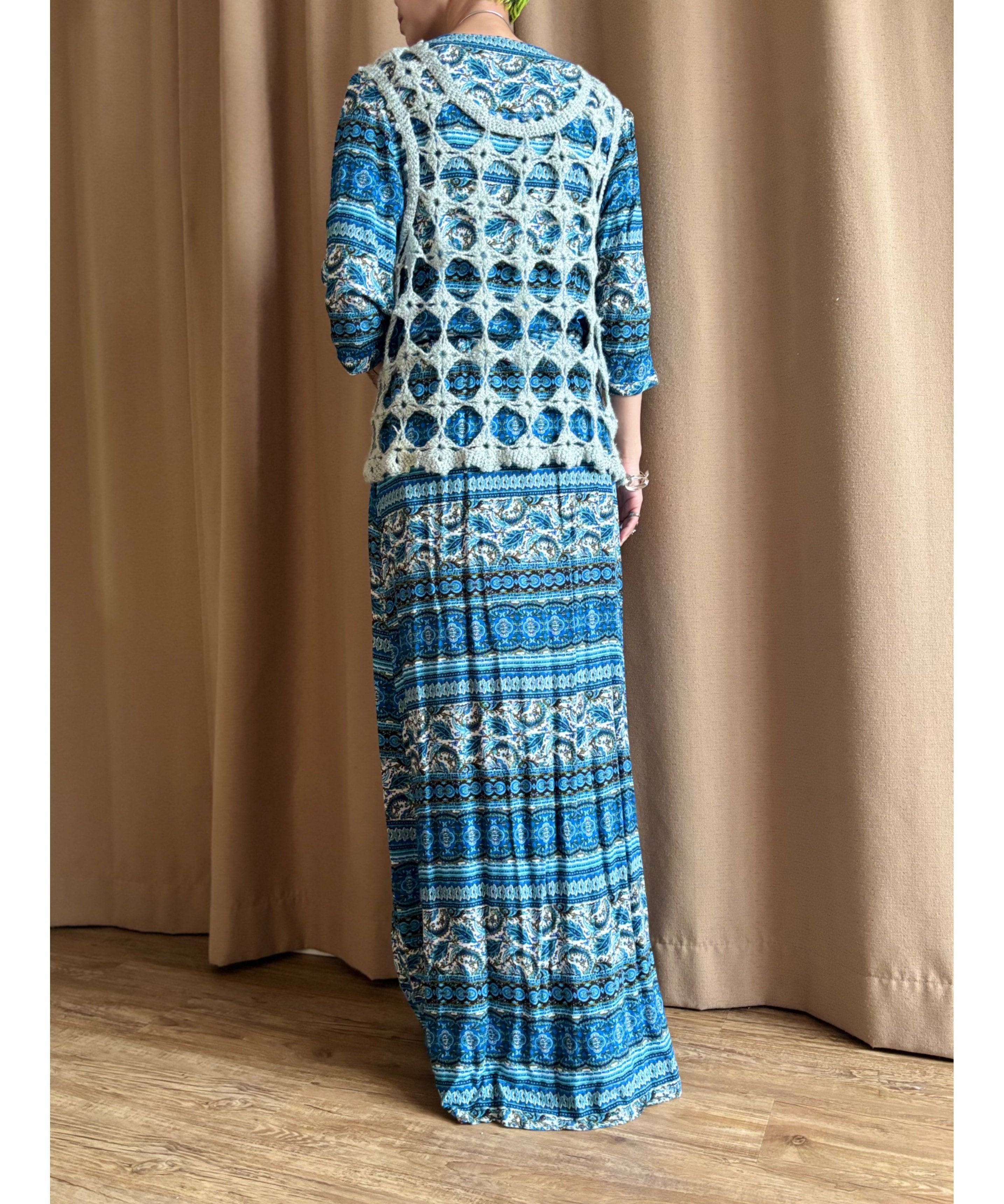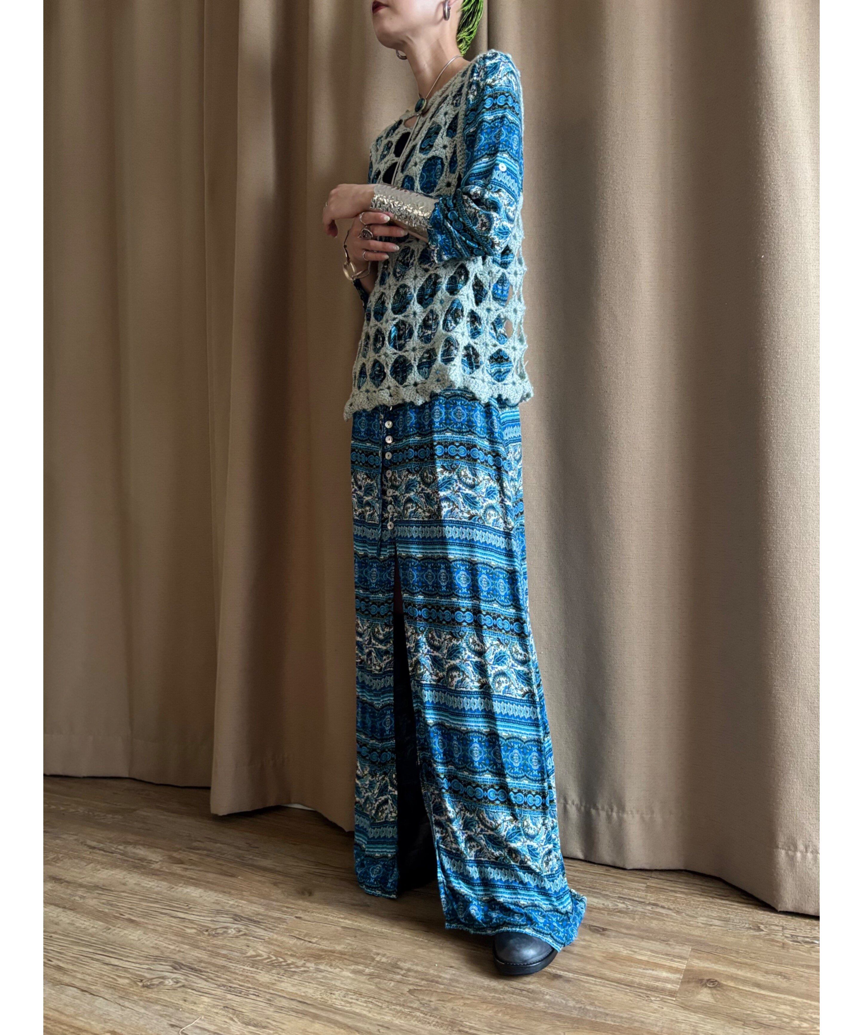 繊細なエスニック柄にブルーカラーが涼しげなインポートワンピース。