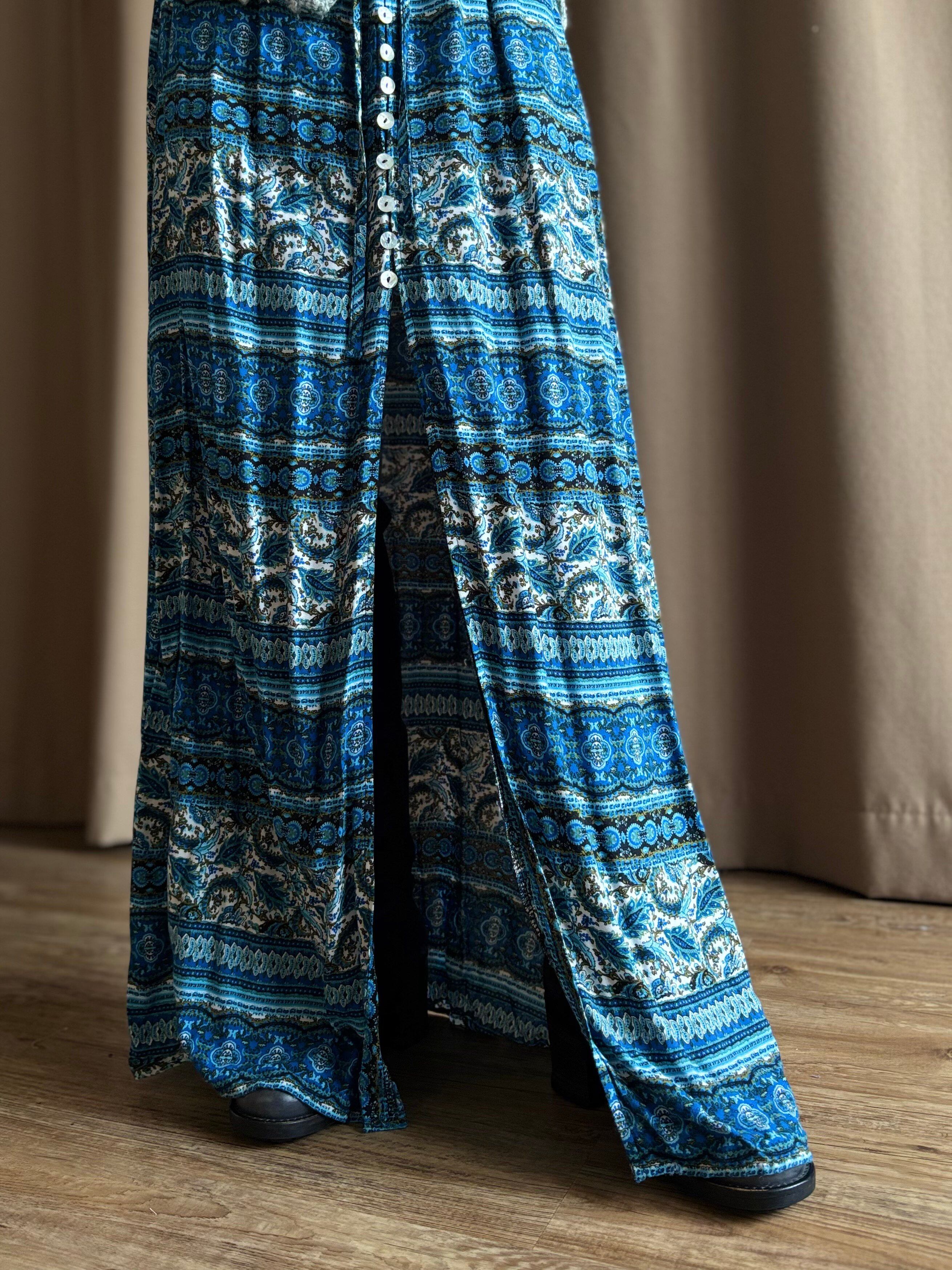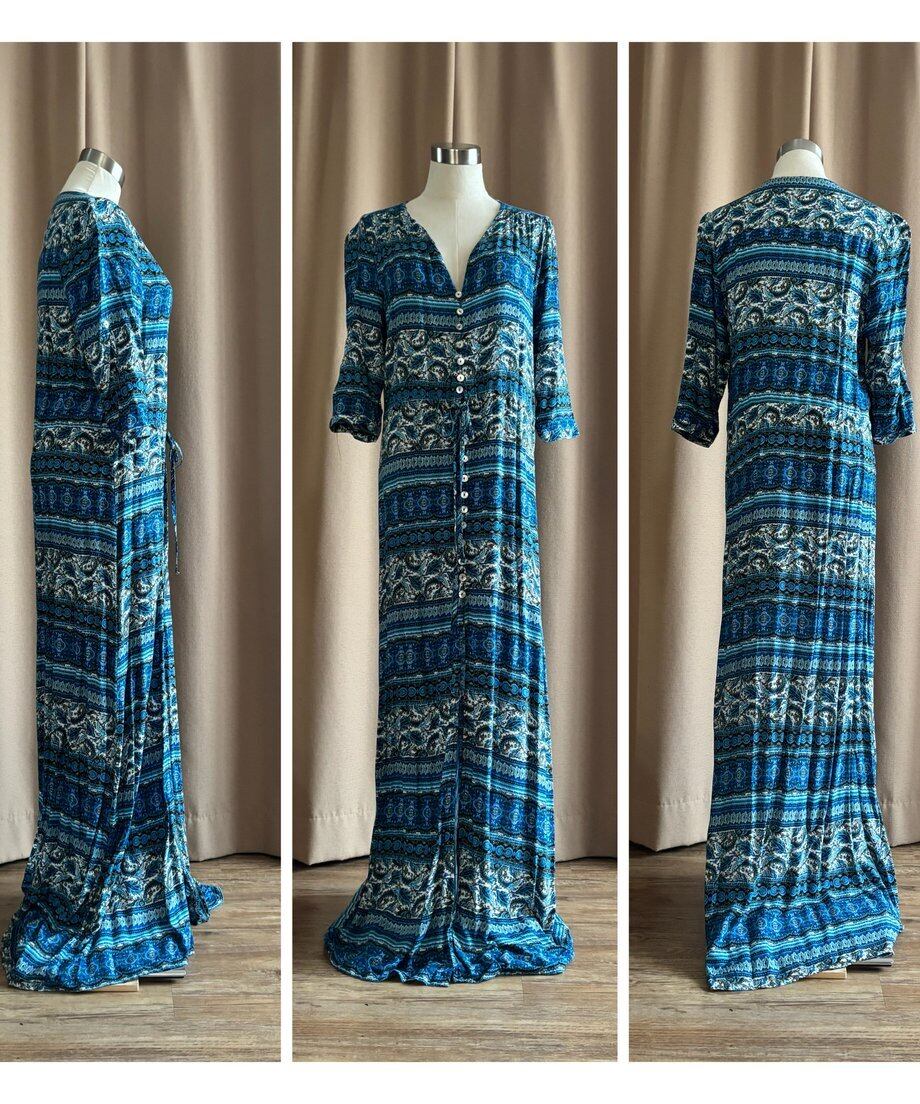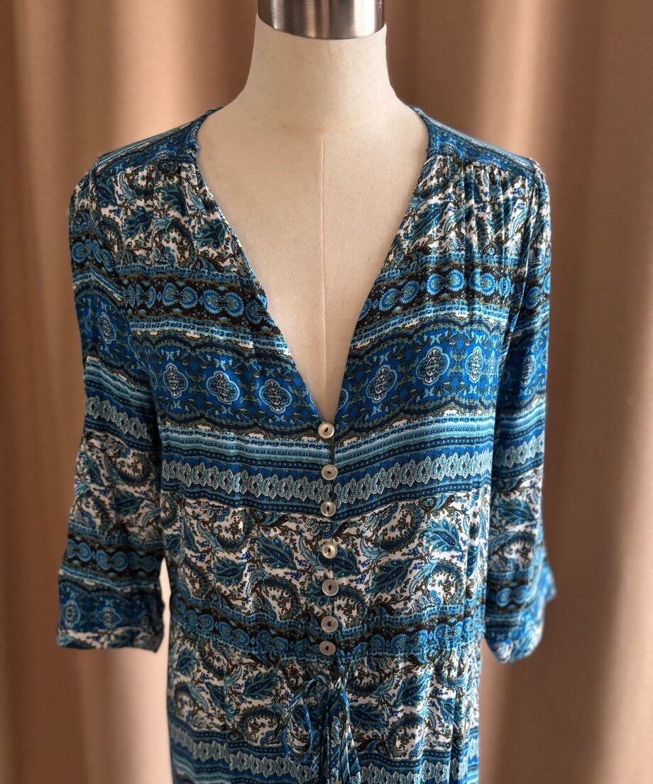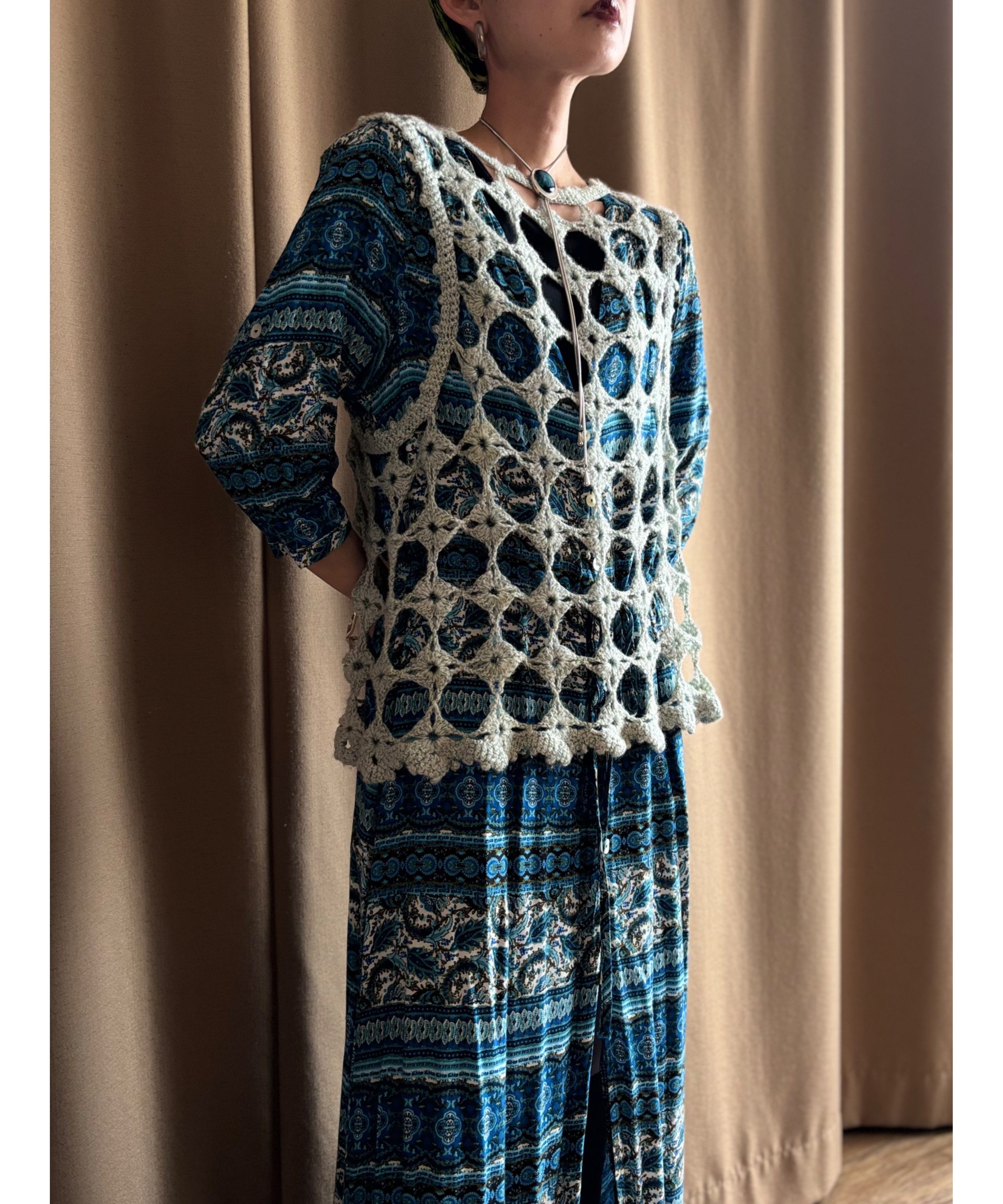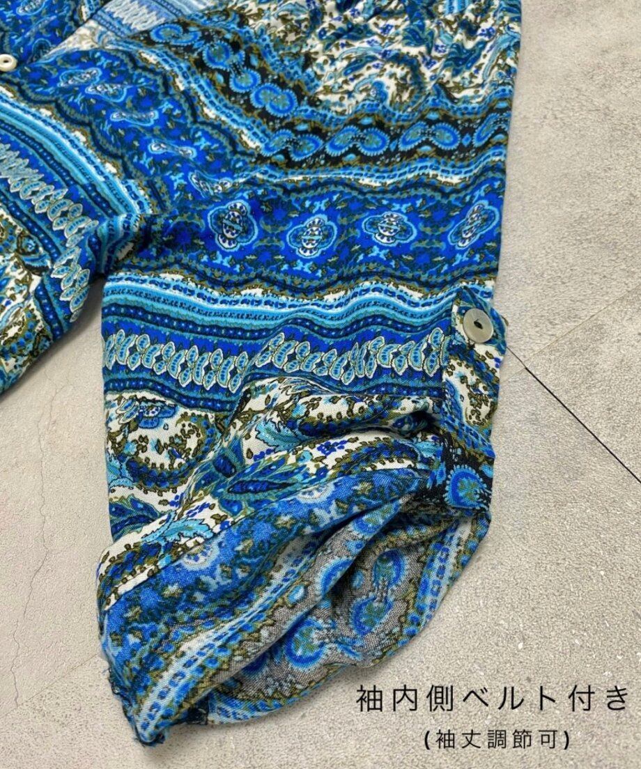 繊細なエスニック柄にブルーカラーが涼しげなインポートワンピース。