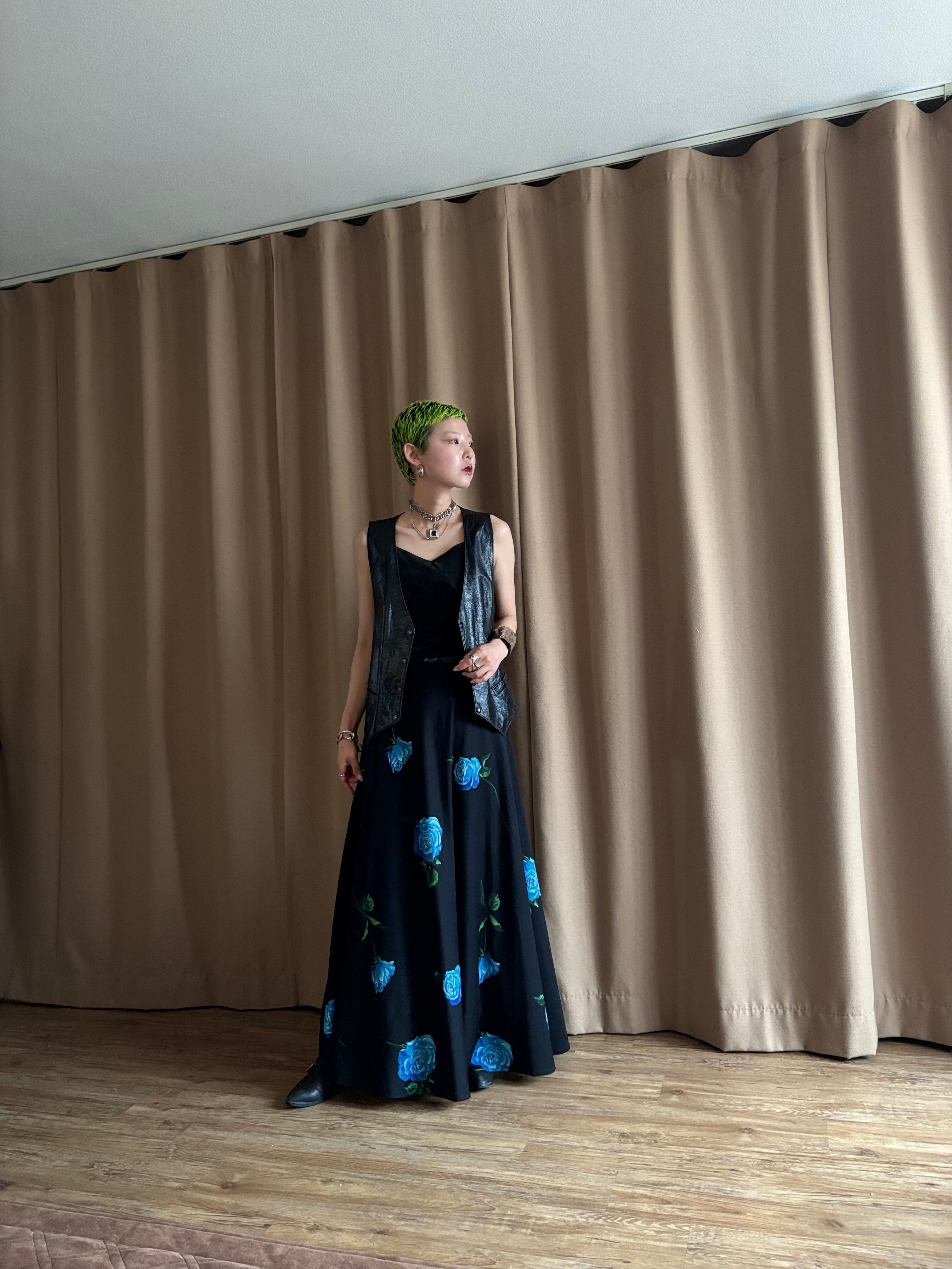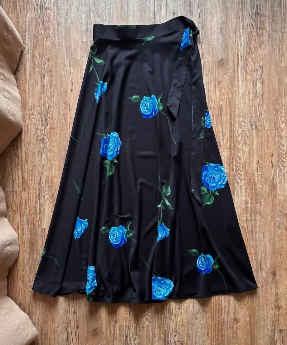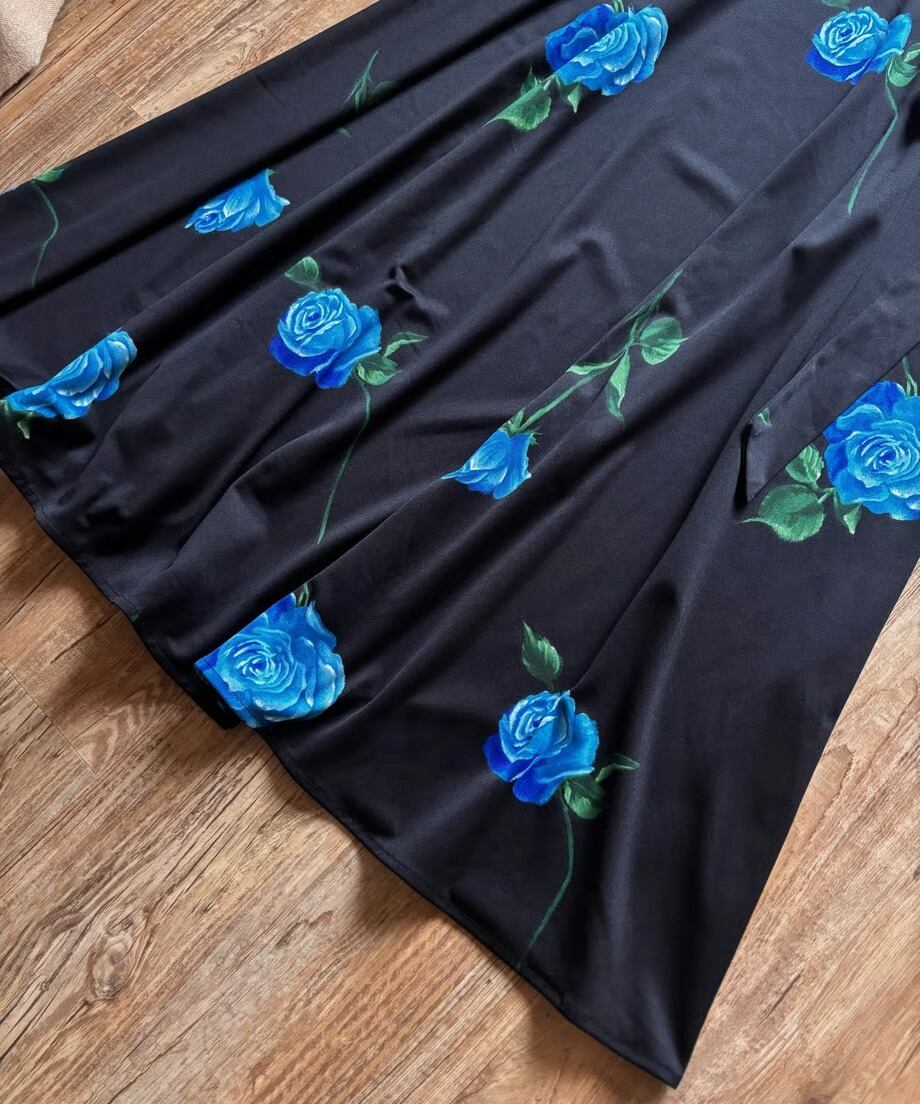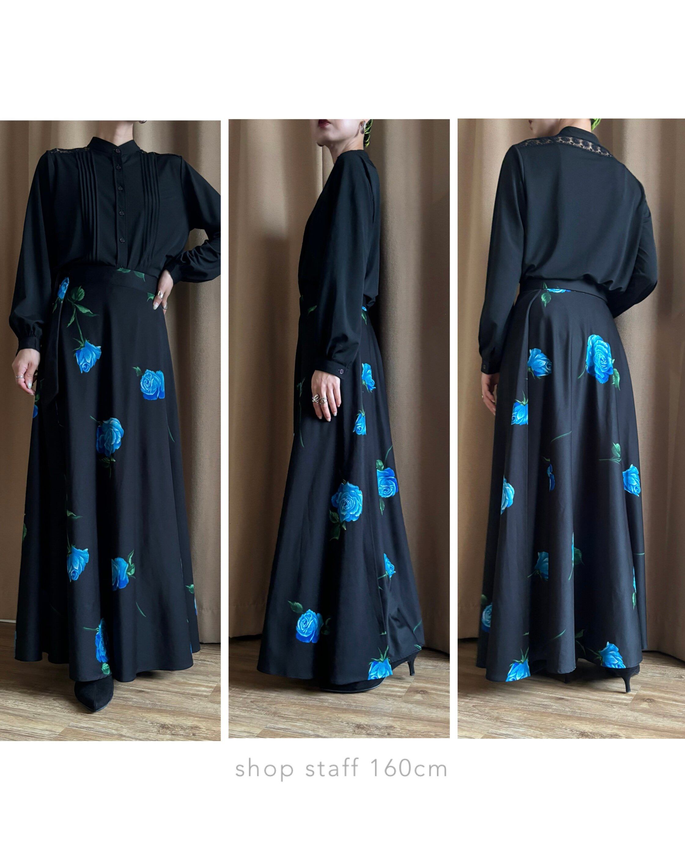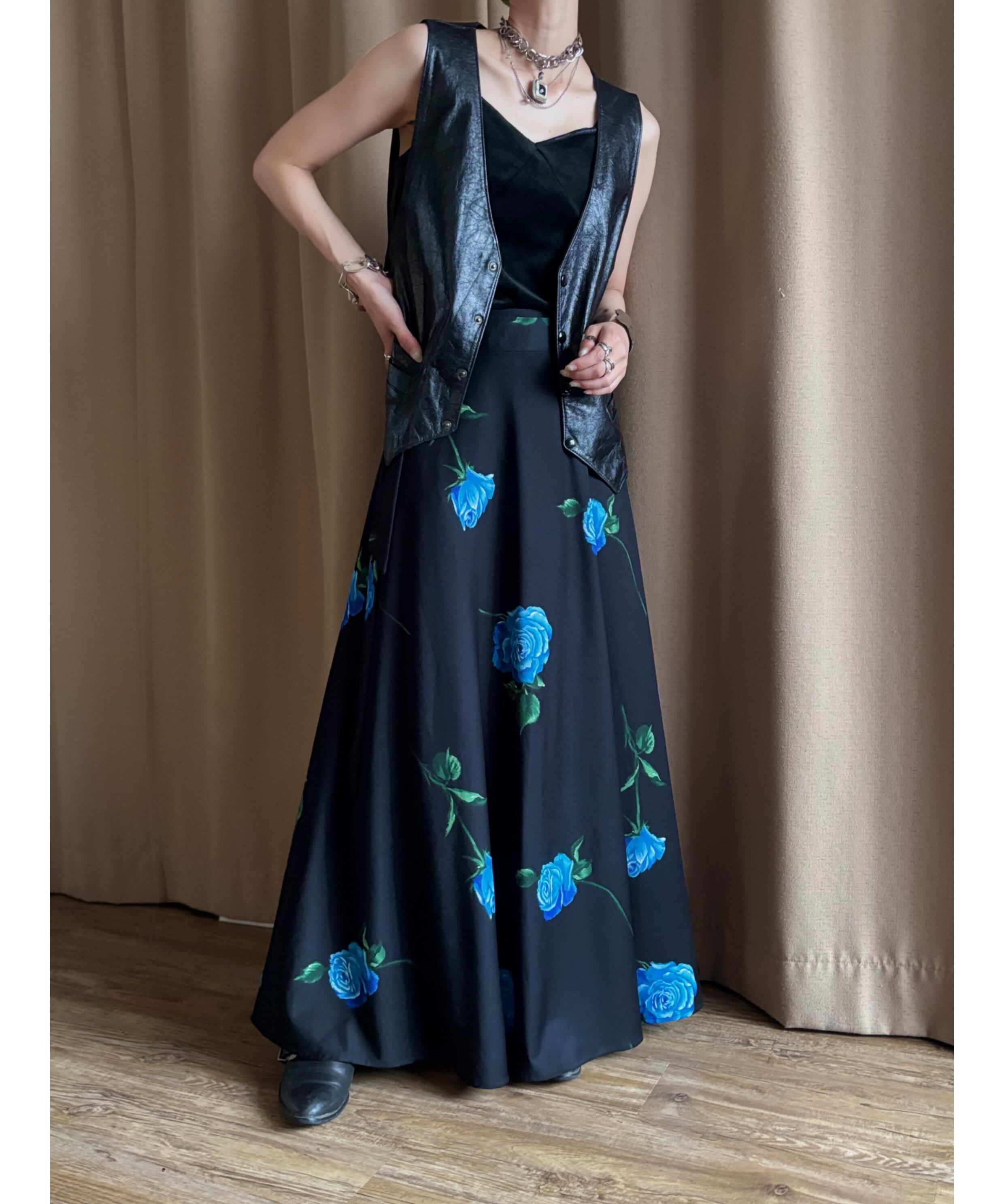 ブルーローズが美しさを物語る日本製マキシスカート。