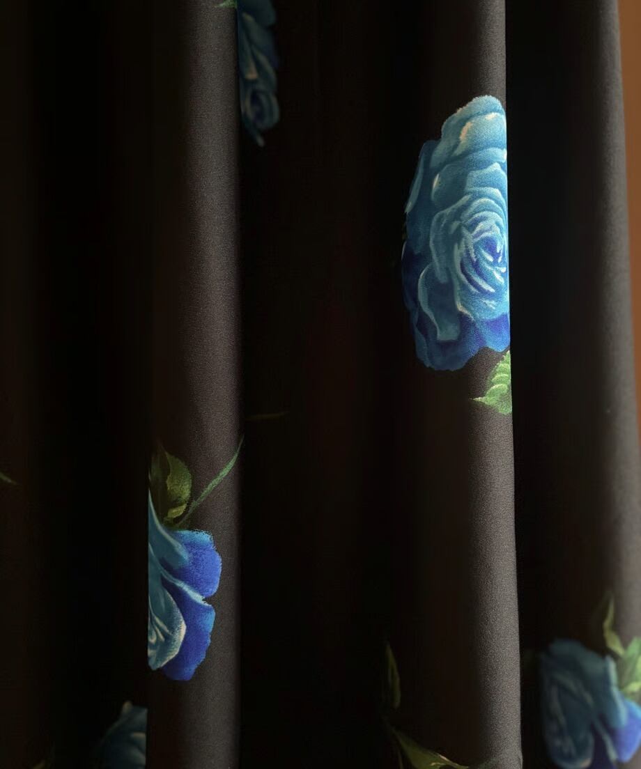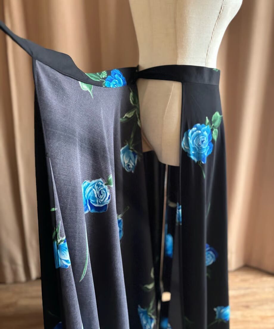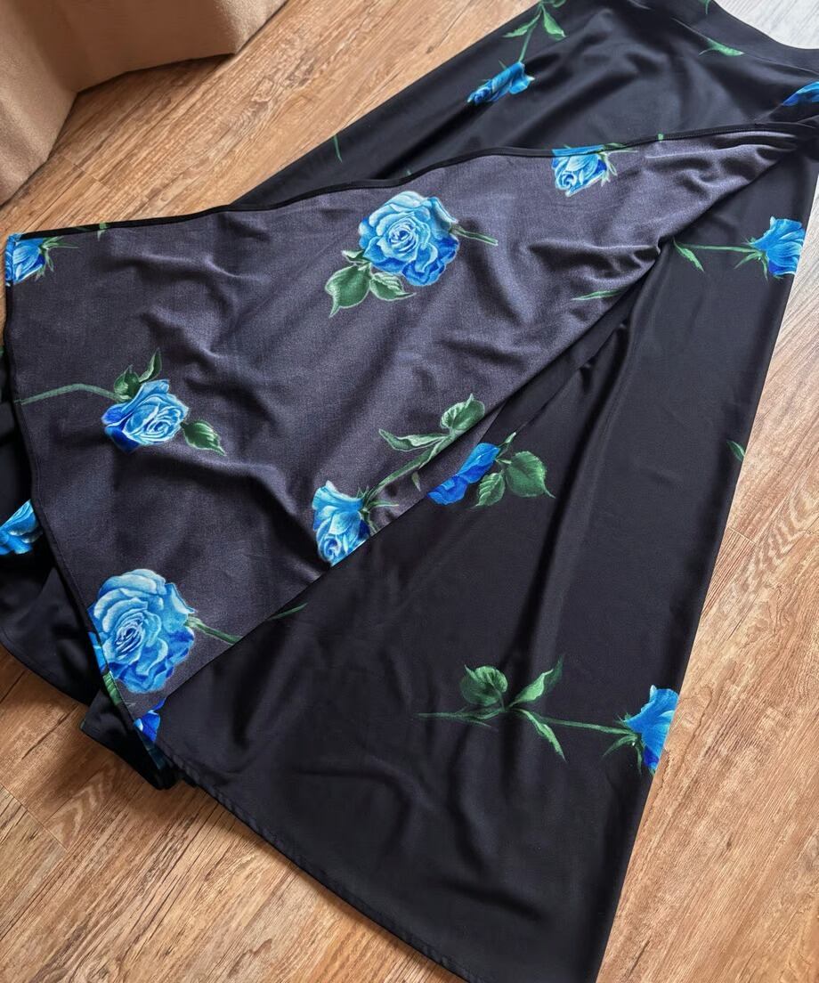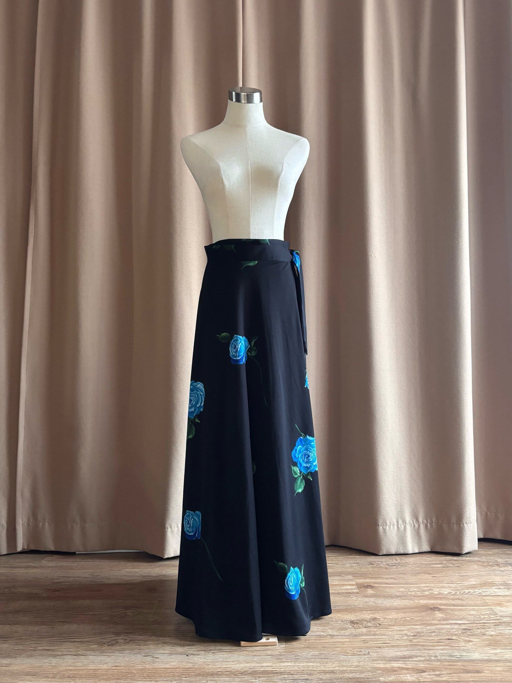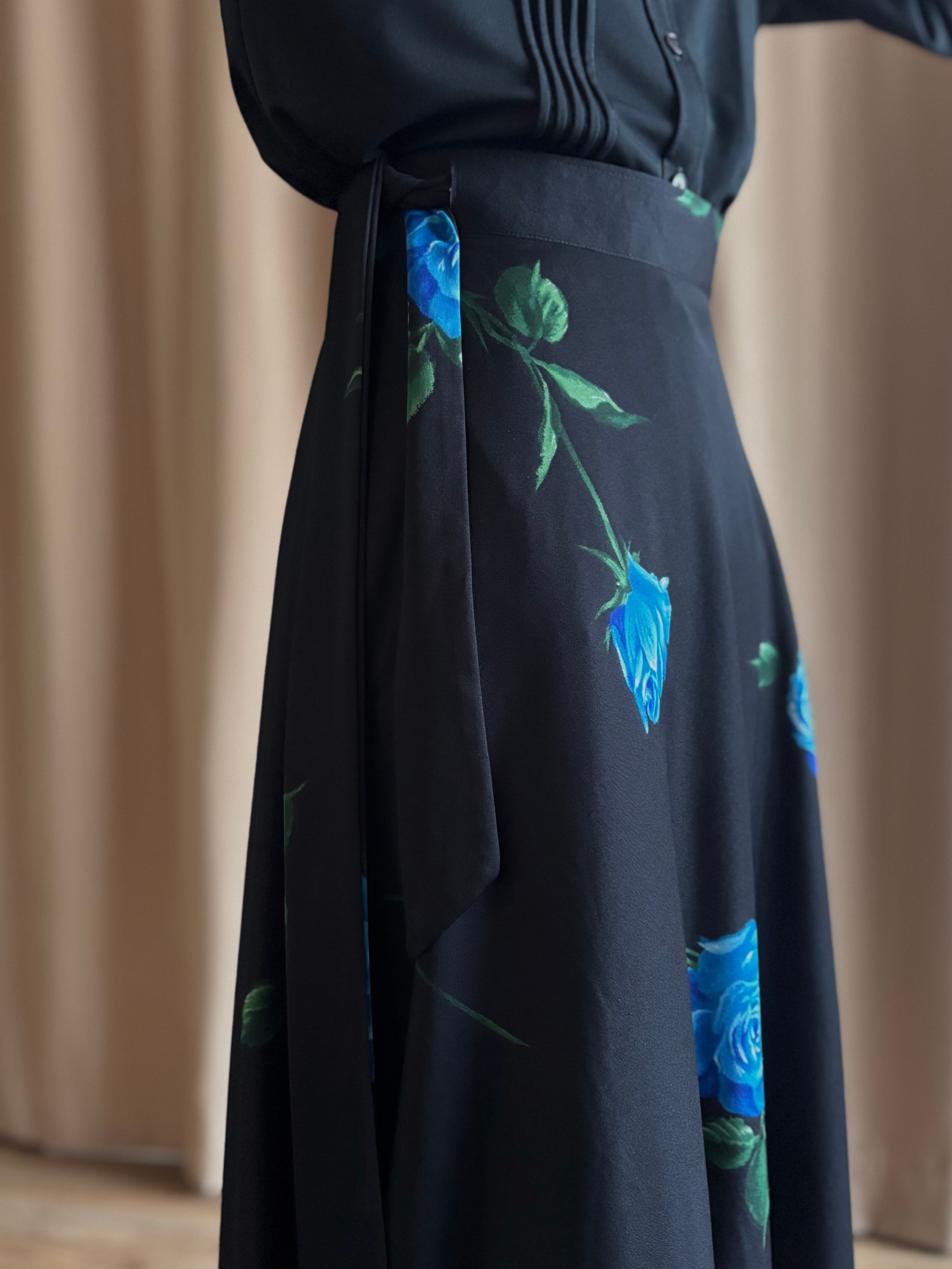 ブルーローズが美しさを物語る日本製マキシスカート。