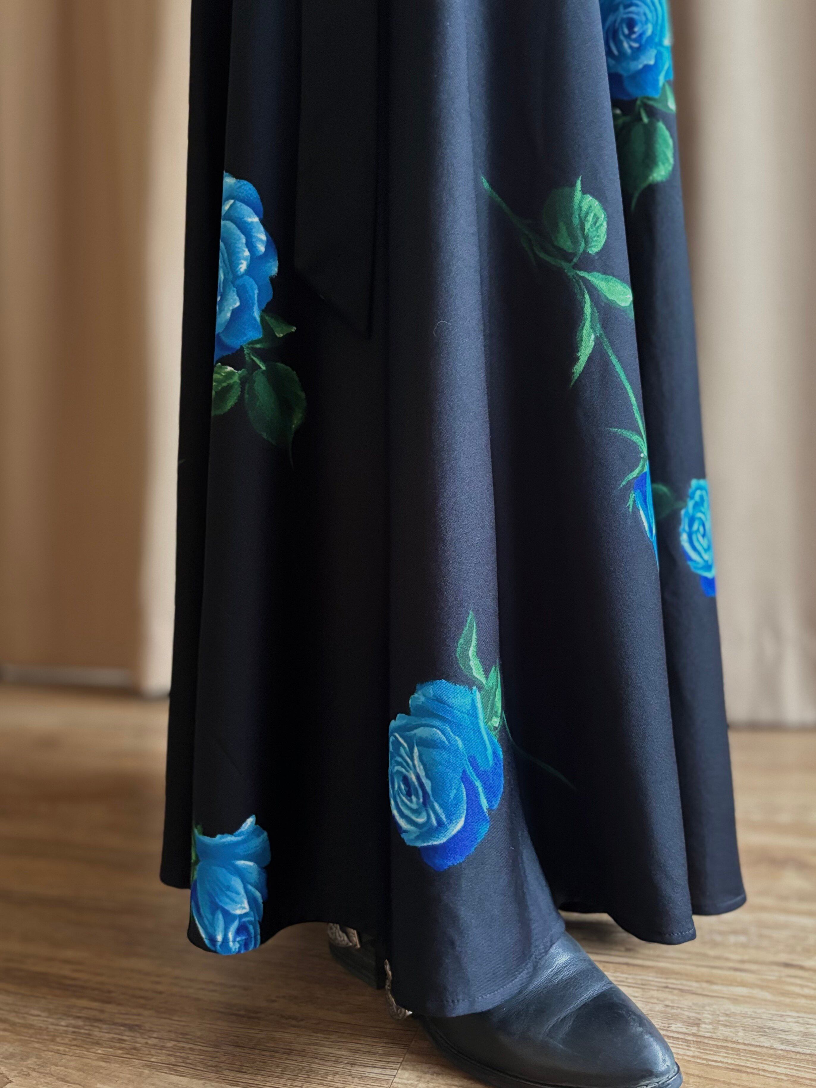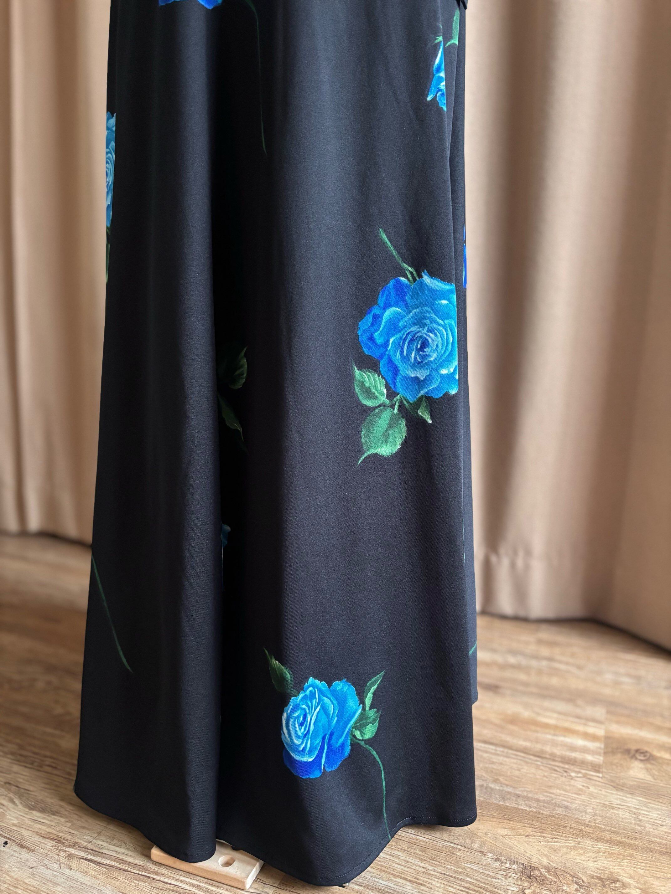 blue rose pattern maxi skirt-4810-7