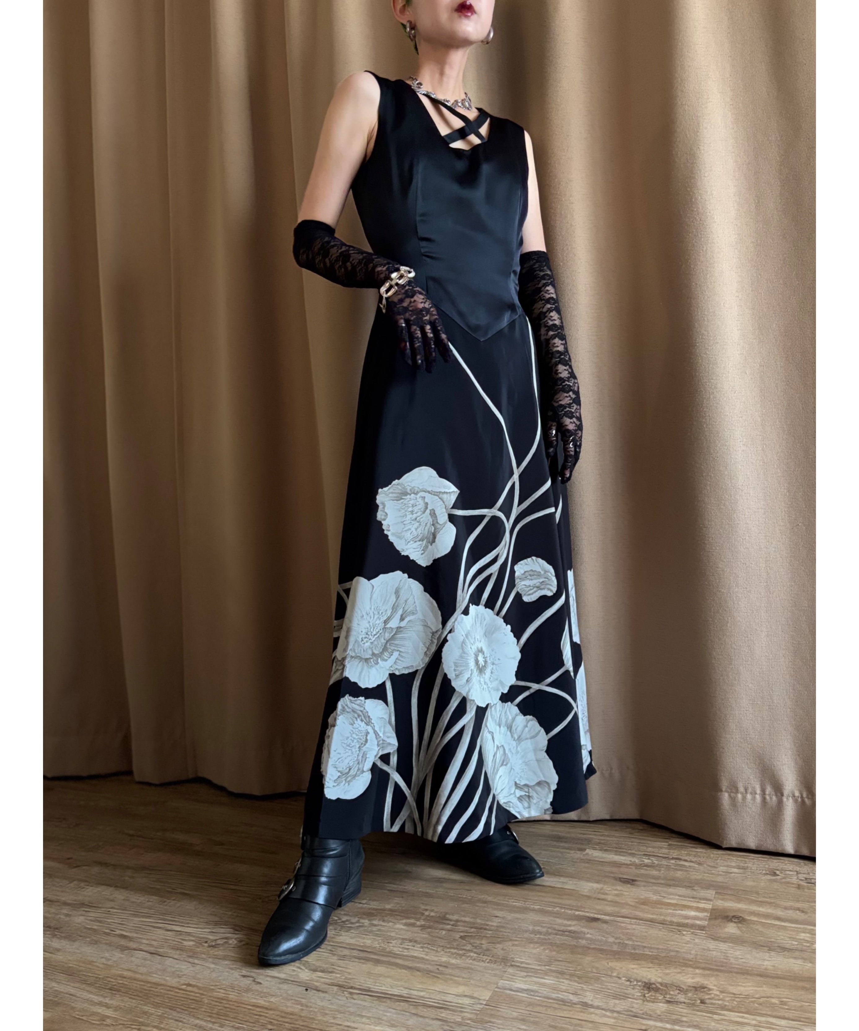 精妙且つ大胆に描かれたフラワー柄が美しさを物語る主役級の存在感。