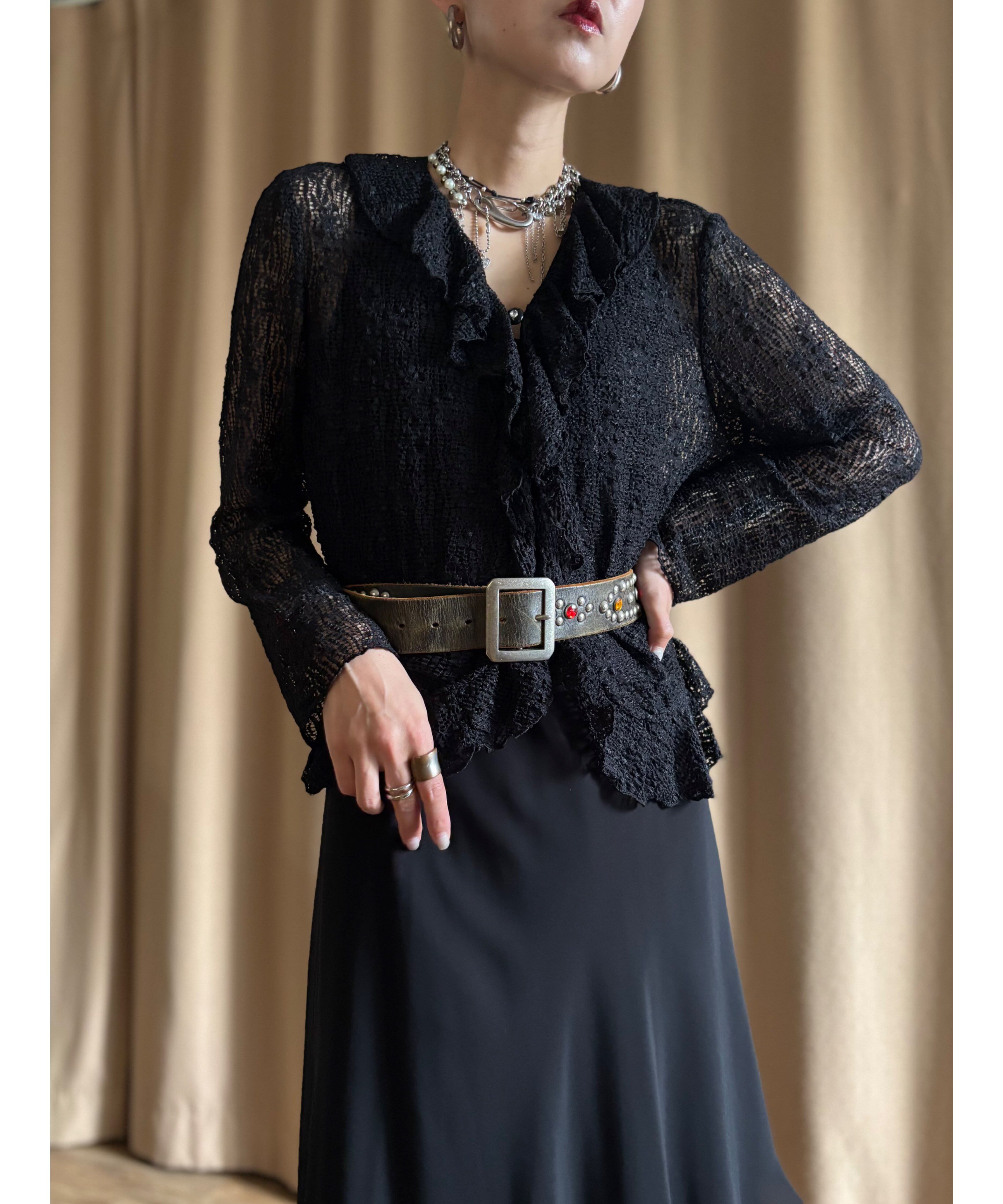 フリルトップスはドライタッチなストレッチ生地で夏の羽織りにもお勧め。