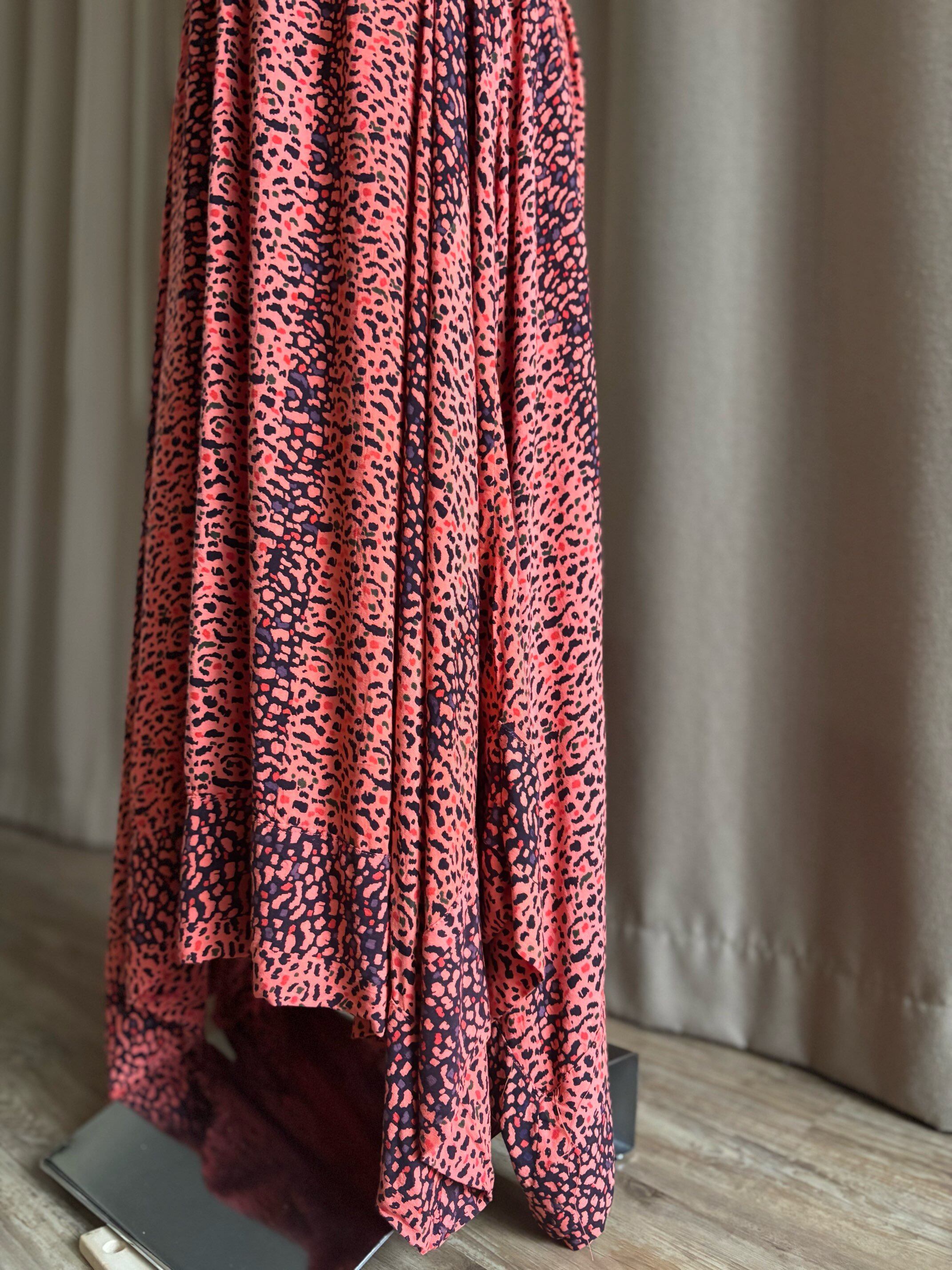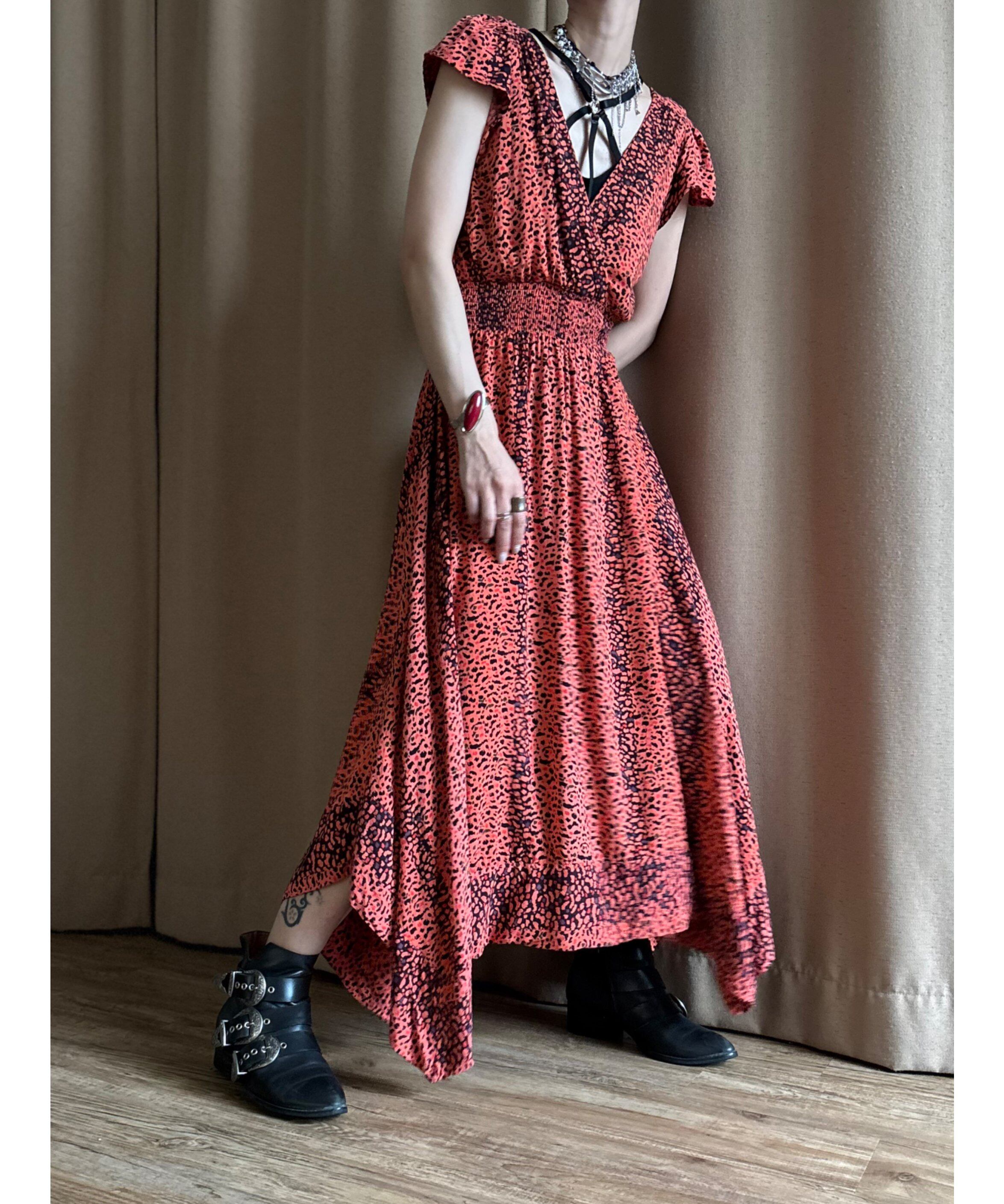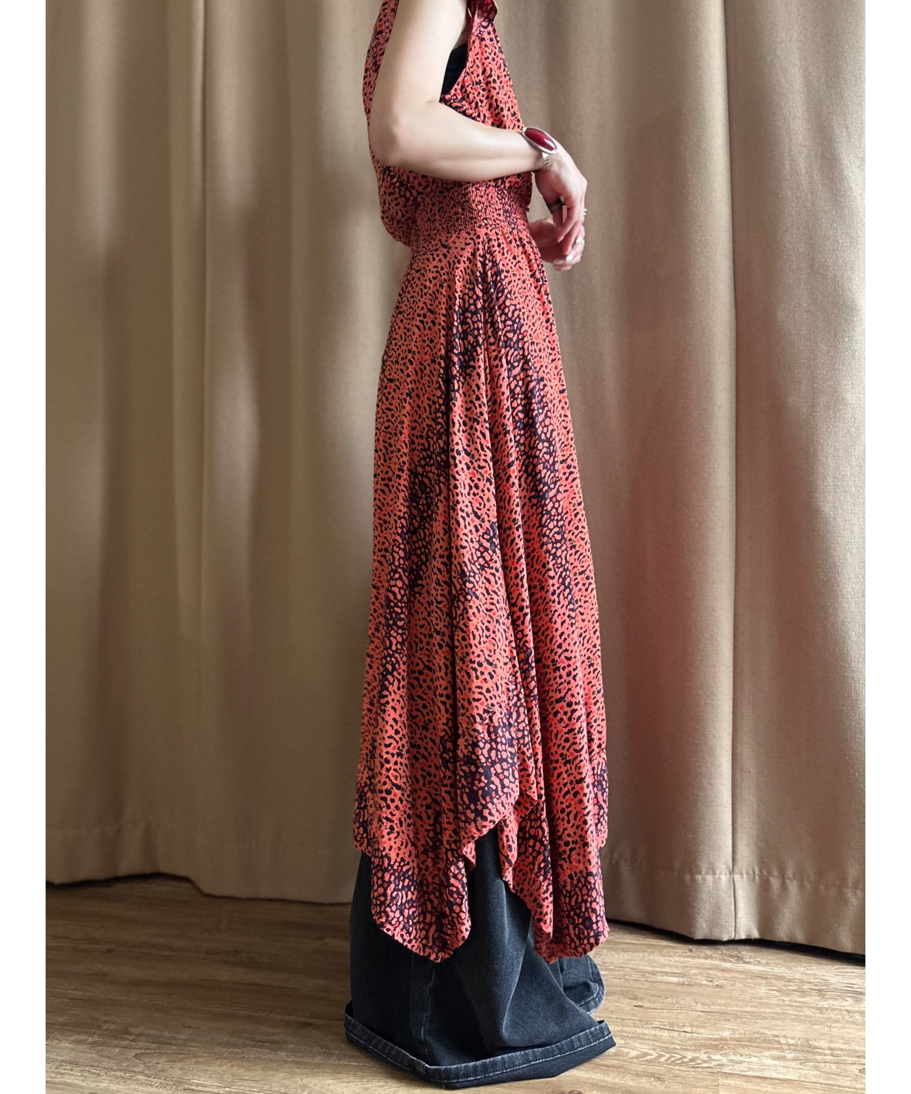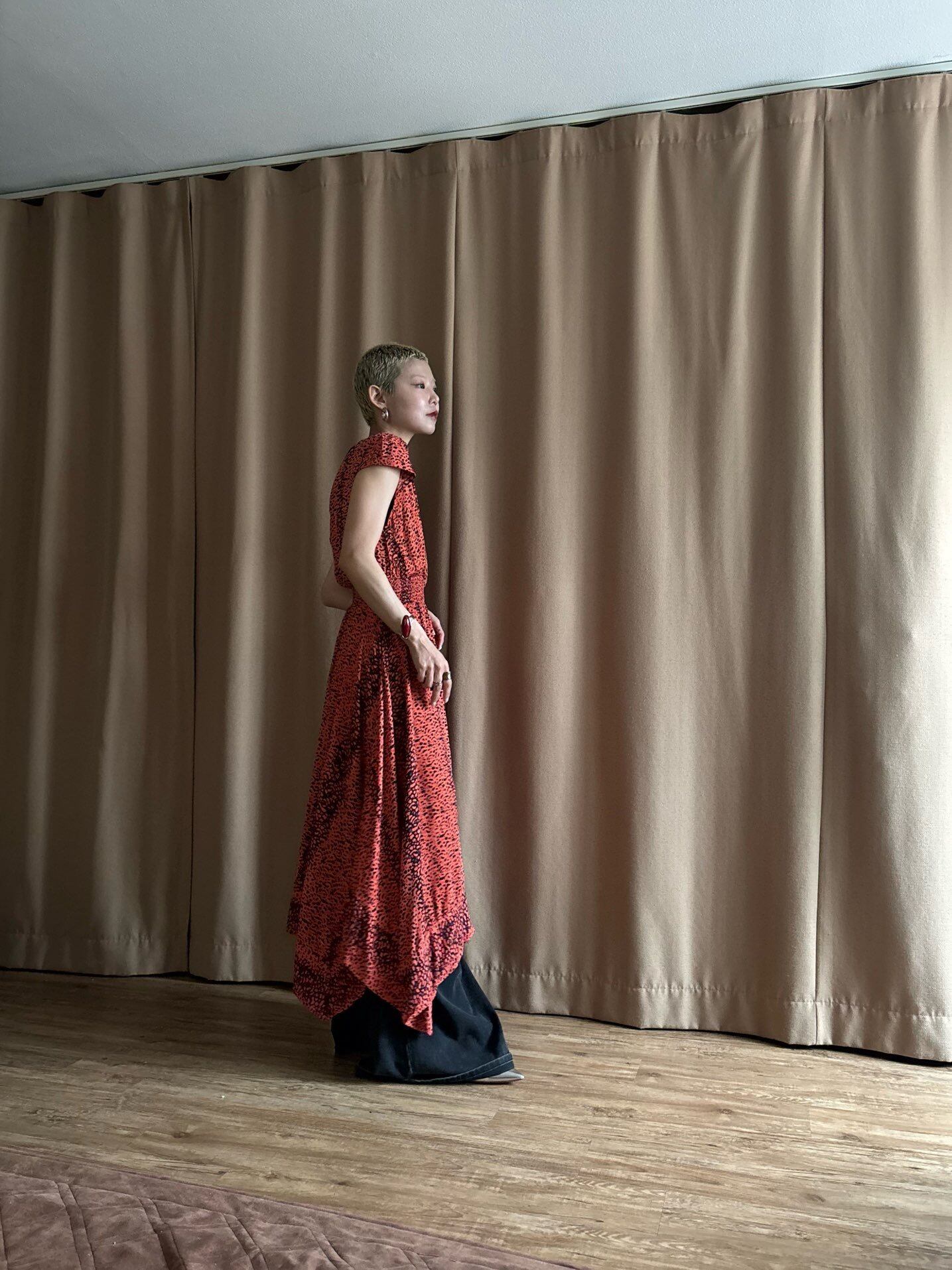 長さの違う裾ラインと、ドレープの陰影が相まった華やぎ溢れる構築的なシルエット。