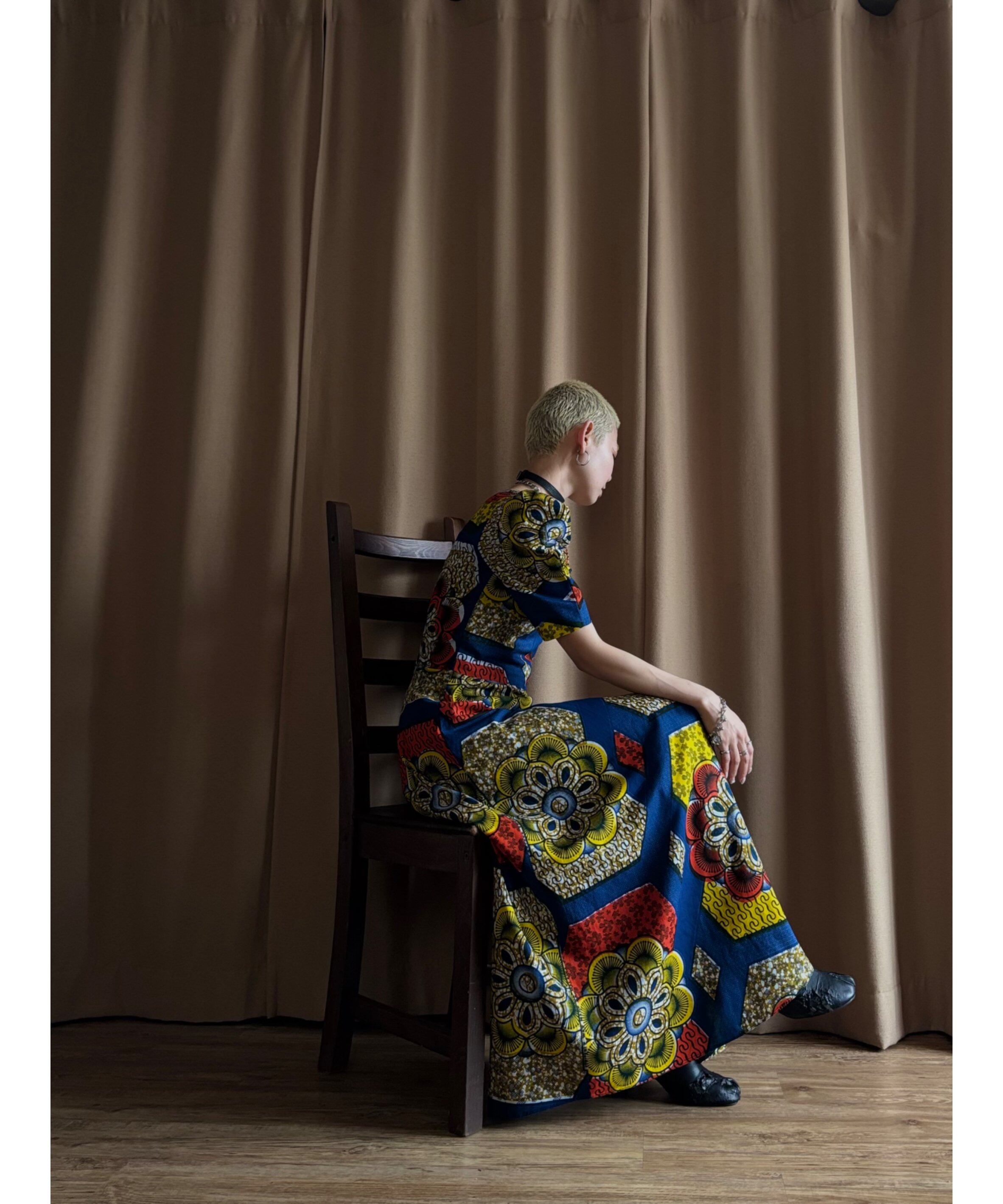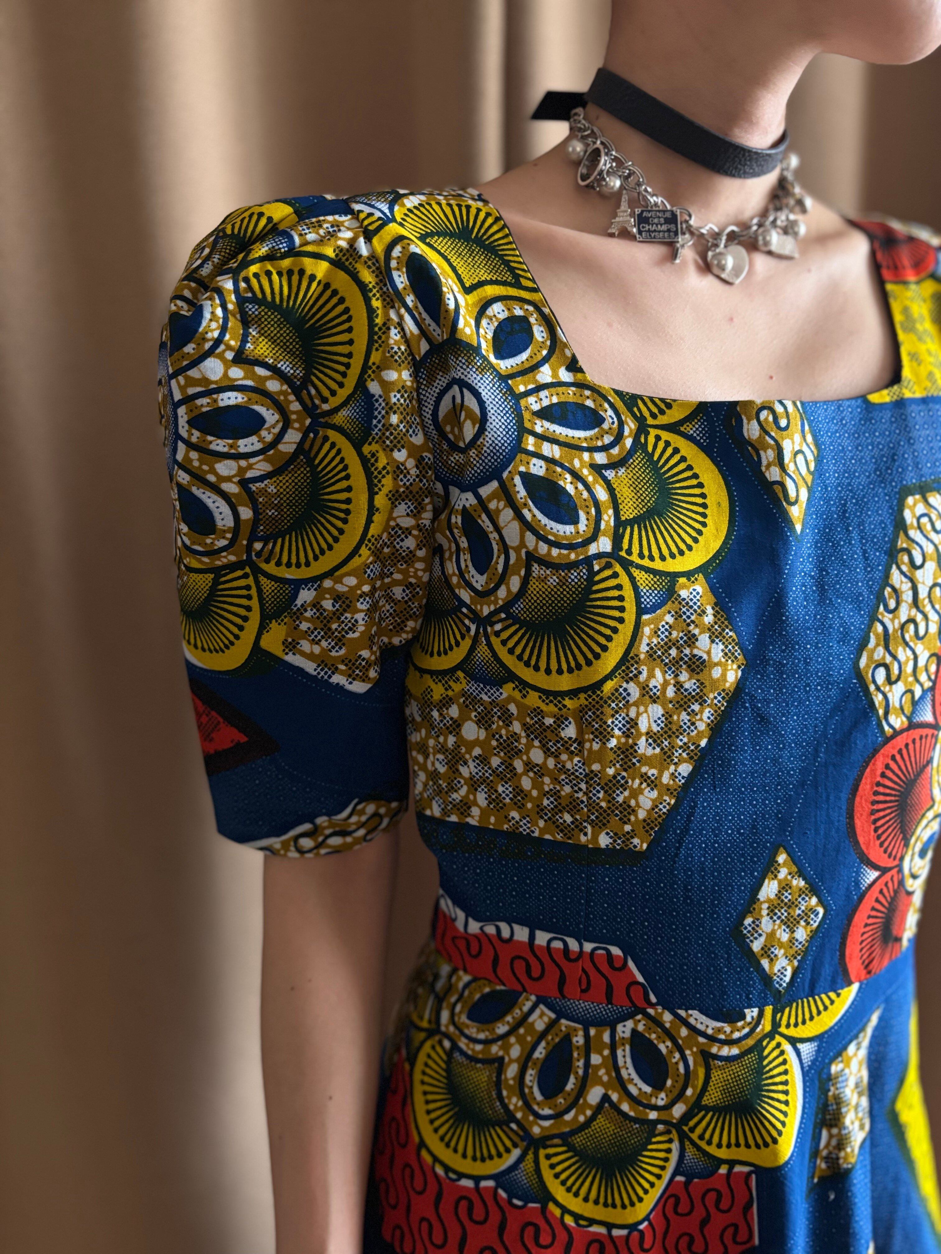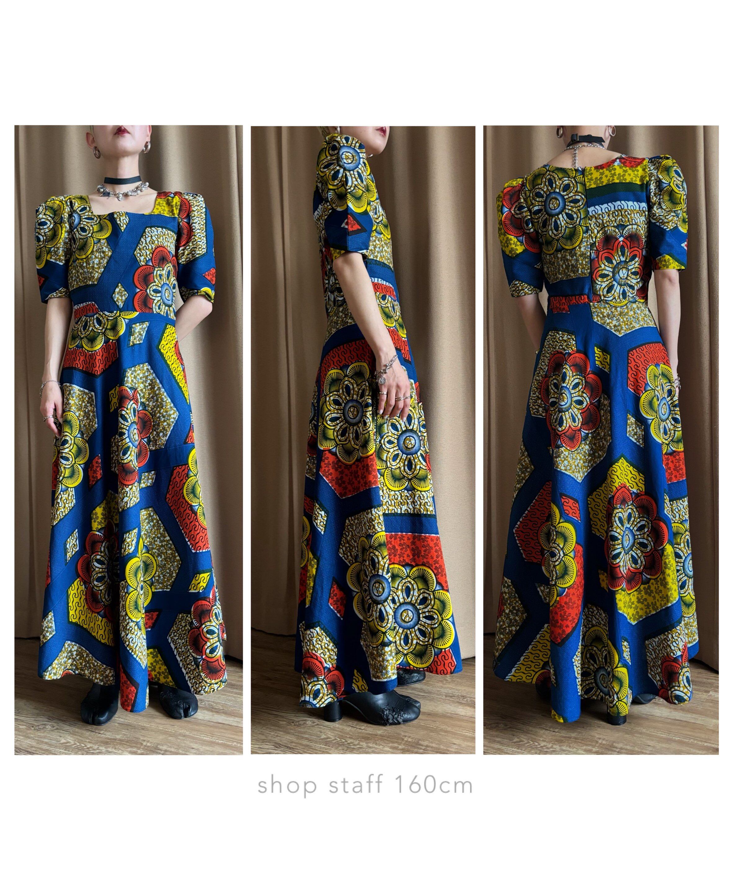 アフリカンバティックならではの大胆なカラーリングとプリントデザインがインパクト抜群な主役級ワンピース。