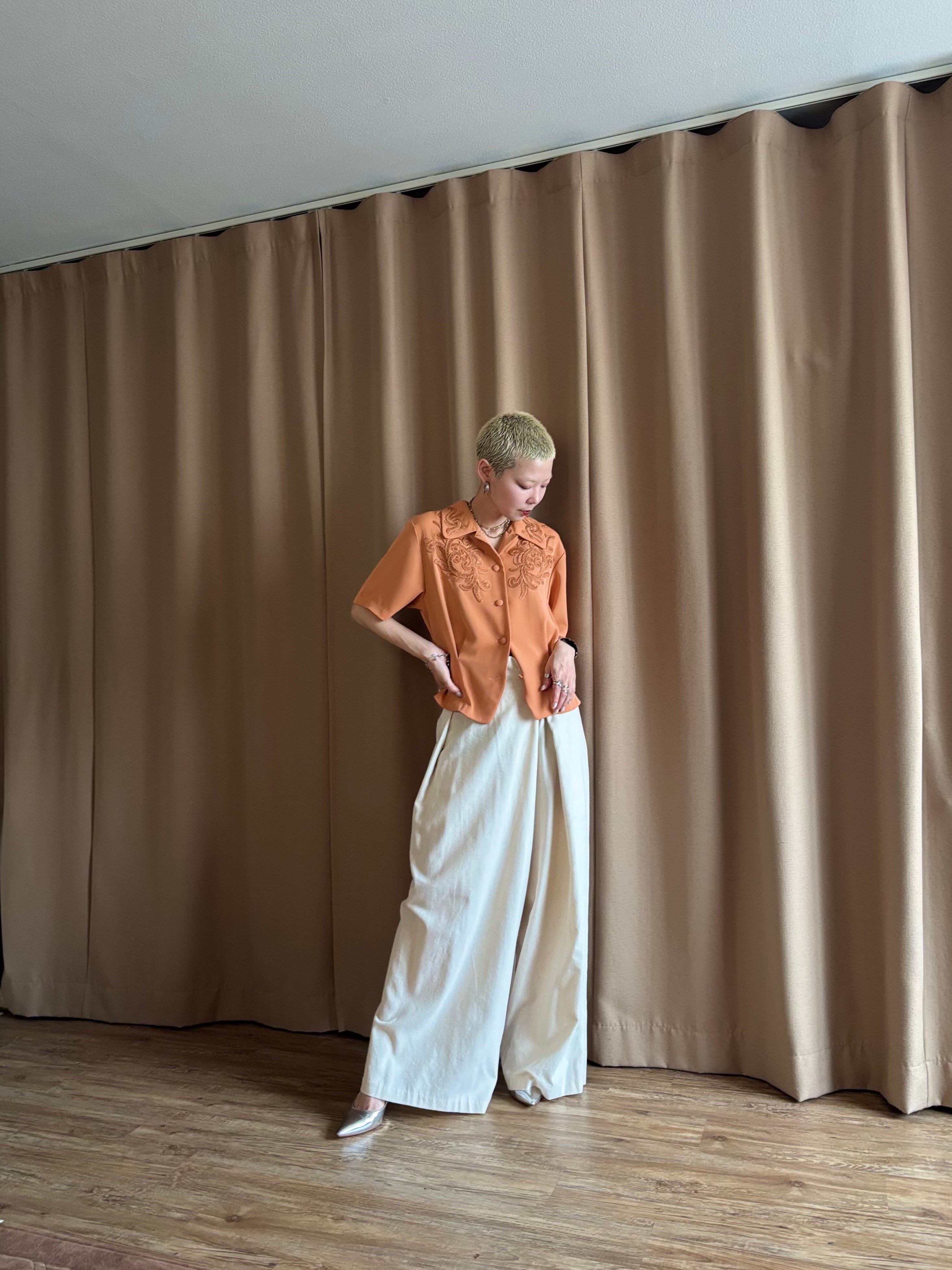 大胆な刺繍ポイントが美しさを物語る主役級シャツ。