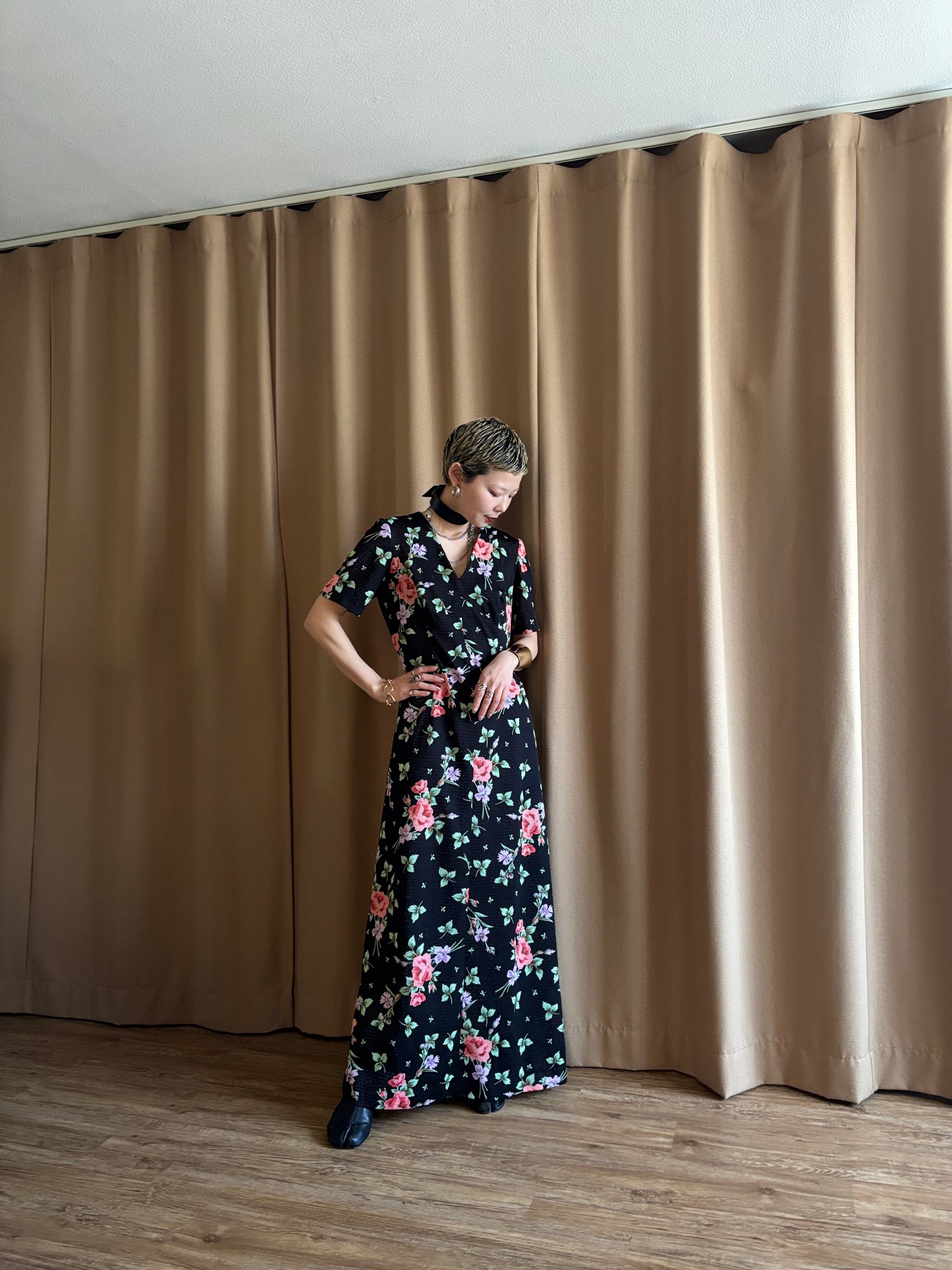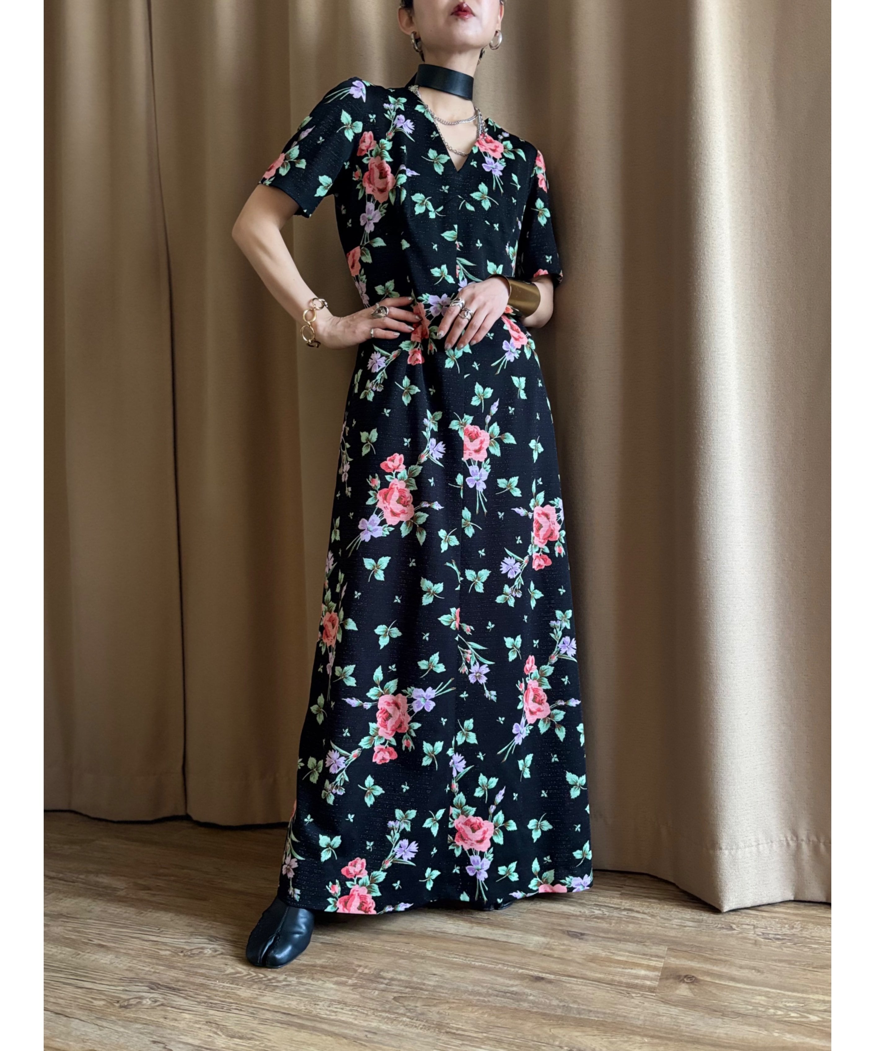 ヴィンテージライクなフラワー柄が目を惹くインポートワンピース。