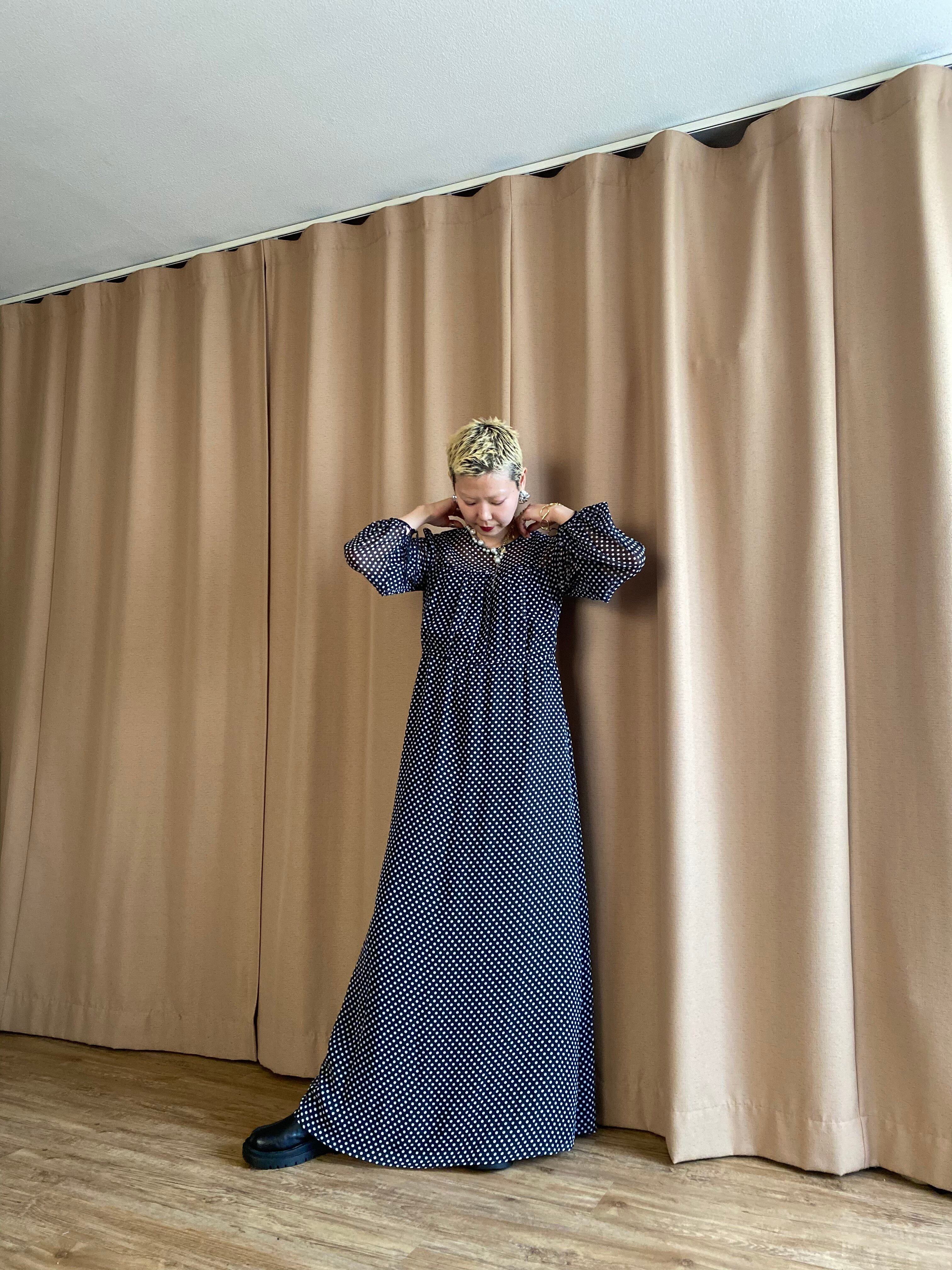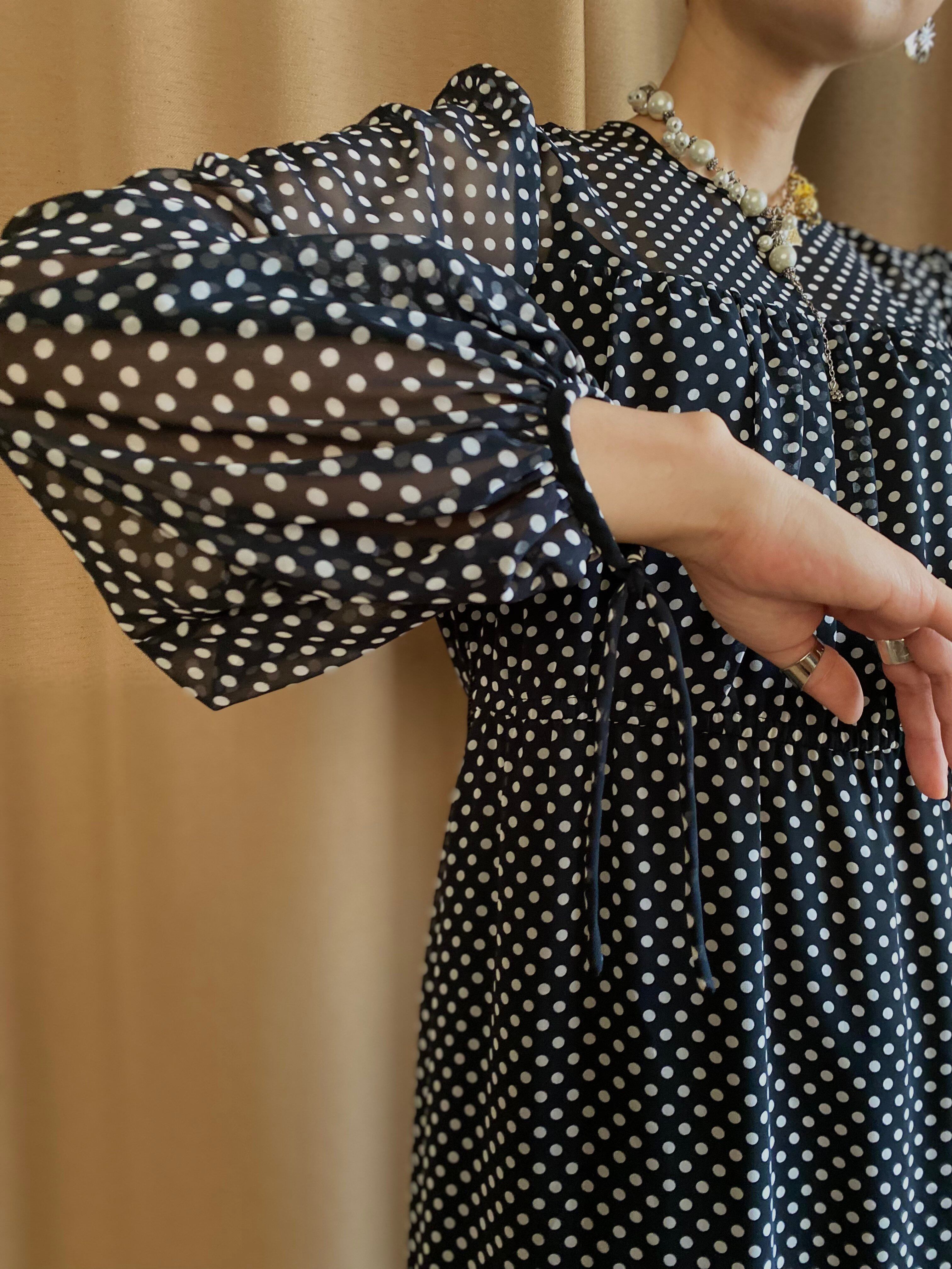 レトロなドット柄が目を惹く日本製ワンピース。