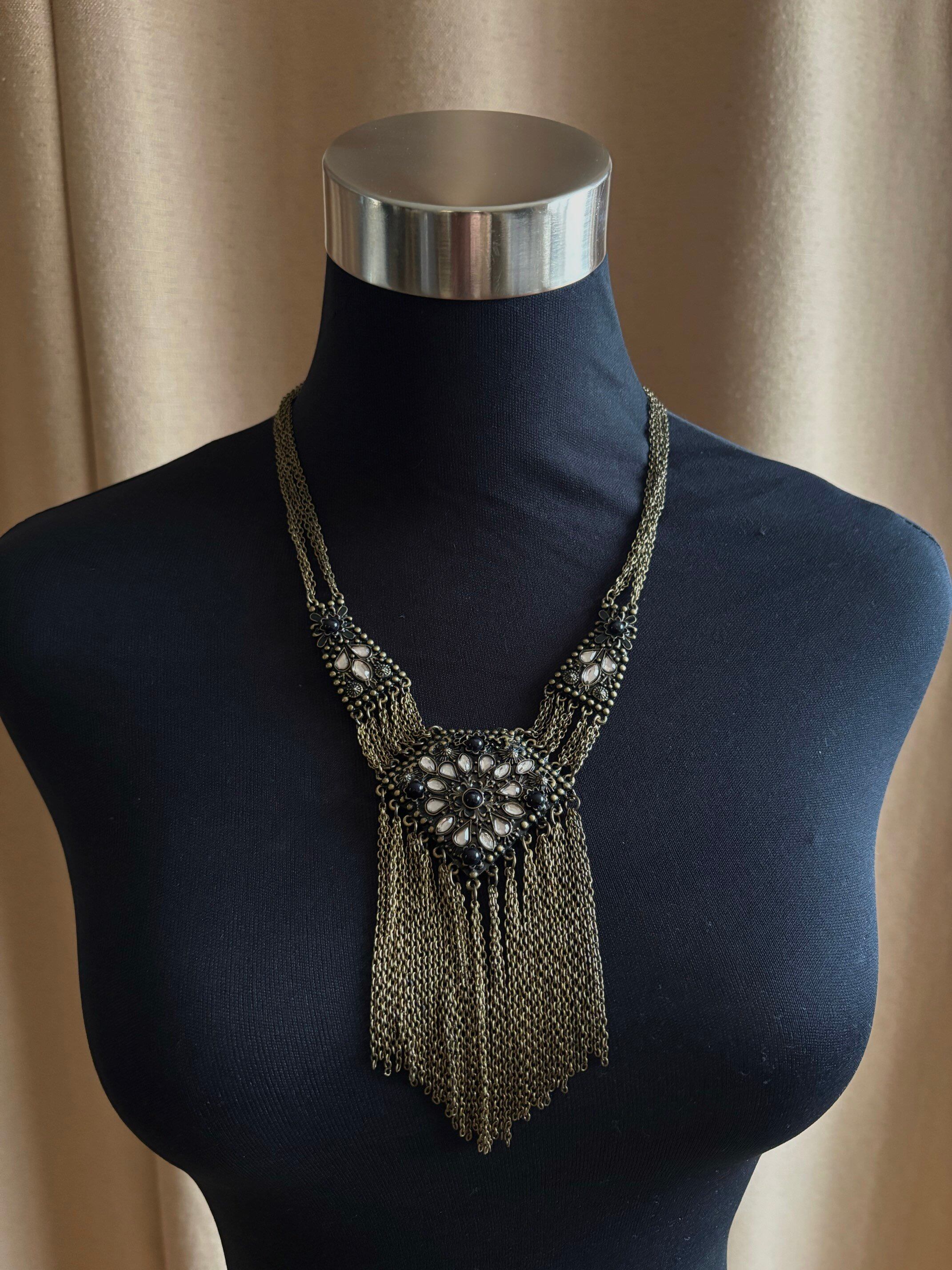 何気ない装いにプラスするだけで大人なヴィンテージスタイルに仕上がるエスニックチェーンネックレス。
