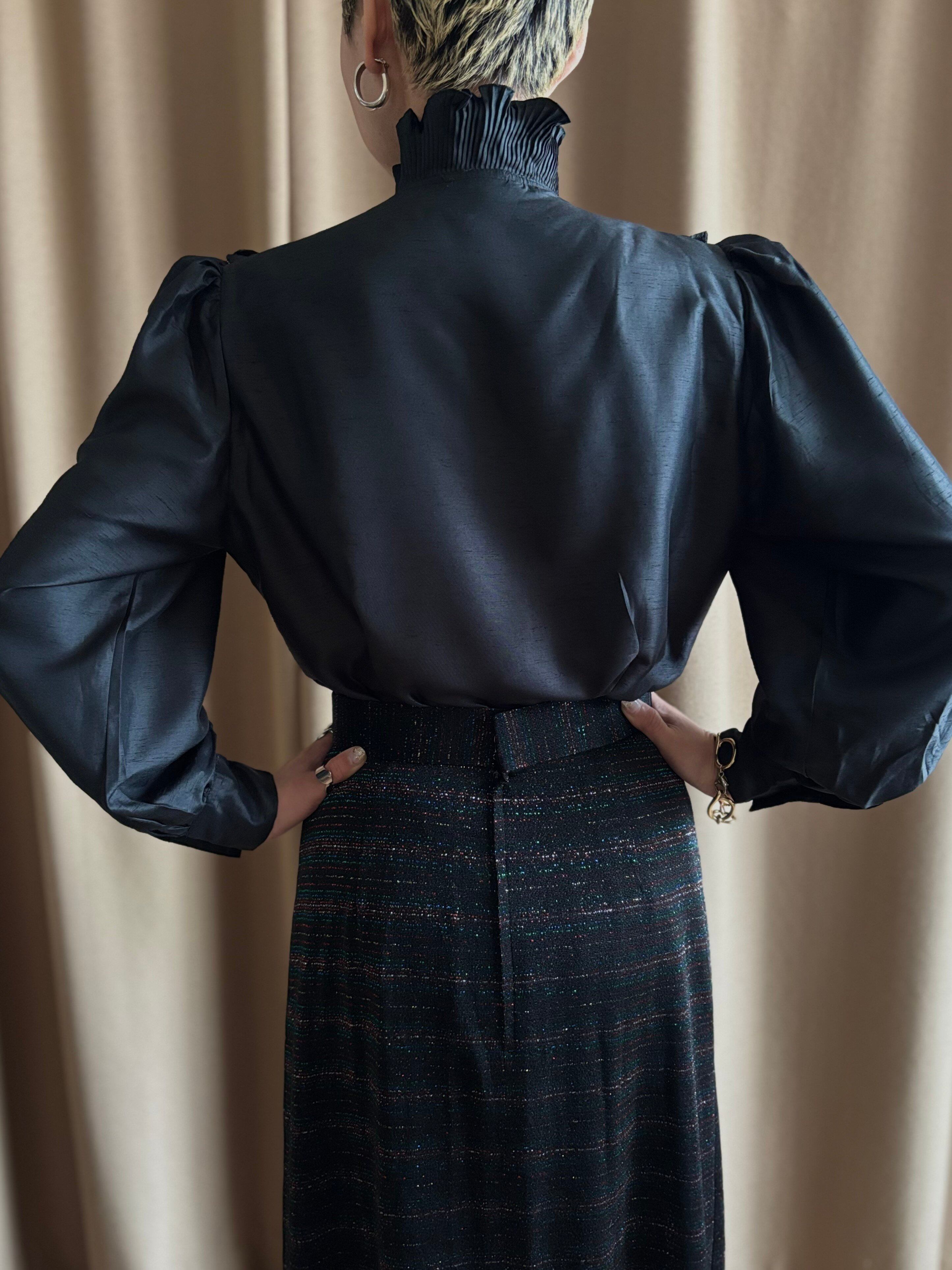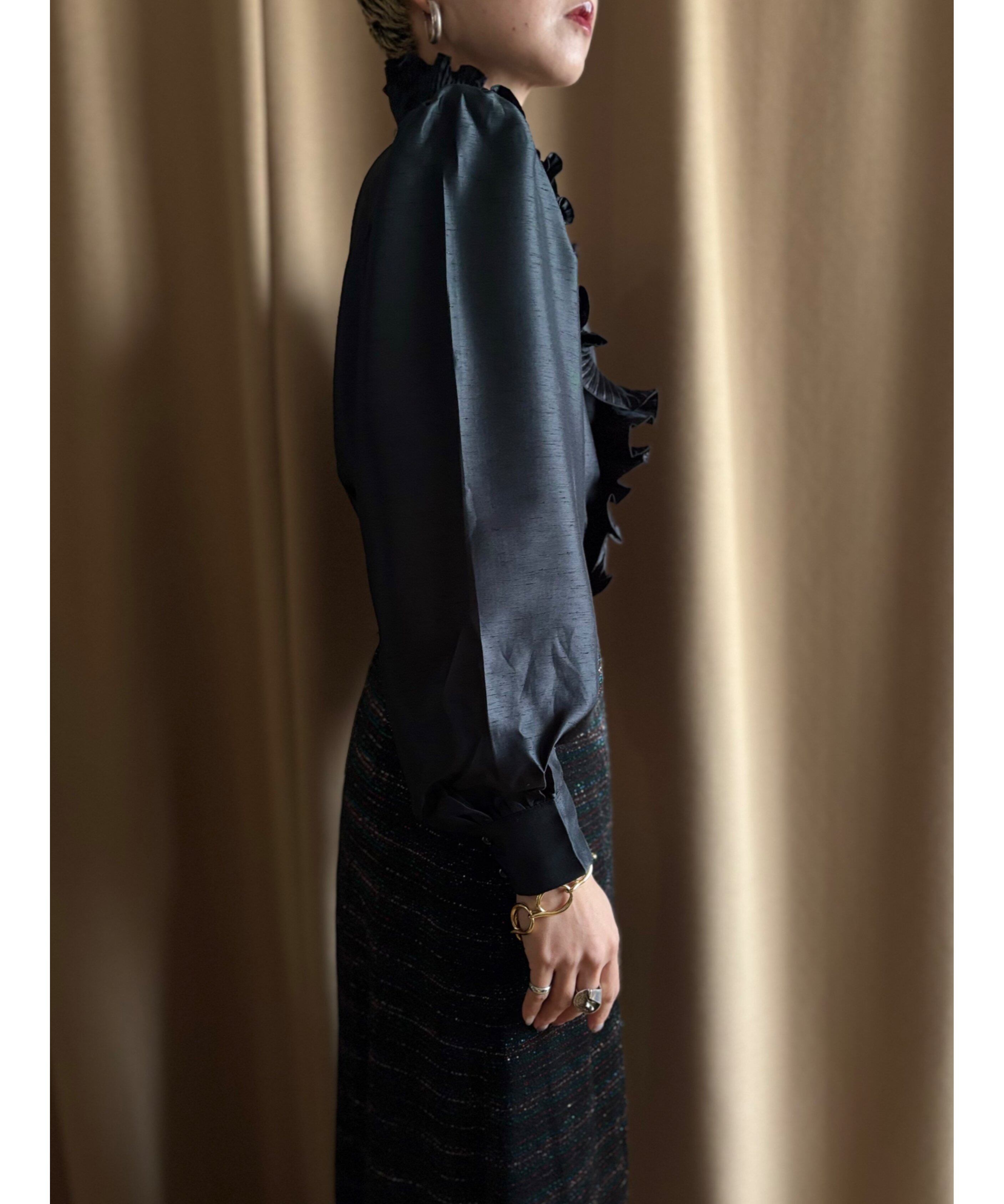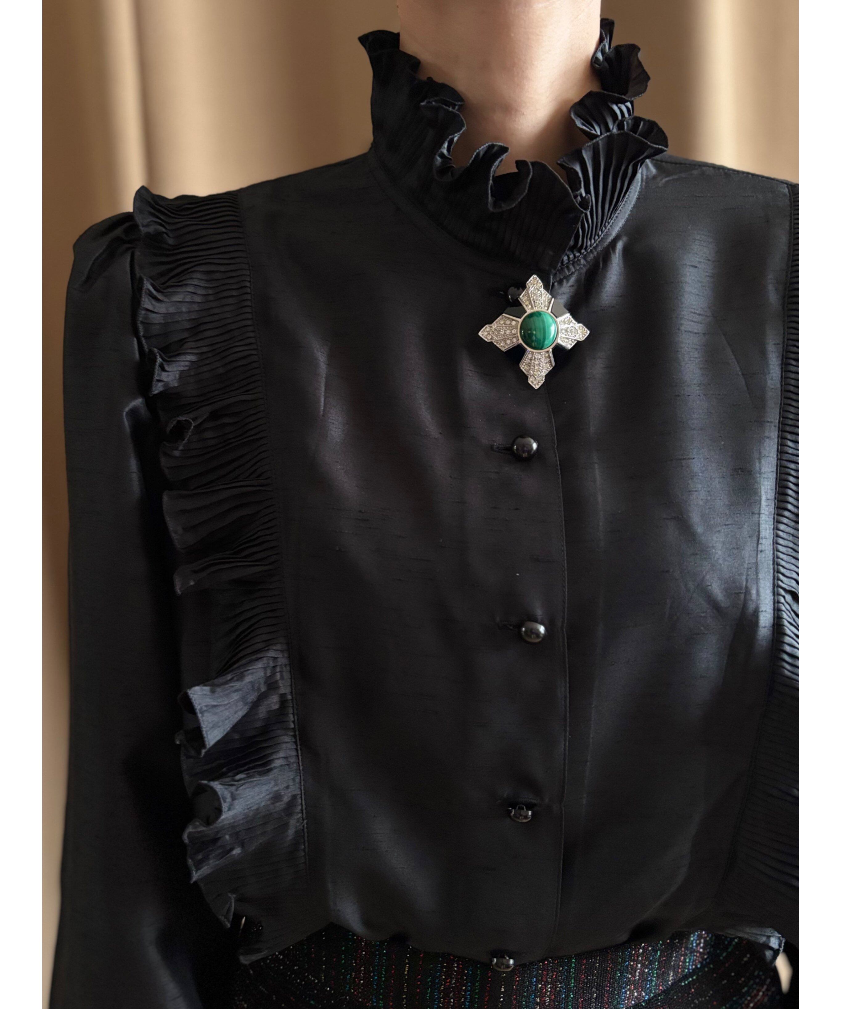 mode black frill shirt-4620-4【ブローチ付属商品】