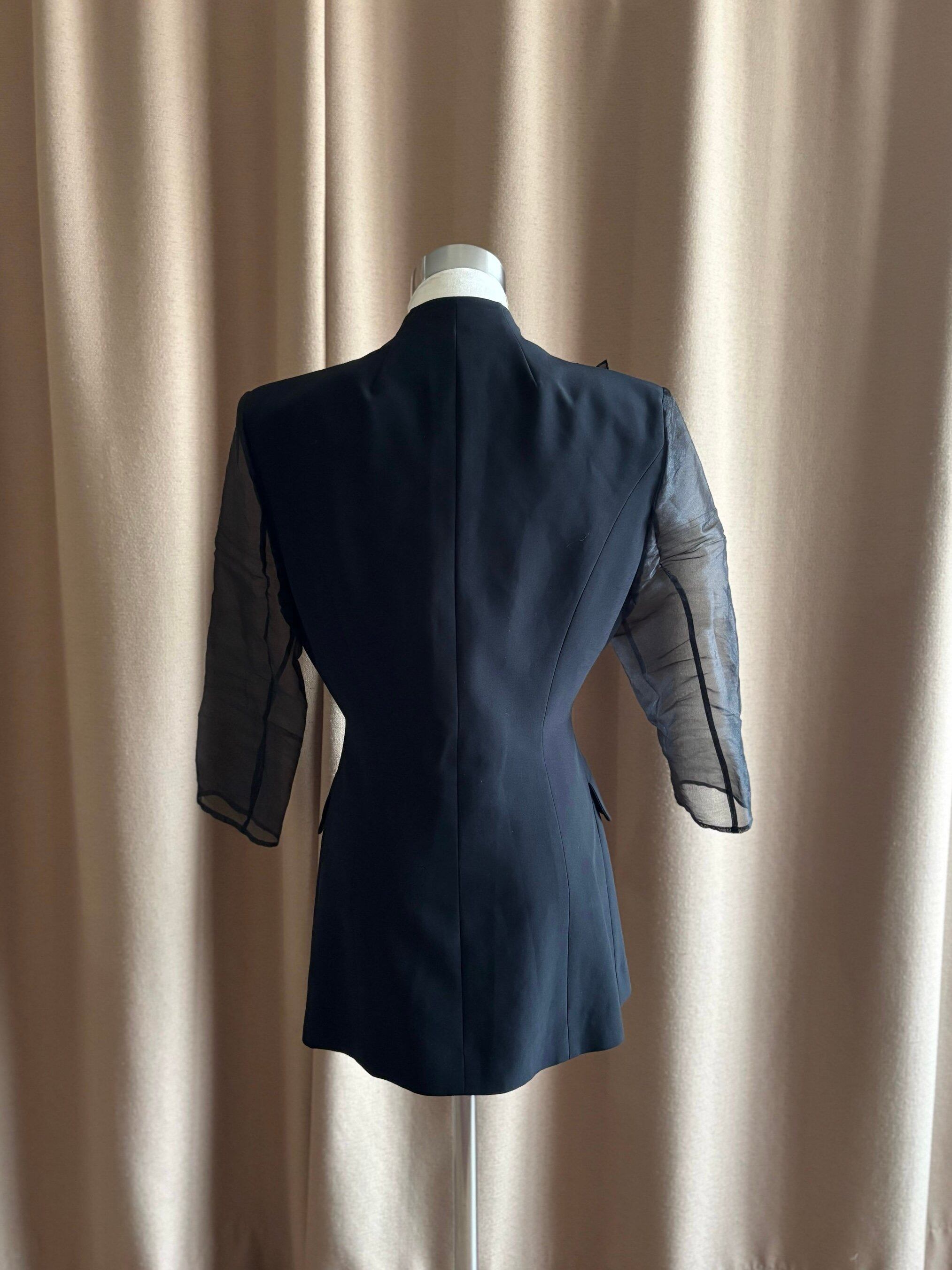 モードさ引き立つパワーショルダーやウエストラインに沿った細身シルエットなど、計算尽くされた美しいパターンが目を惹く拘りの一着。
