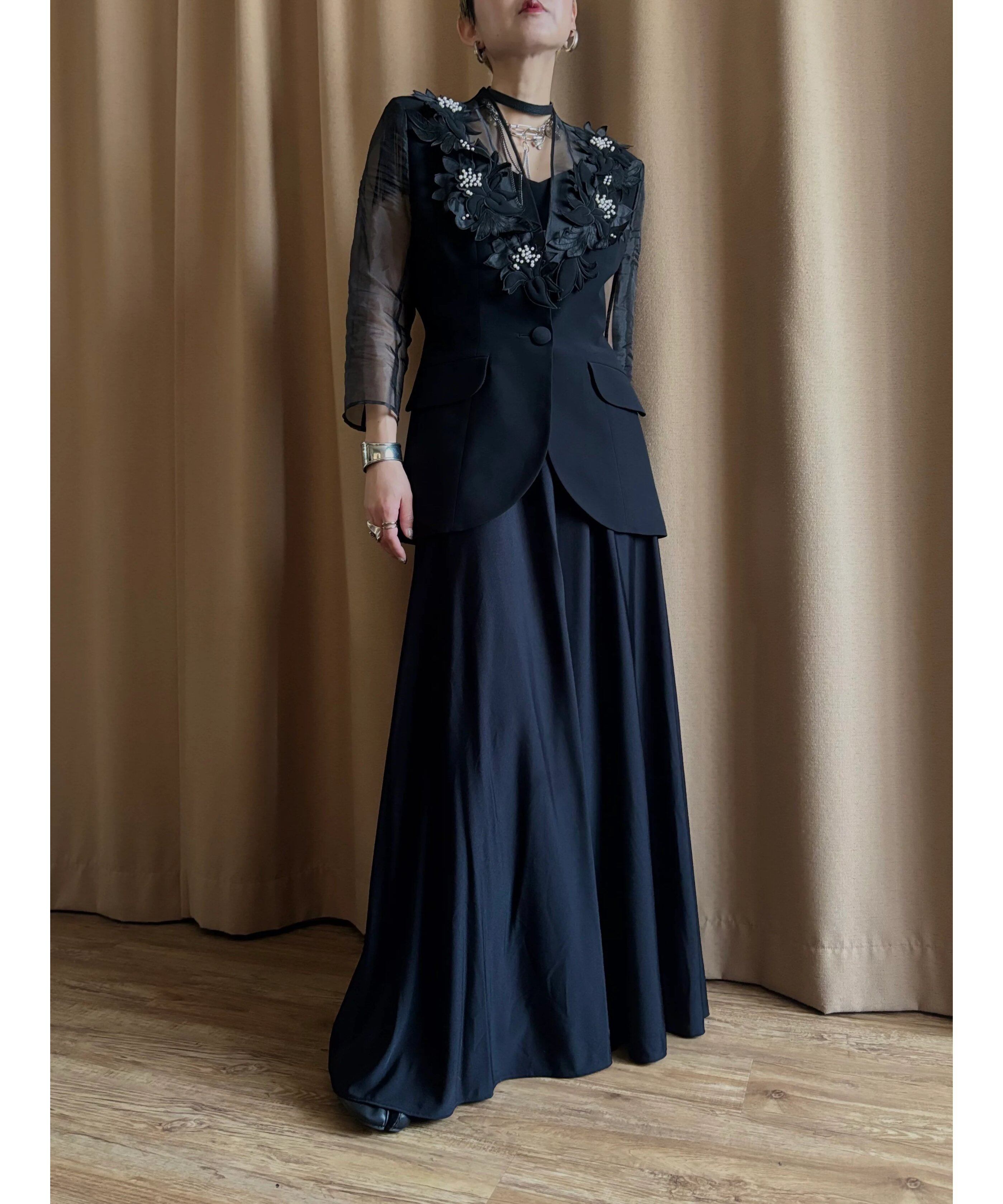 3D flower motif black jacket-4612-4