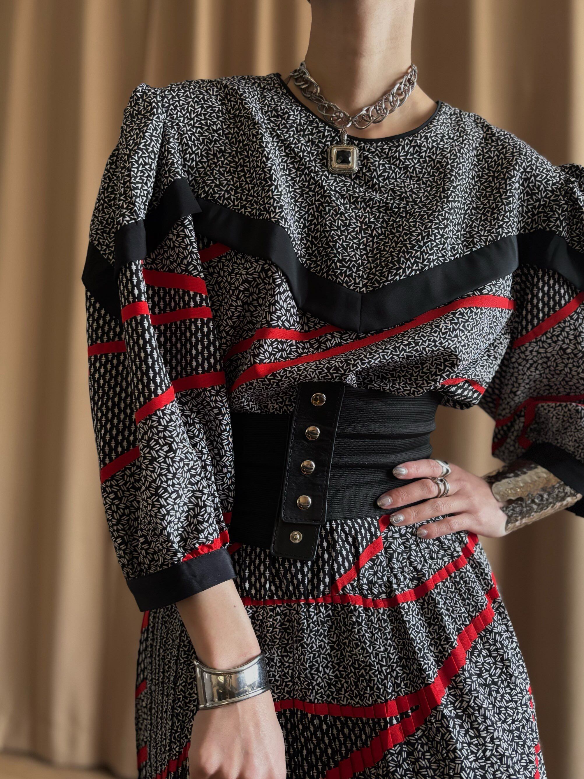 シックなモノトーンに赤のラインが際立つレトロモードなデザイン。