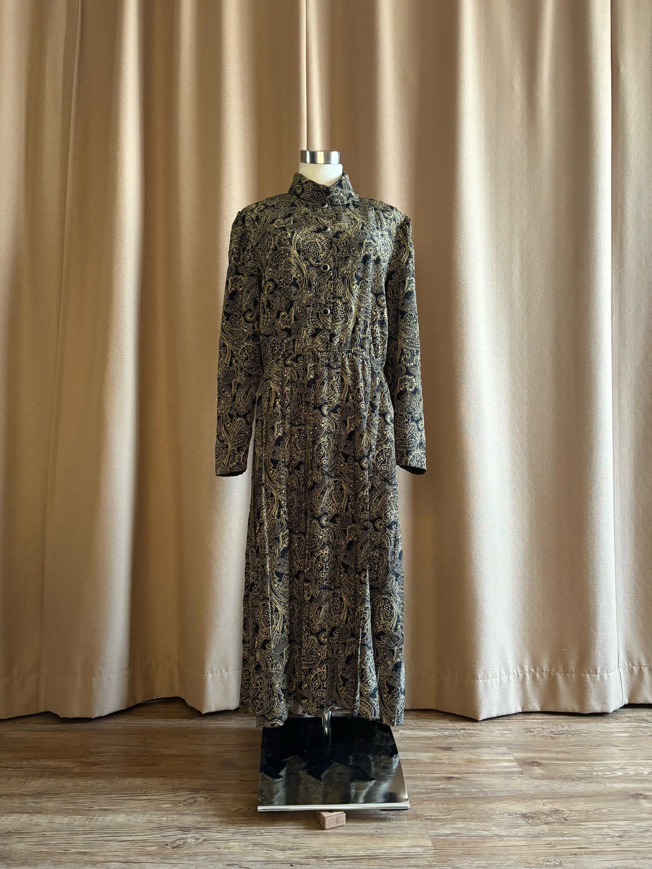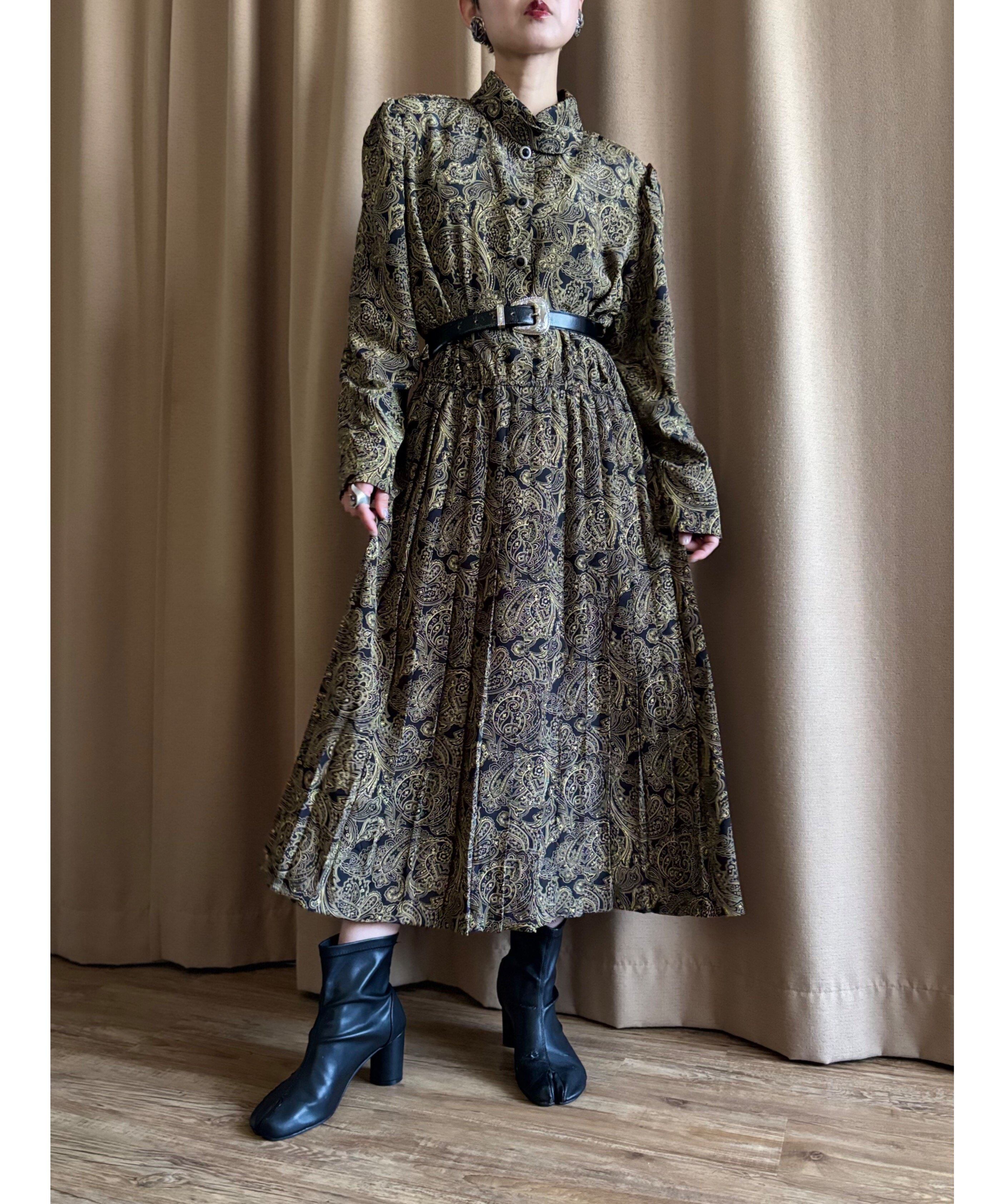 全面にデザインプリントされたペーズリー柄が存在感を放つインポートワンピース。