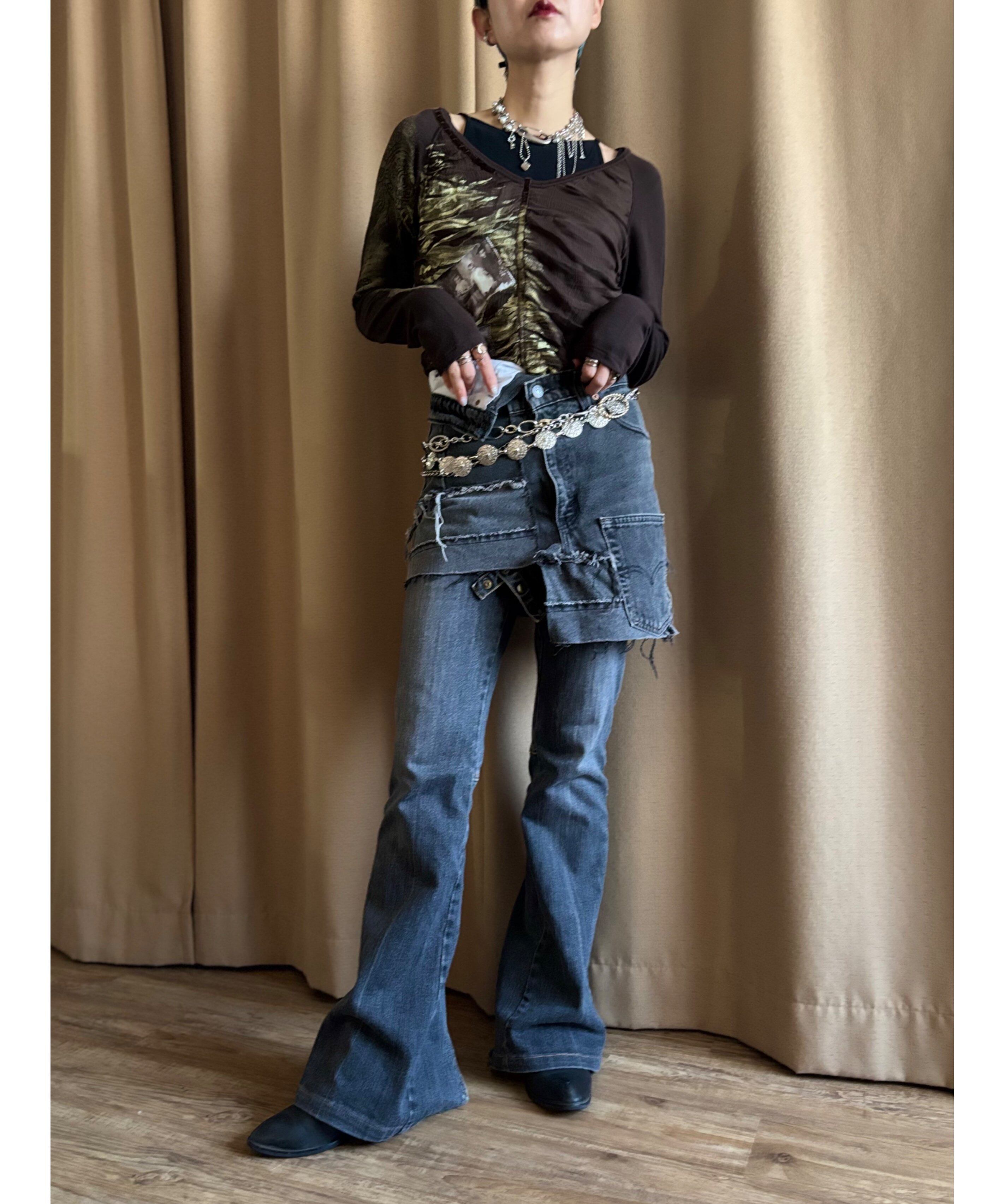 着画でコーディネートしているリメイクデニムスカートも販売商品です。