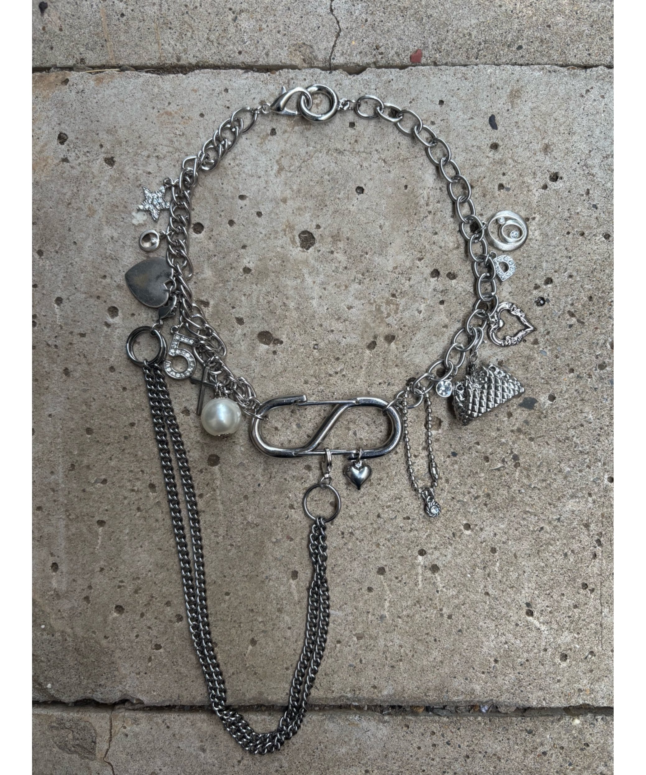 様々なモチーフのヴィンテージチャームに、ビッグパールやストーンの輝きでラグジュアリーさをプラスした拘りのディテール。