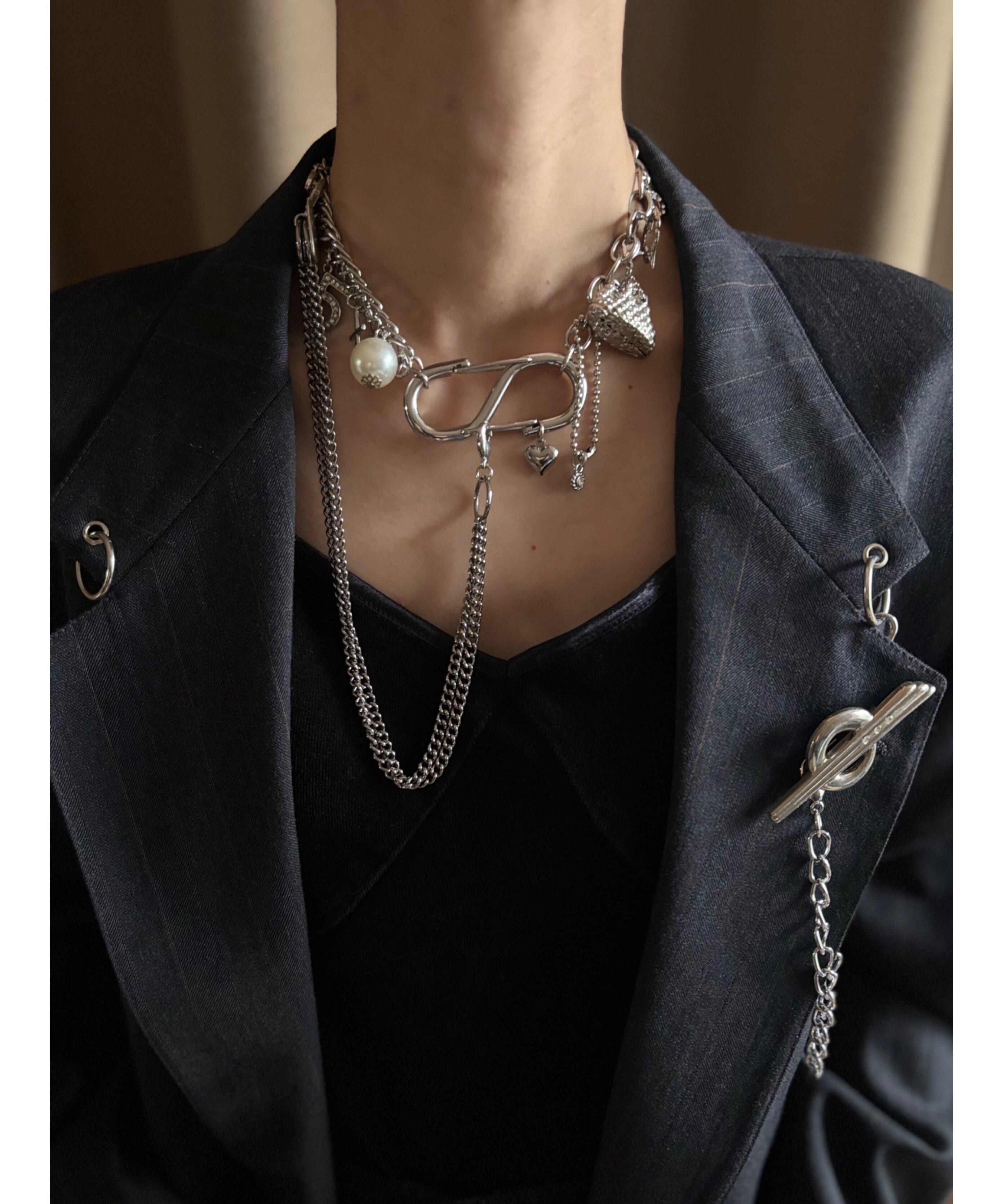 ボリュームあるカラビナとチェーンのコンビネーションがモードさ引き立つCOLLENTE vintageオリジナルネックレス。