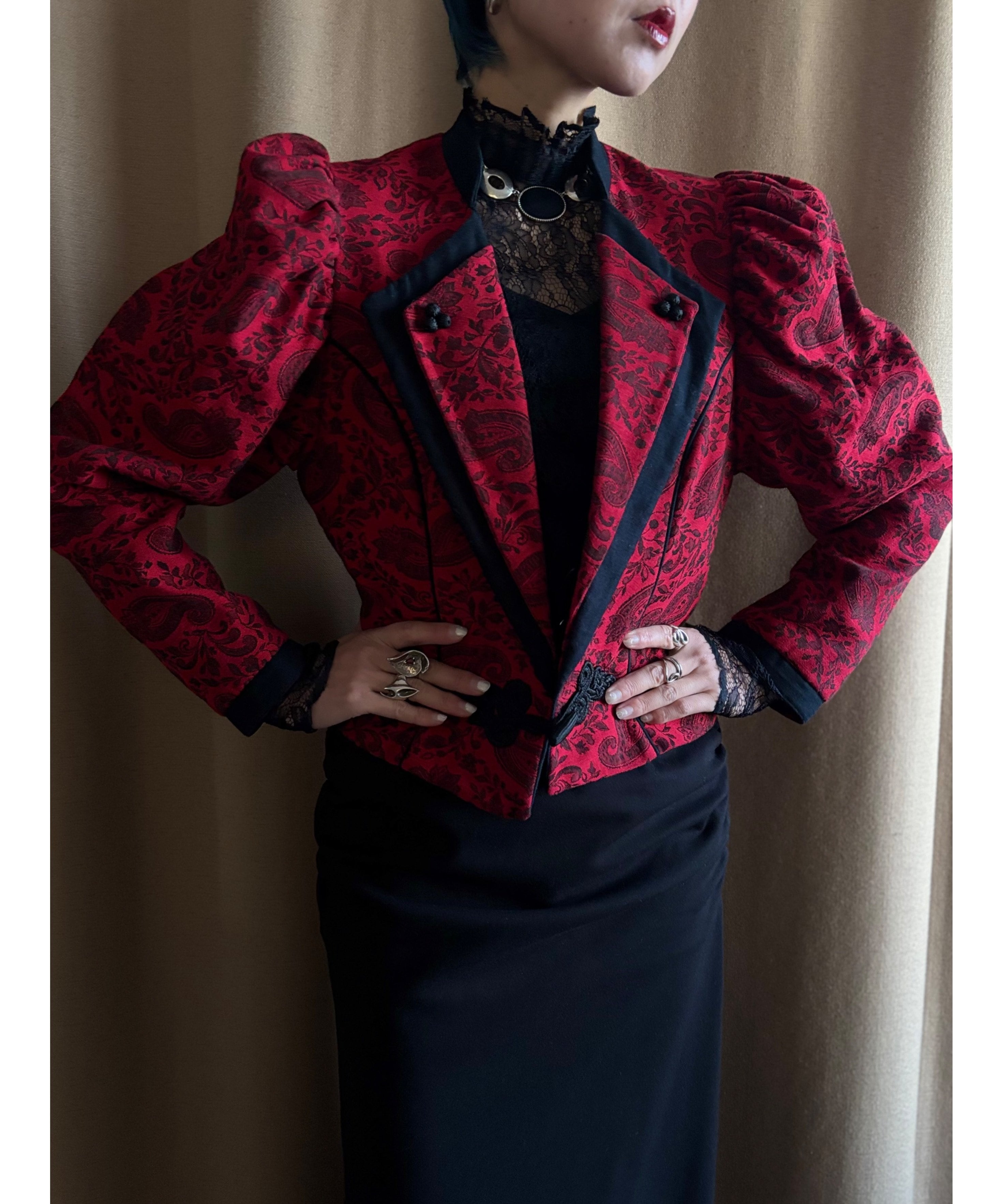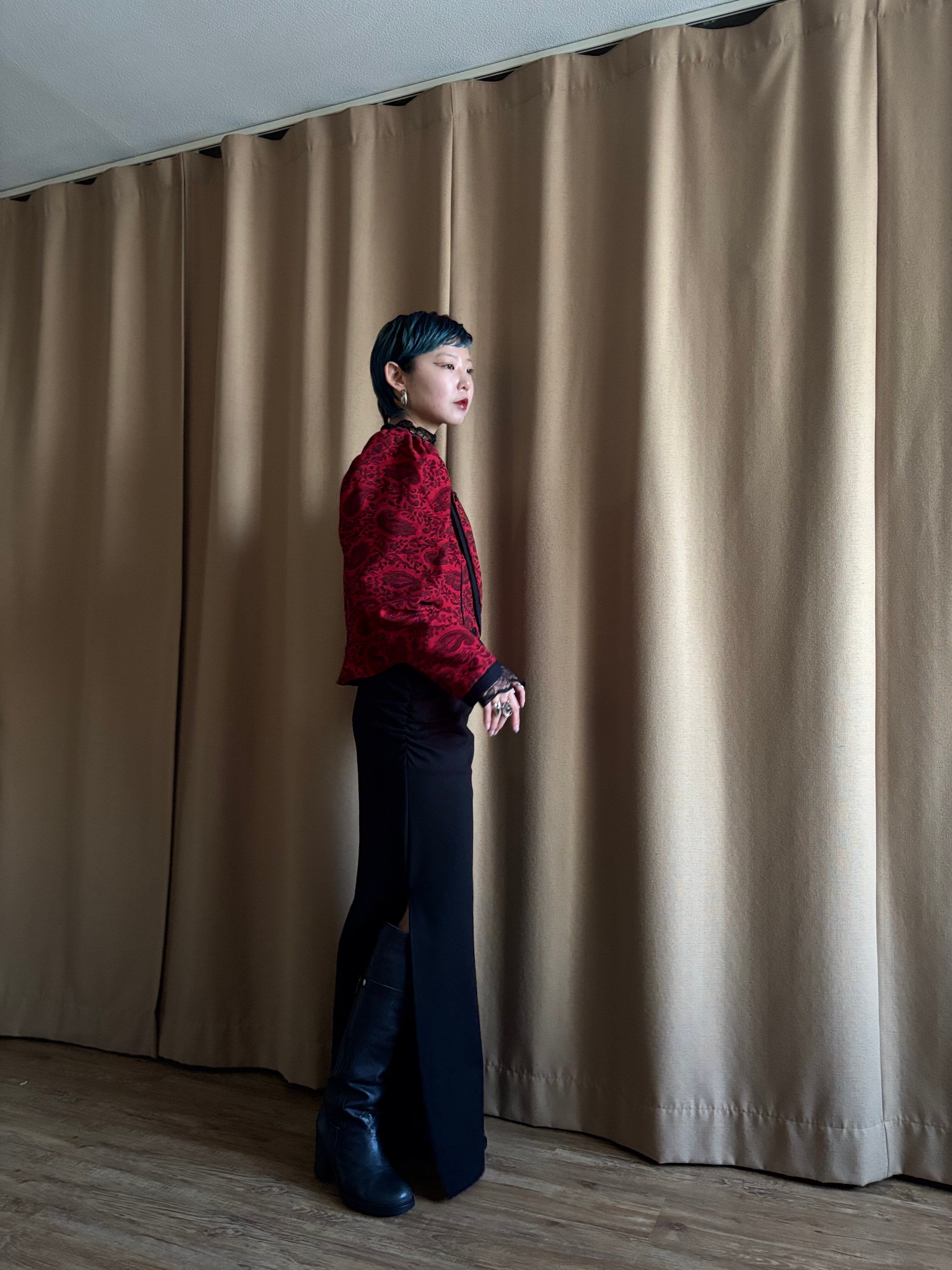 クラシカルなシルエットとエキゾチックなチャイナボタンアクセントが他にはない主役級の一着。