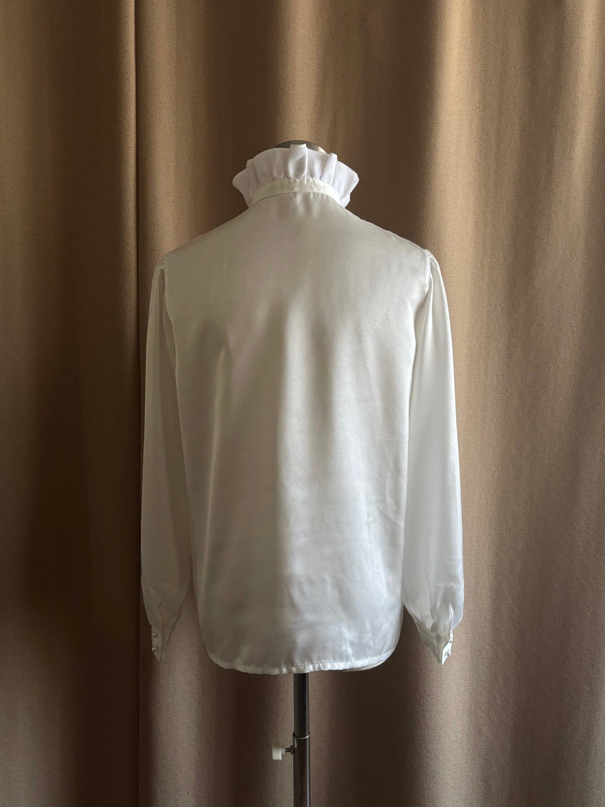 上品な光沢がリュクスに映えるクラシカルブラウス。