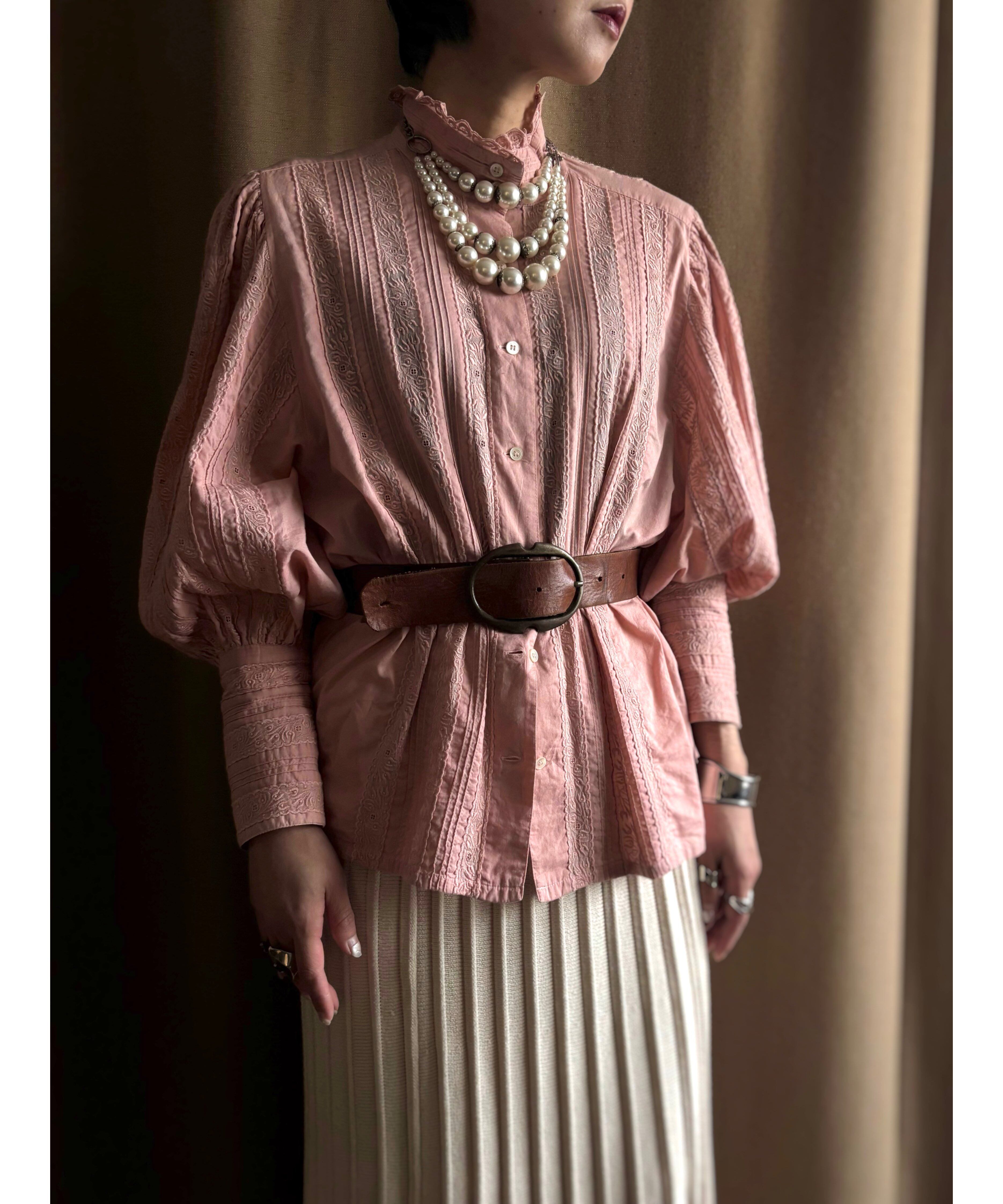 繊細なレース刺繍を施した柔らかなペールピンクでレディーさ引き立つ一着に。
