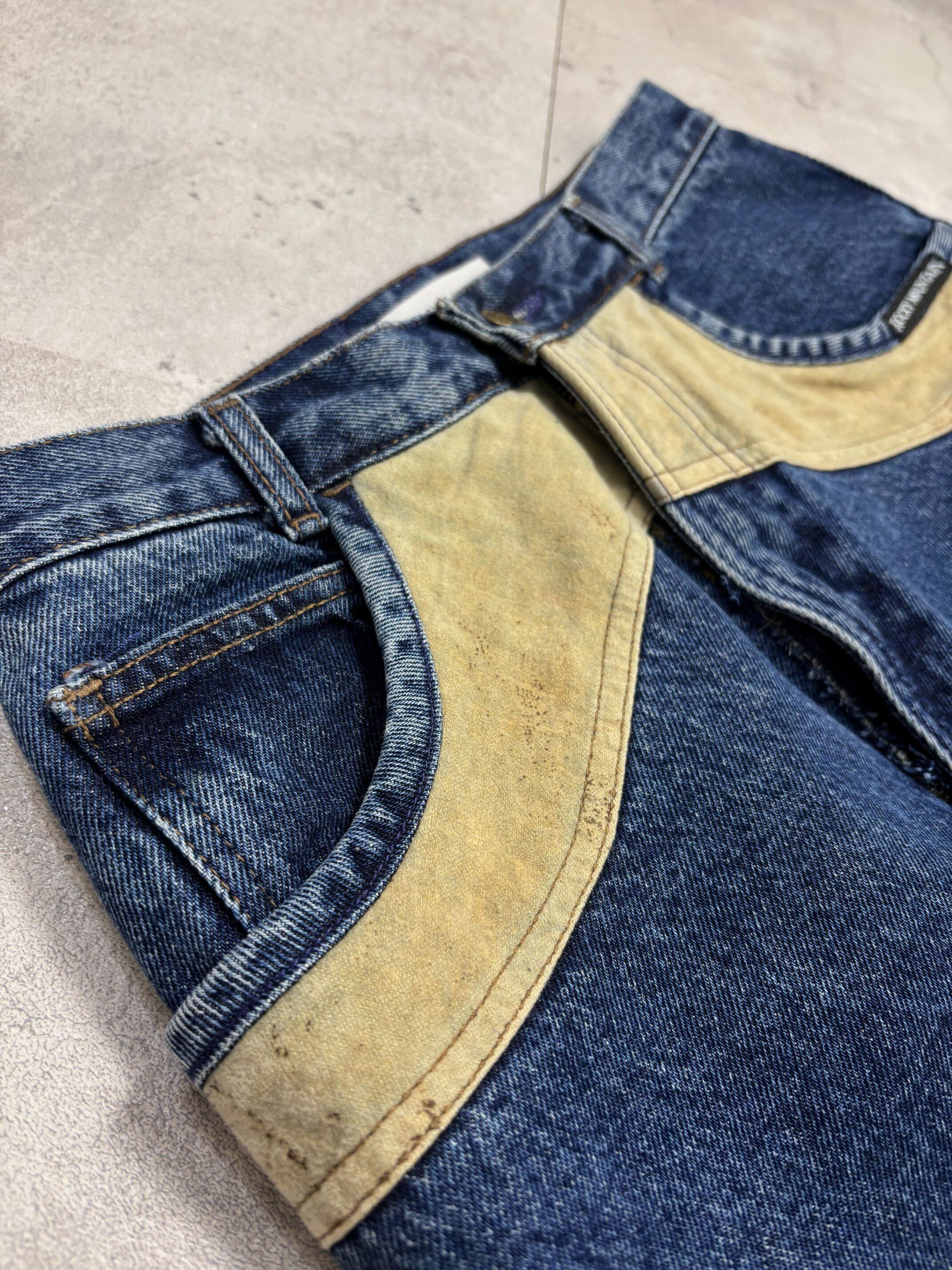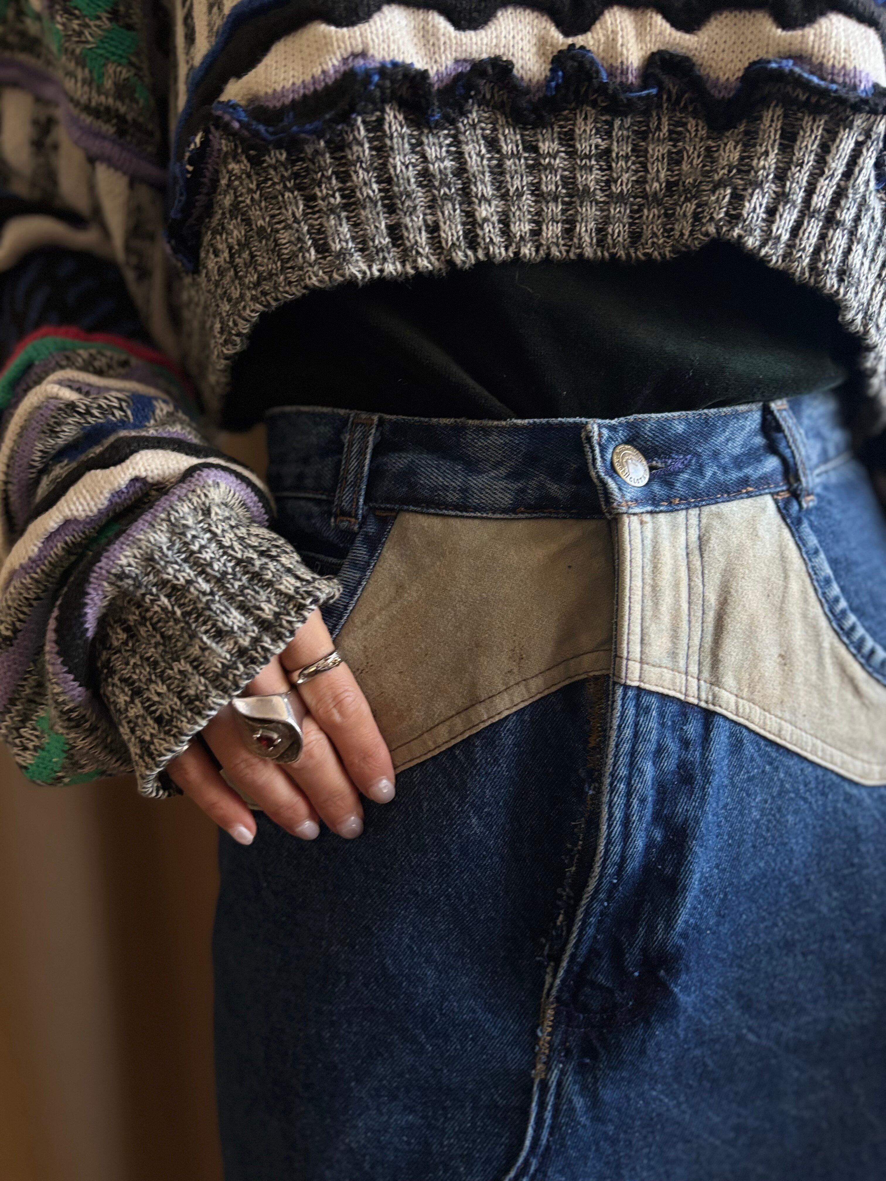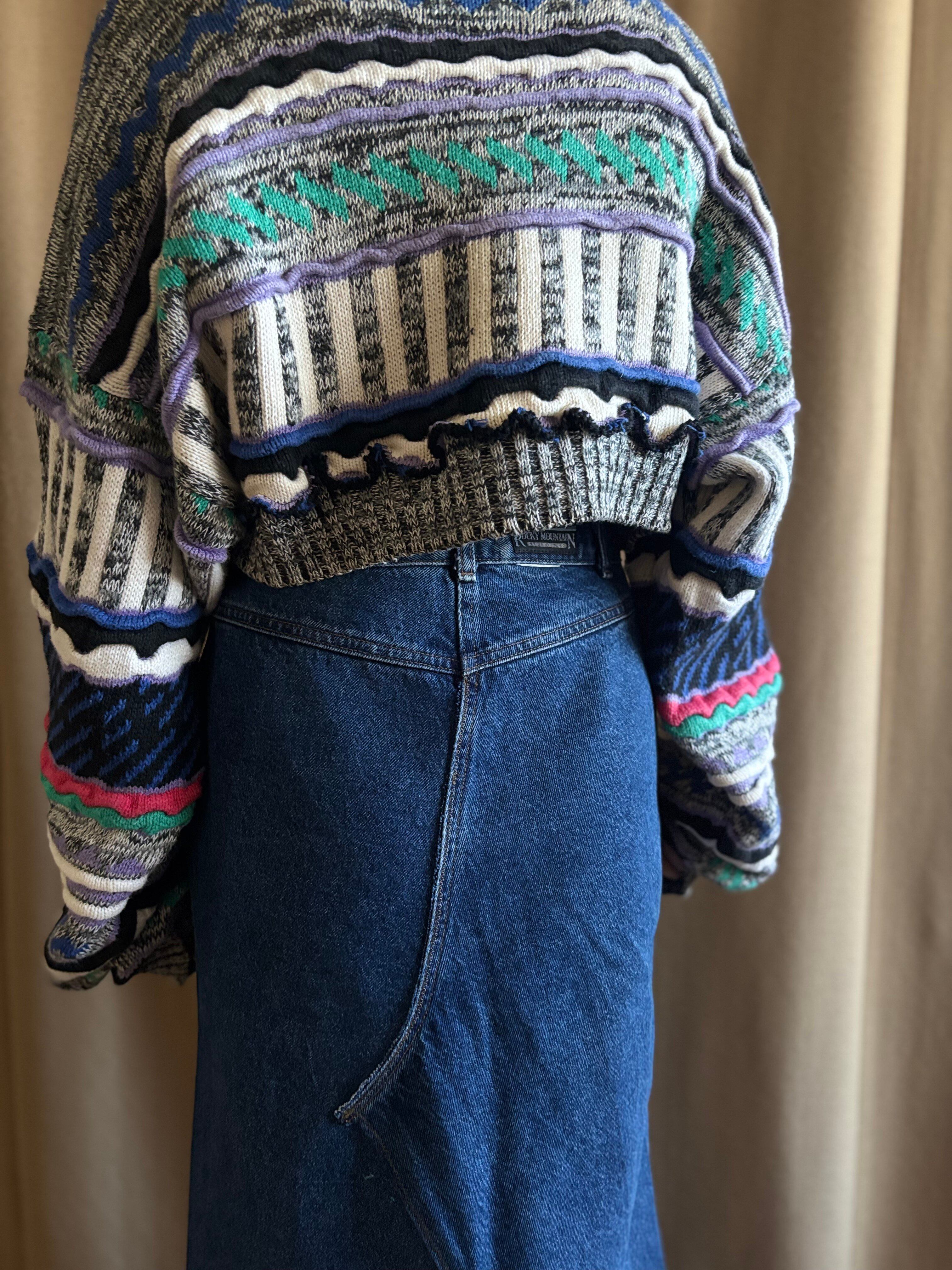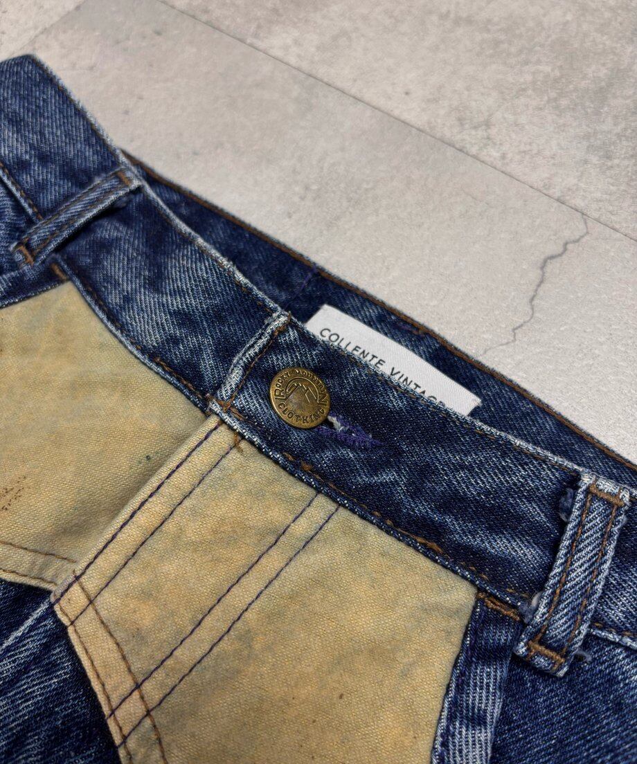 フロントデザイン切り替えがポイントのリメイクデニムスカート。