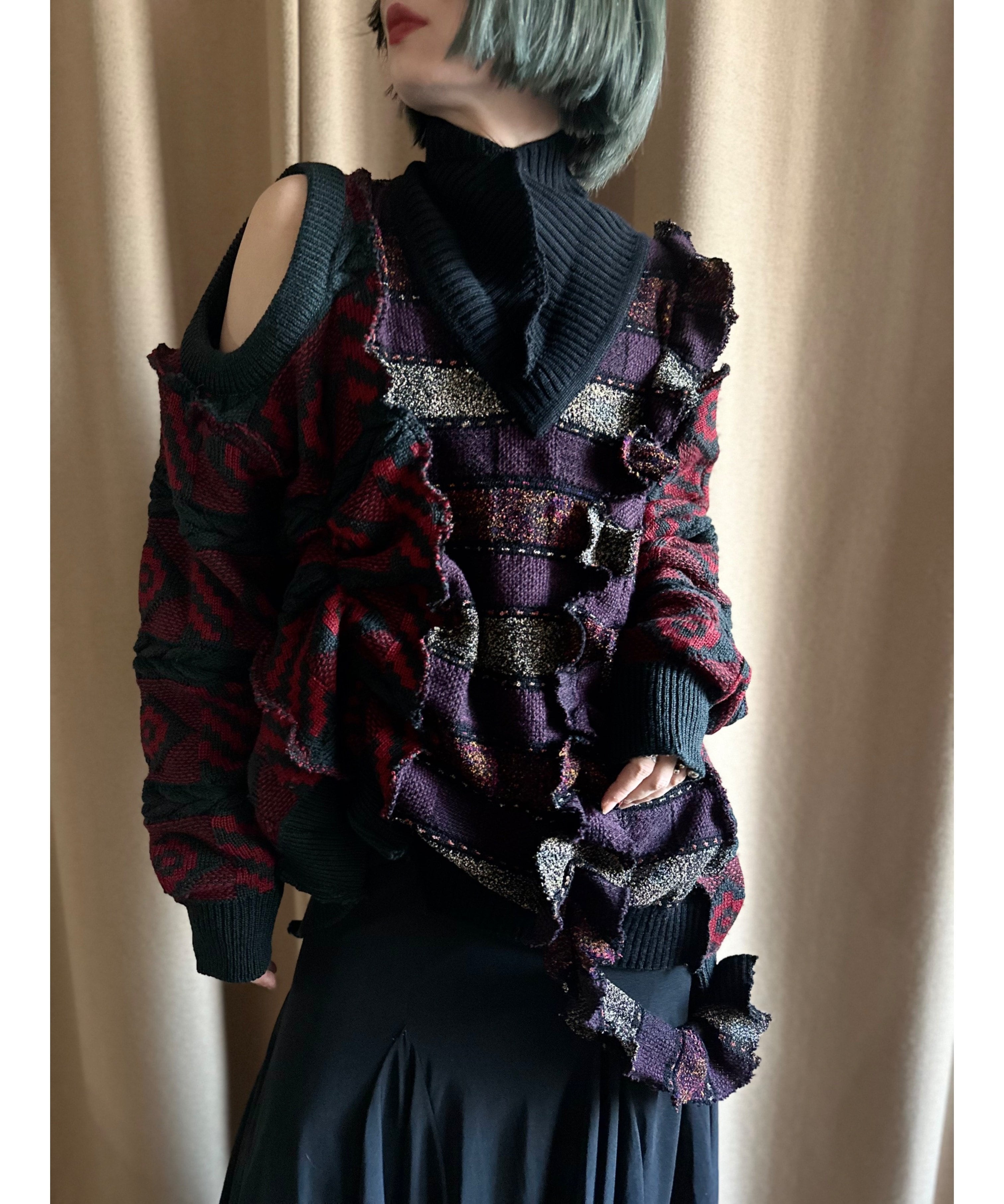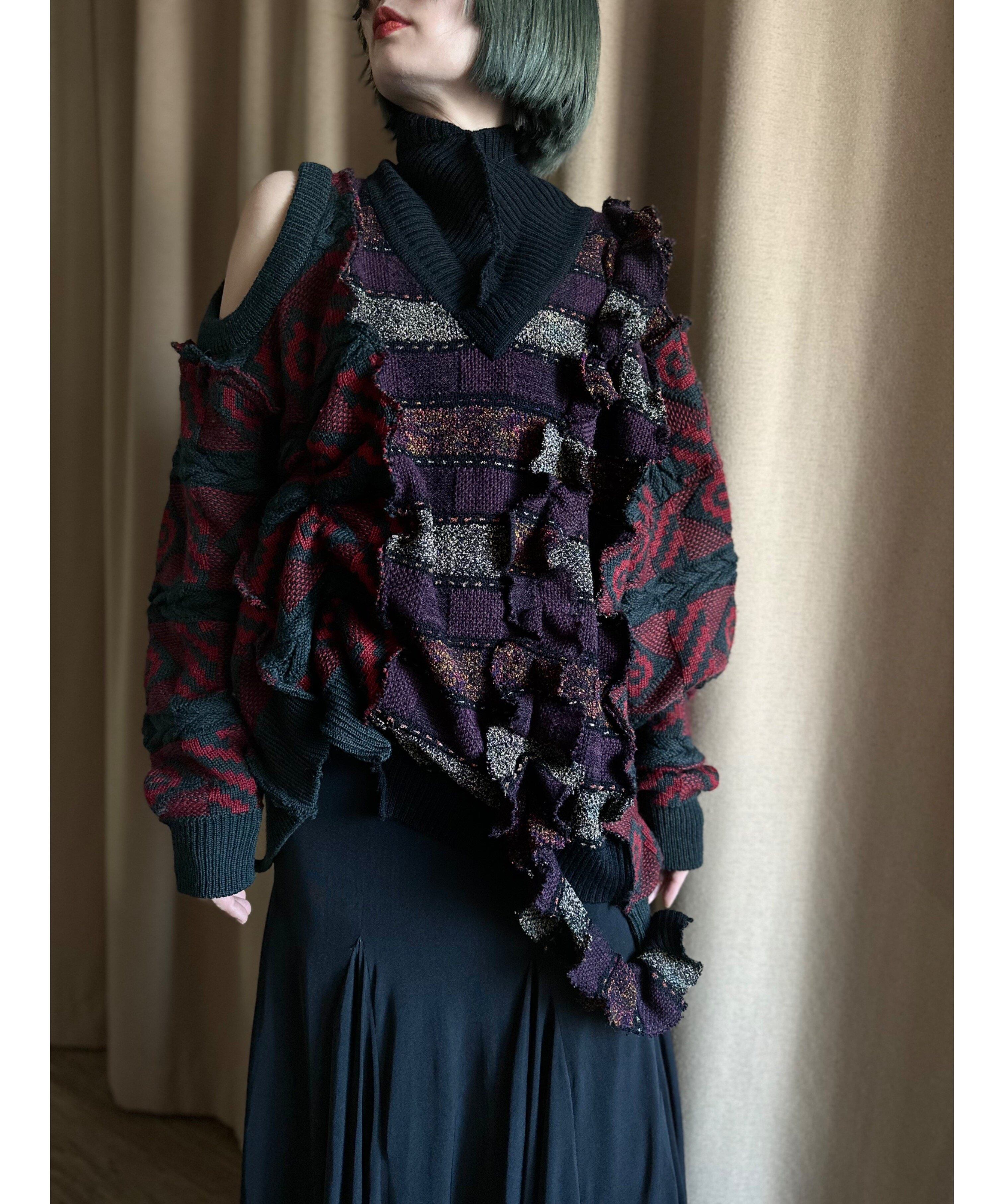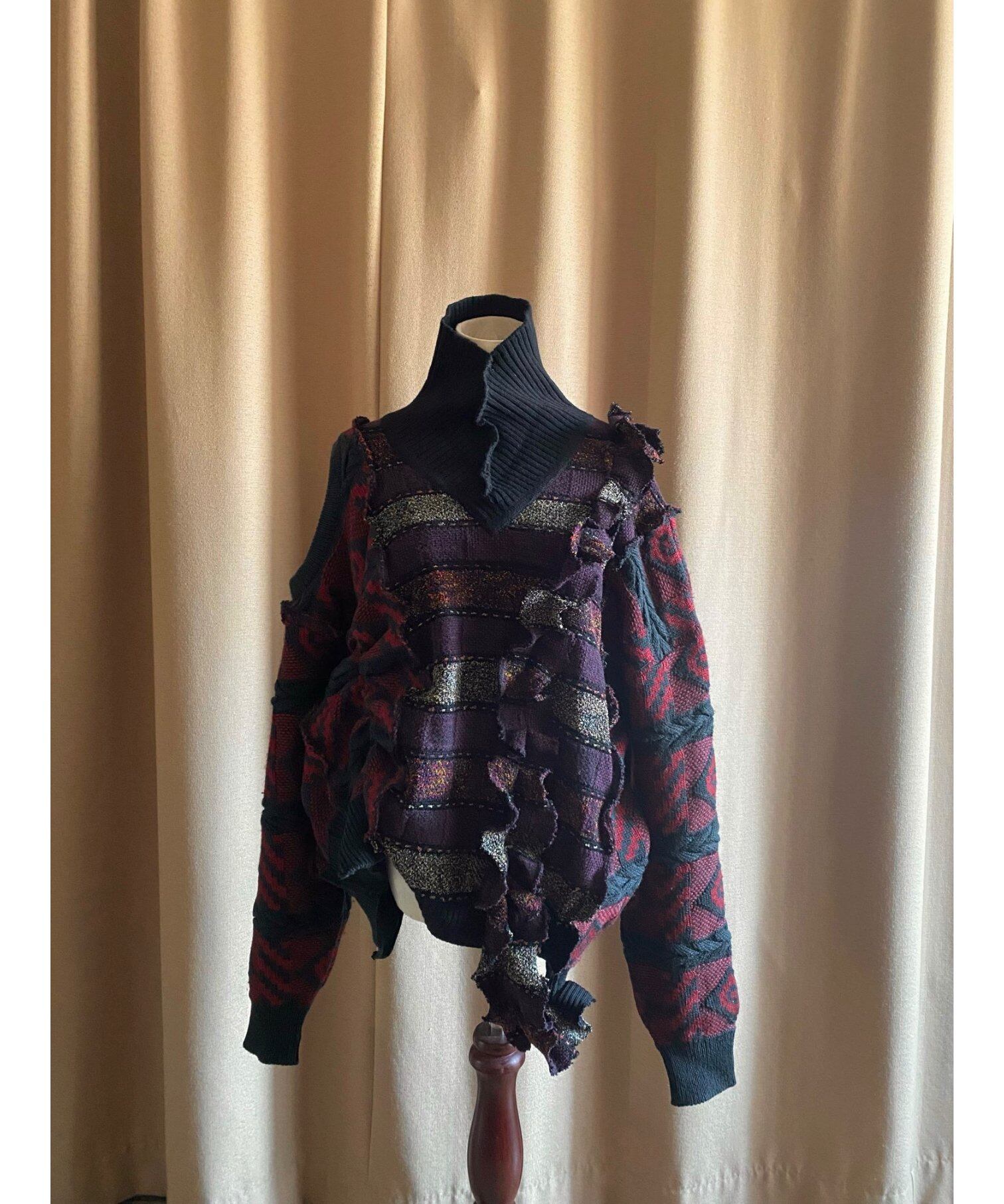 高級感あるイタリア製3Dニットを組み合わせボリュームたっぷりに仕上げたリメイクニット。