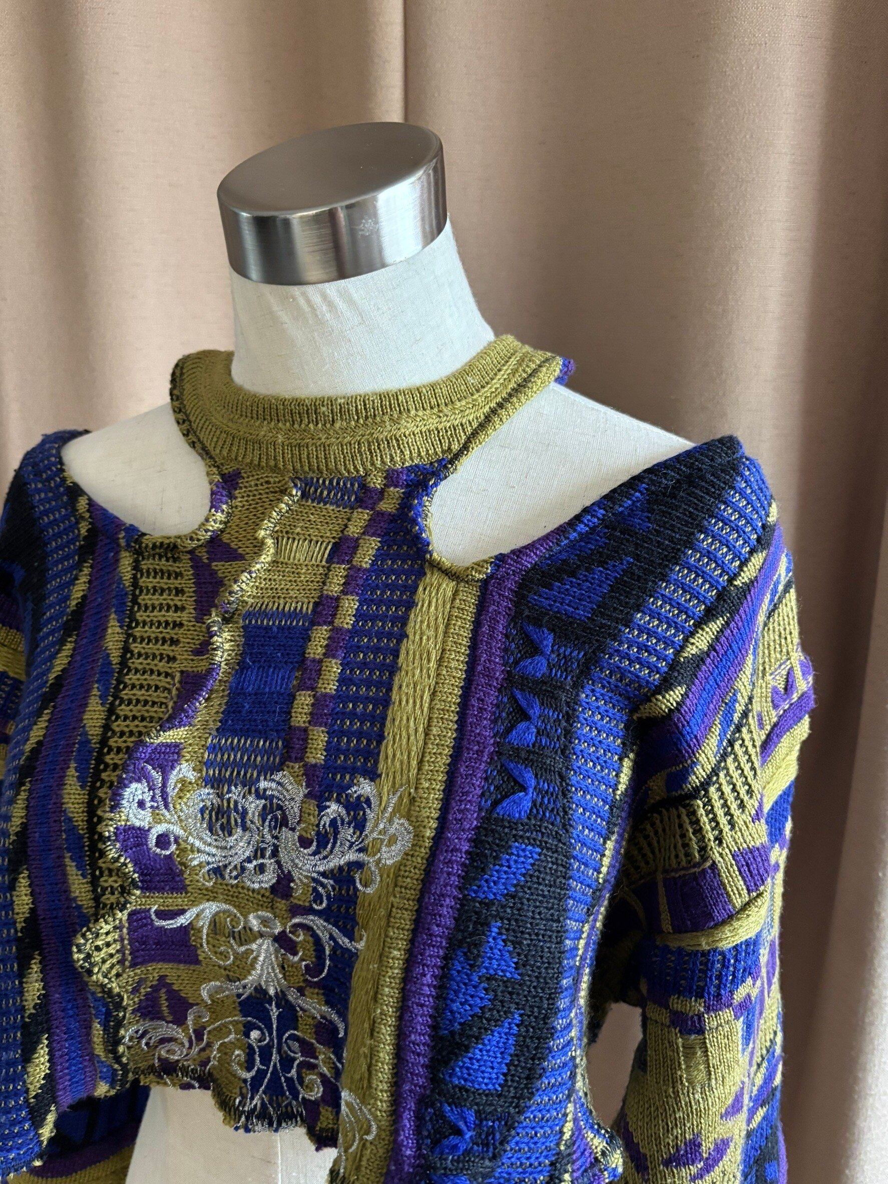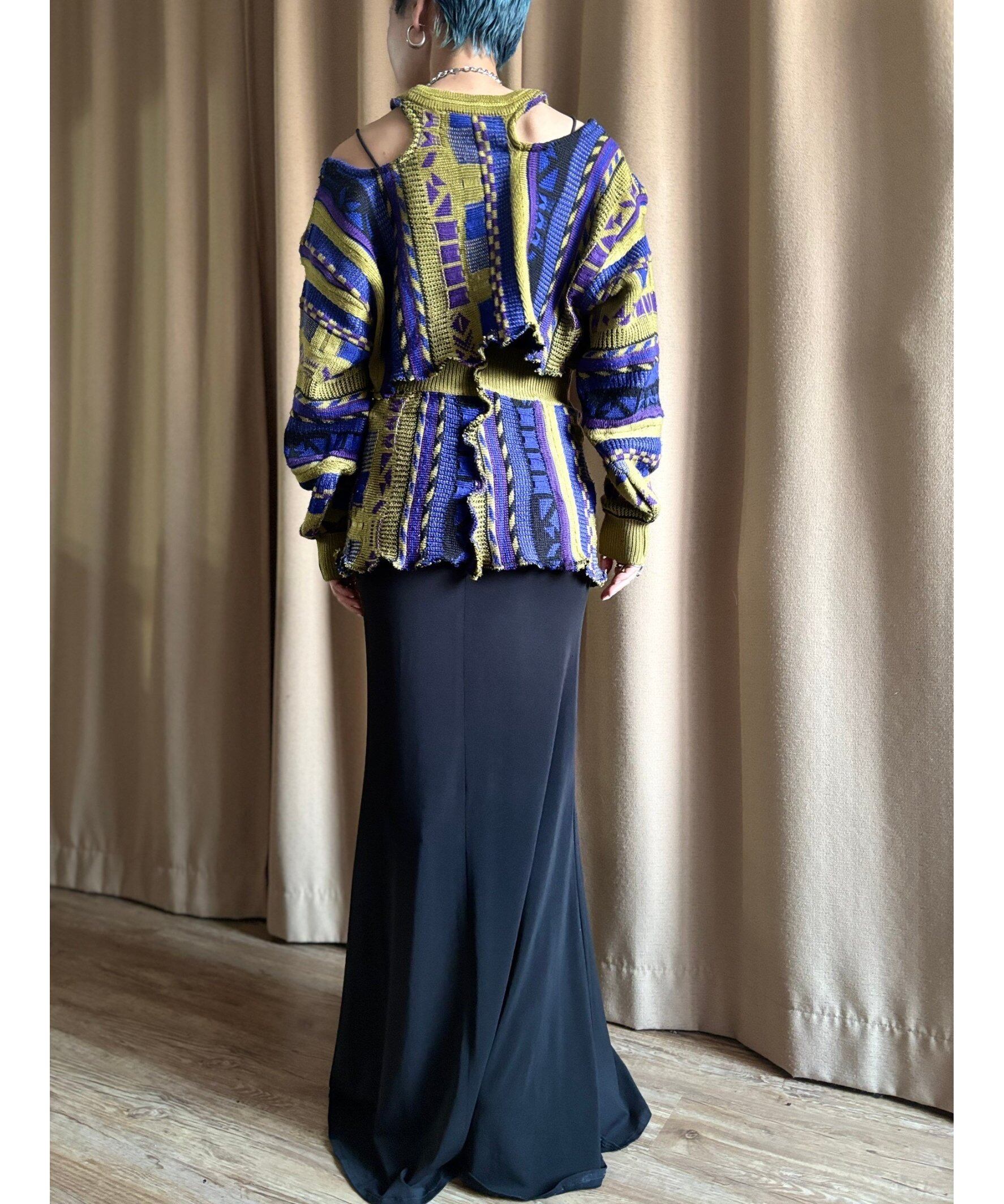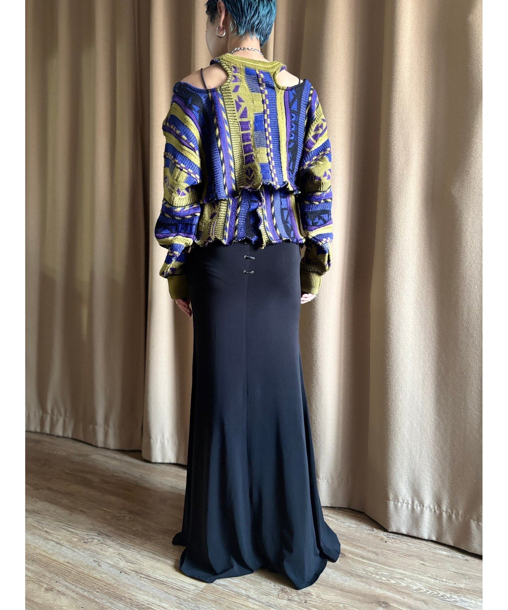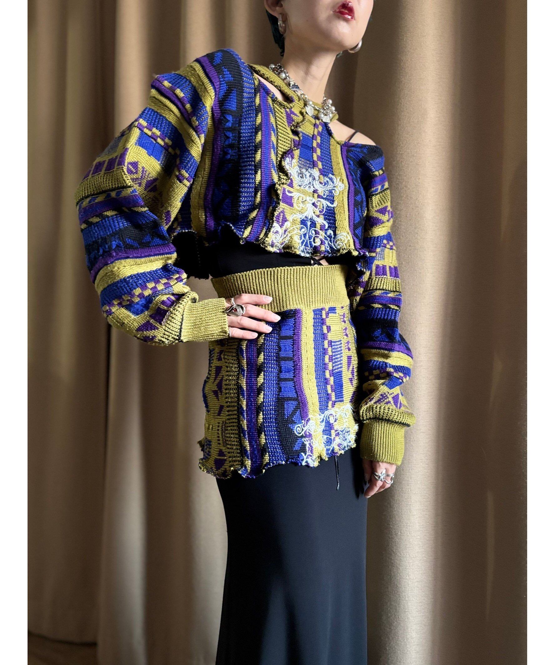 クロップド丈ニットとマルチにお使いいただけるニットスカートのリメイクセットアイテム。