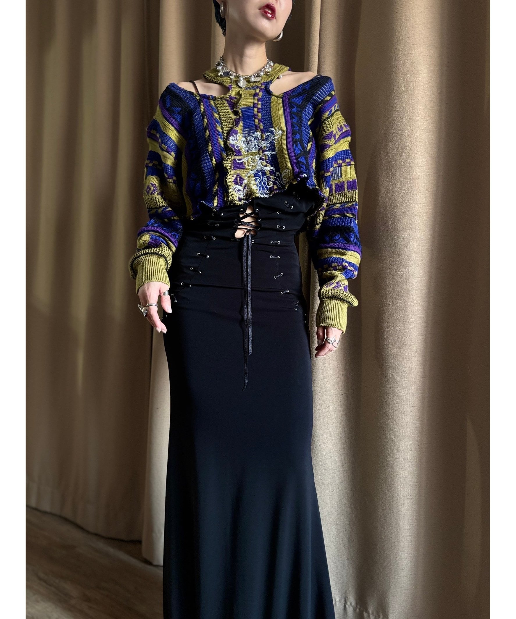 付属のニットスカートはスヌードスタイルや単体使いでワンショルダースタイルにも◎