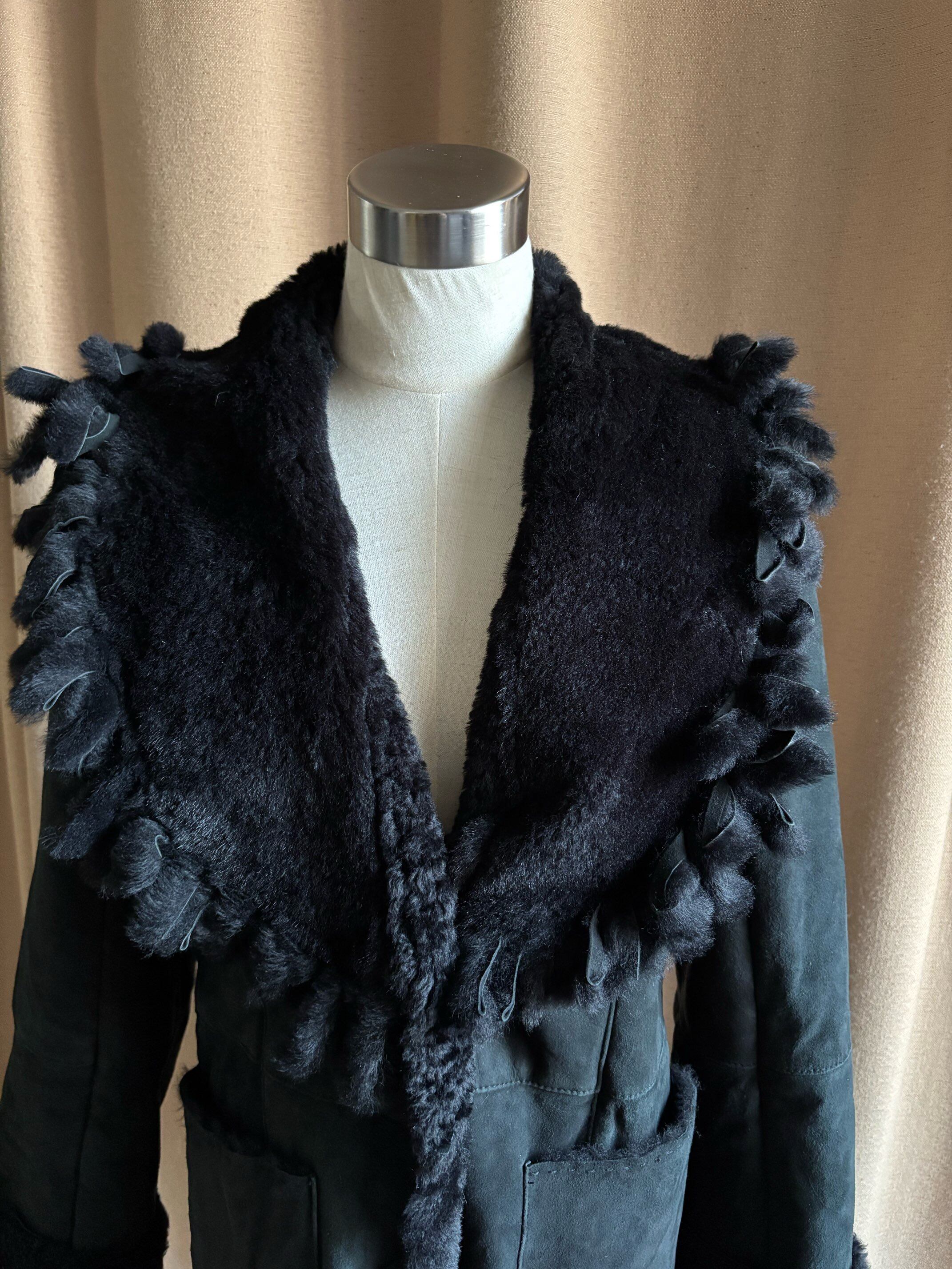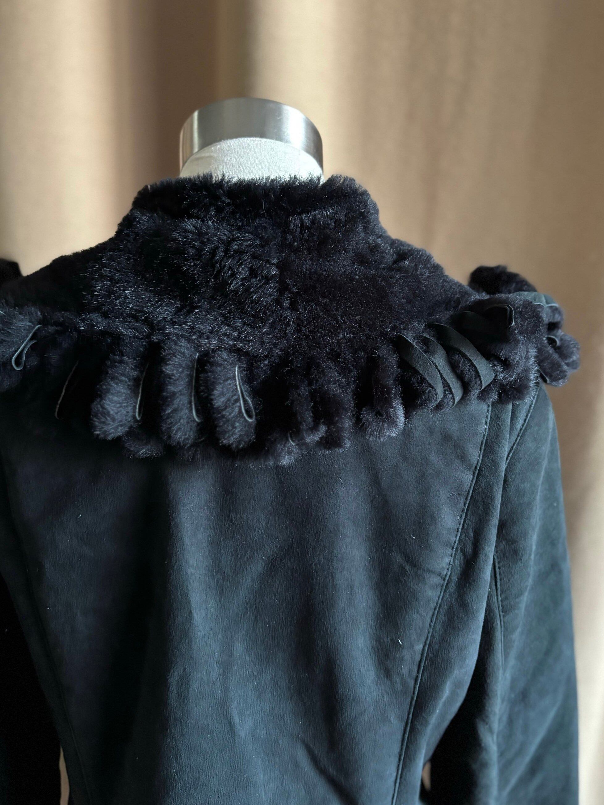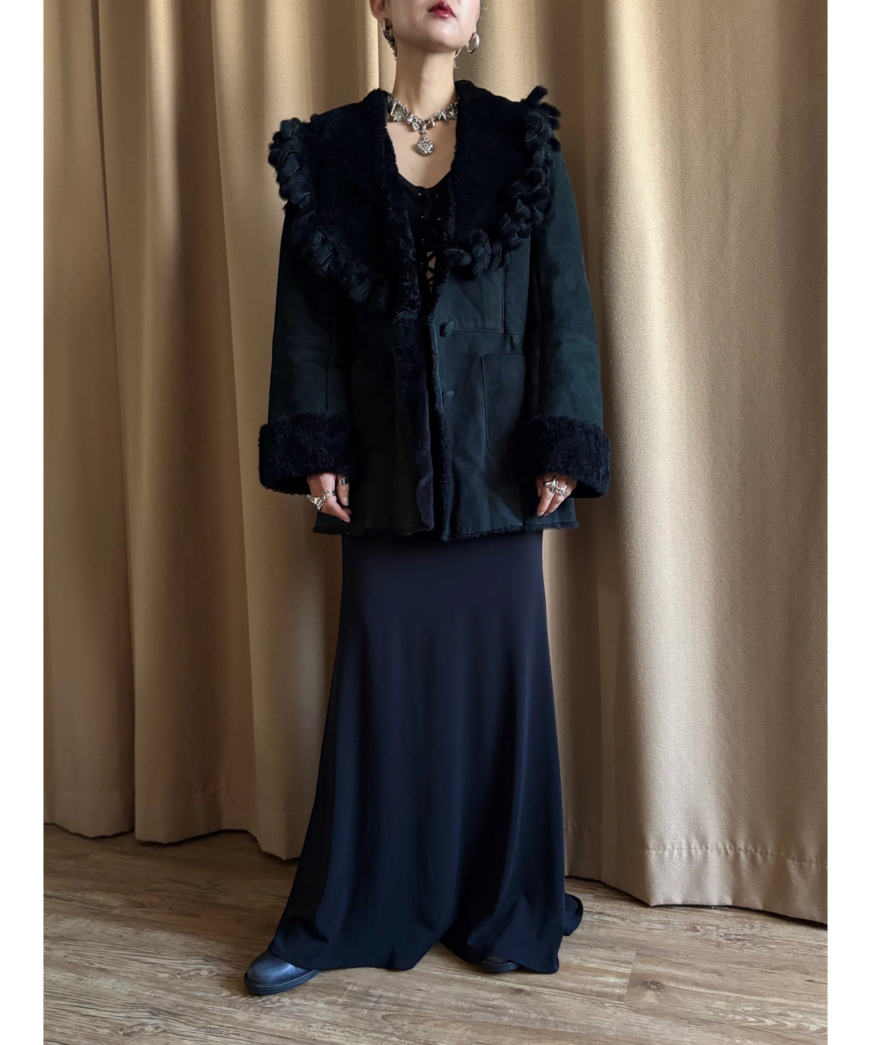 上質なラムスエードとラムファーを贅沢に使用したブラックジャケット。